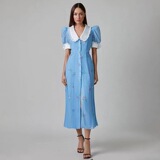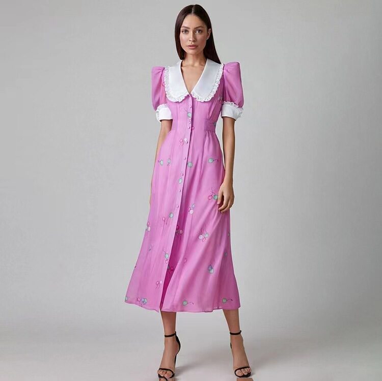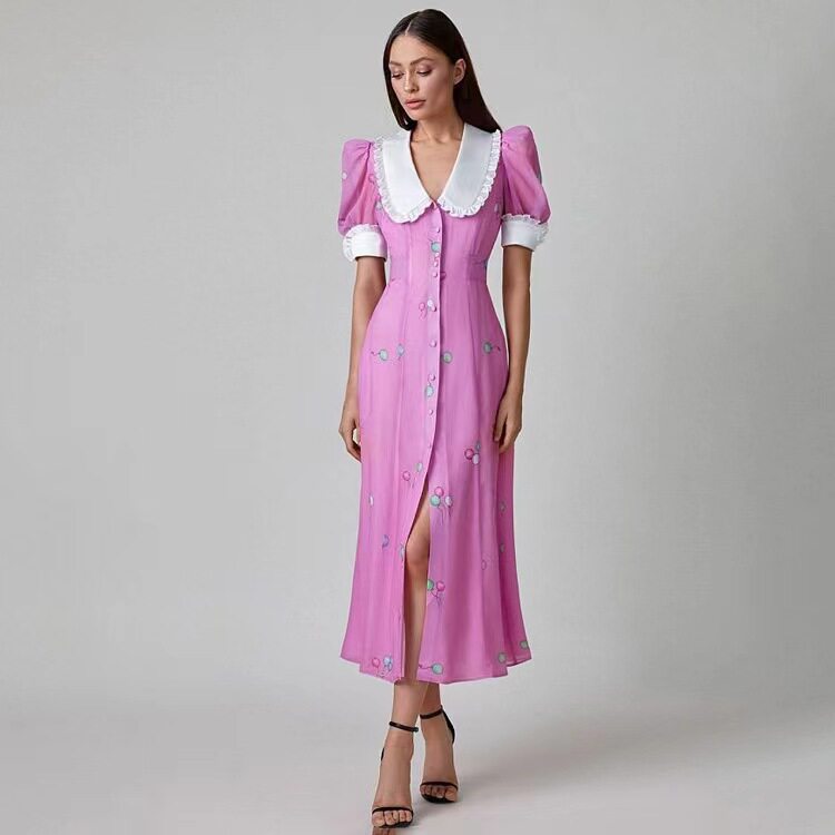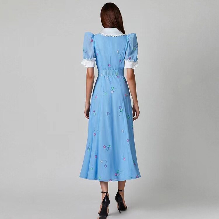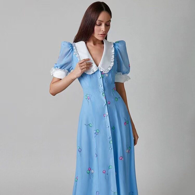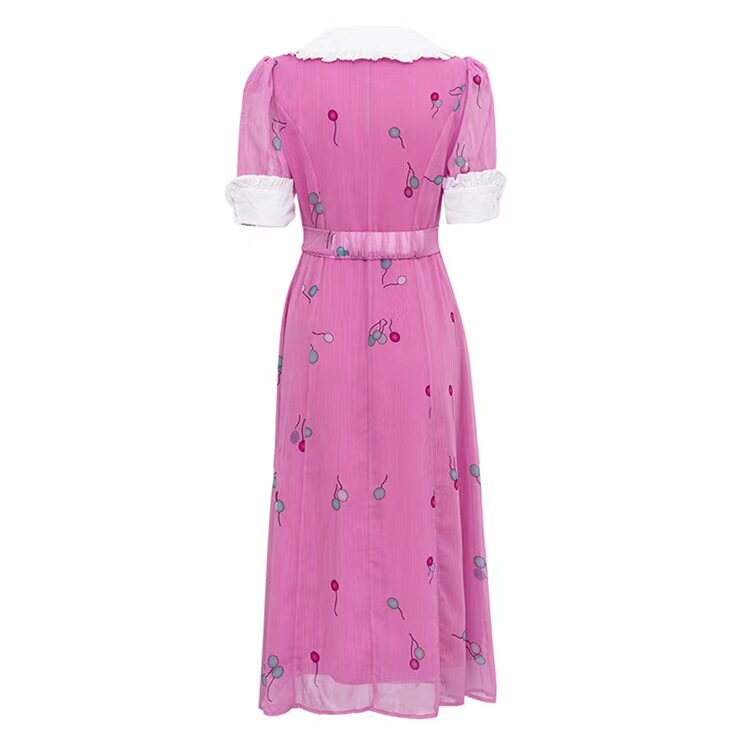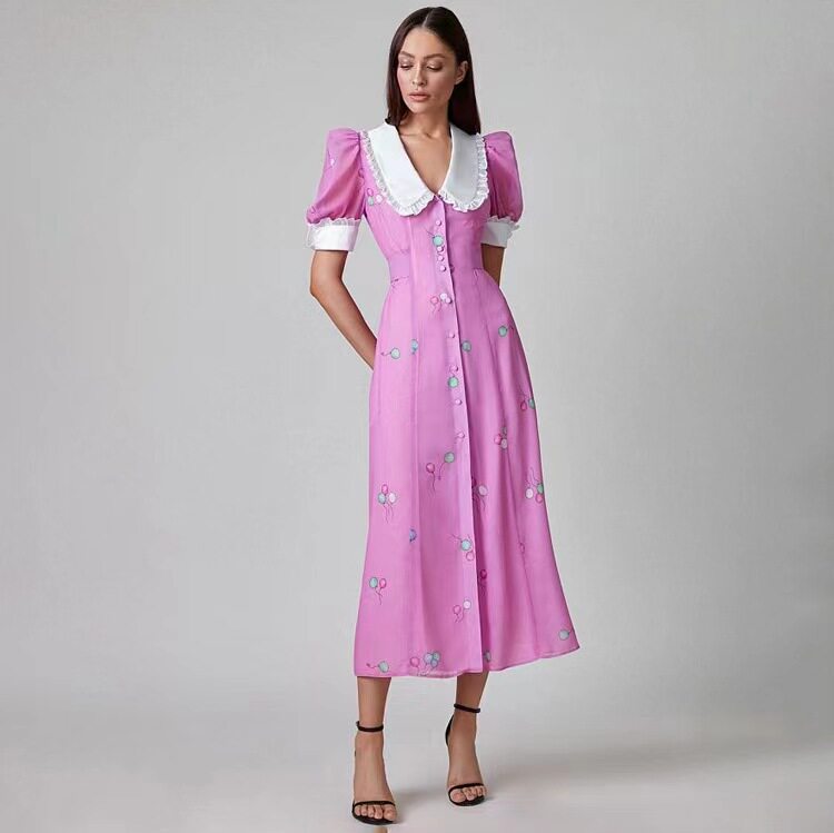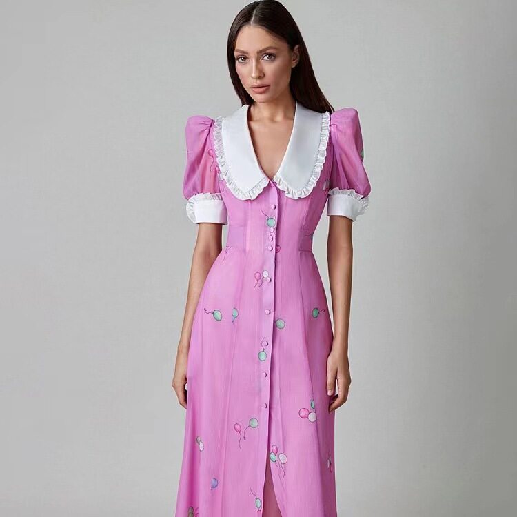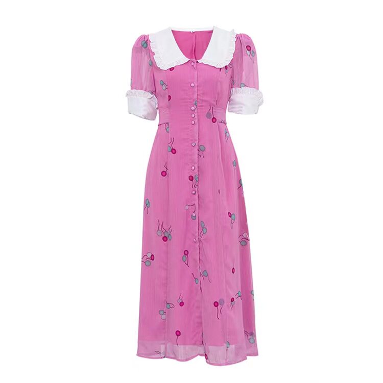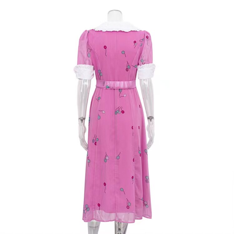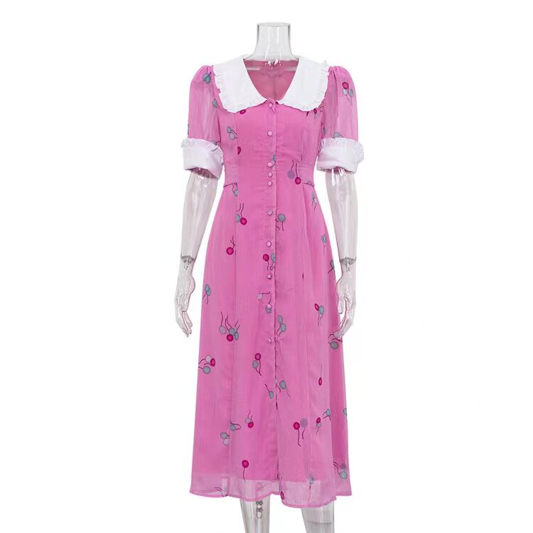 Новая французская печатная темпераментная кукла Короткое воротник с поясничным платьем.