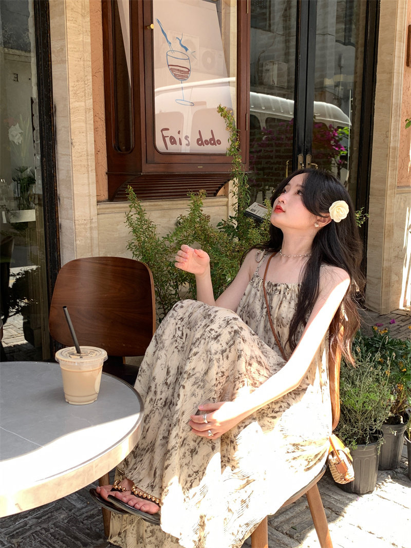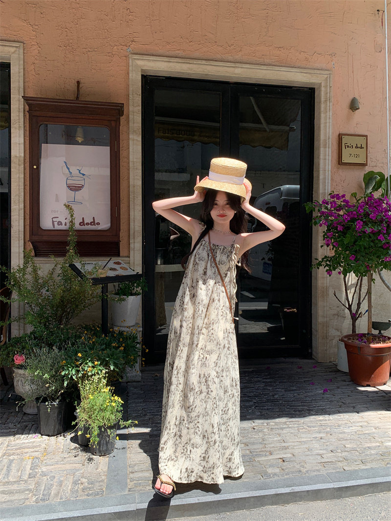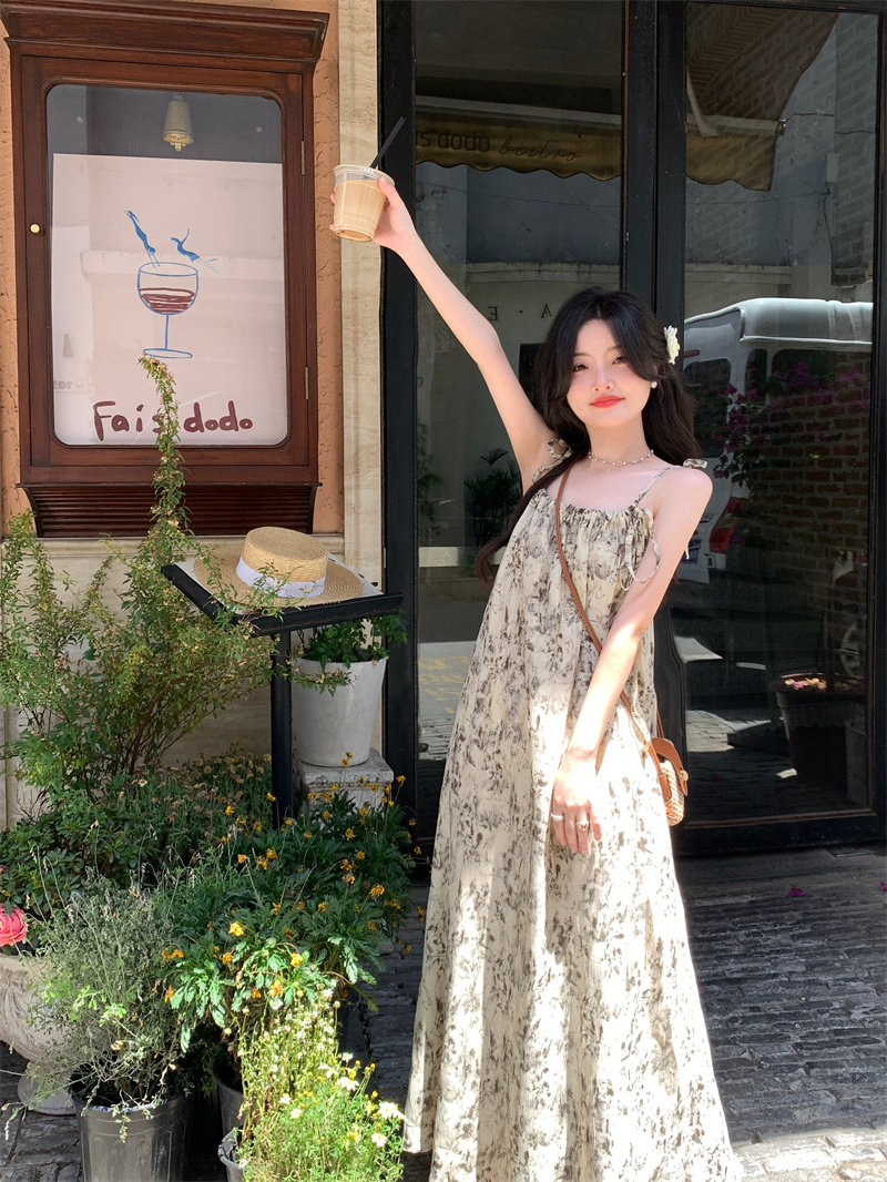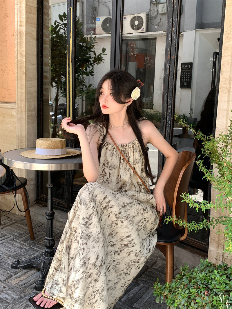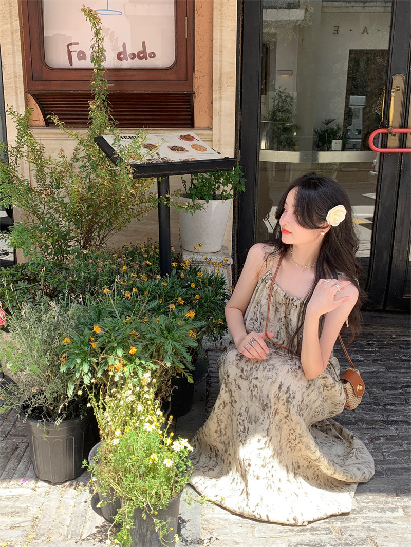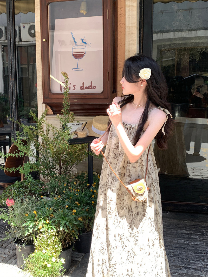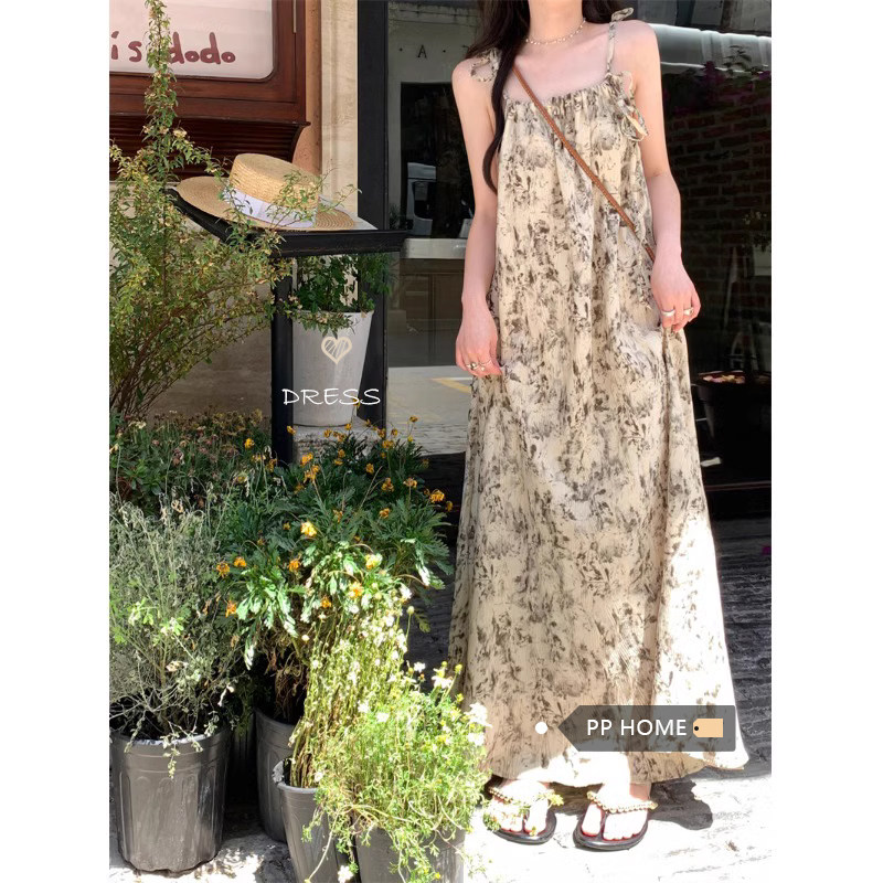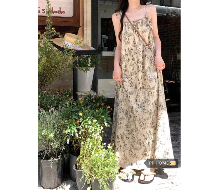 Pphome Ink Pastoral Hermore ~ Простые праздничные тенденции Новое французское усовершенствованное чувствительное платье цветов чернила