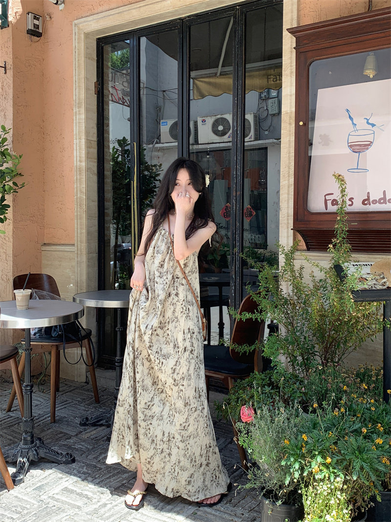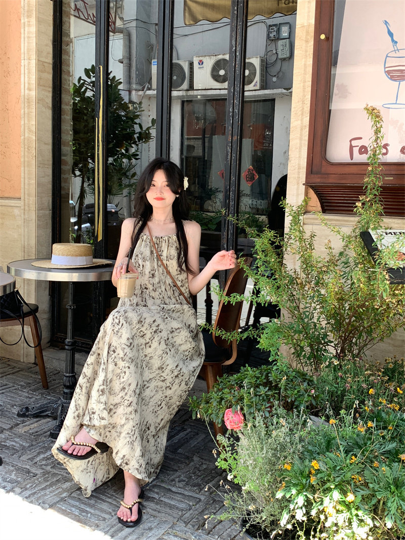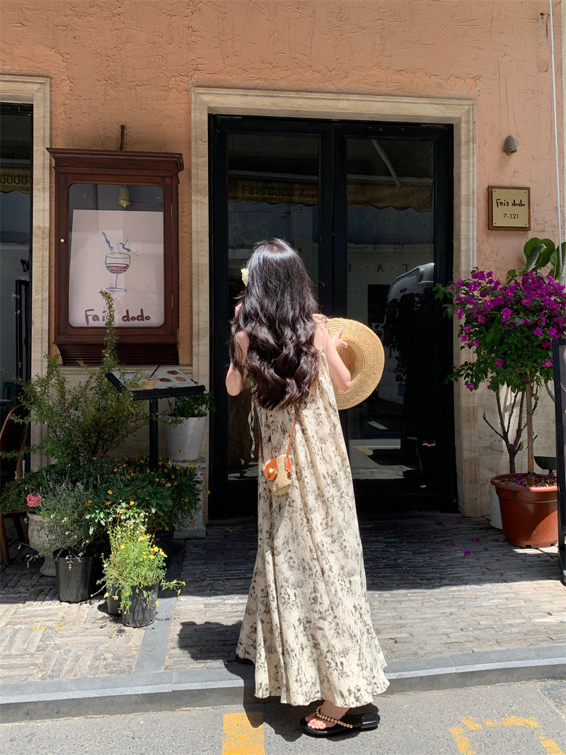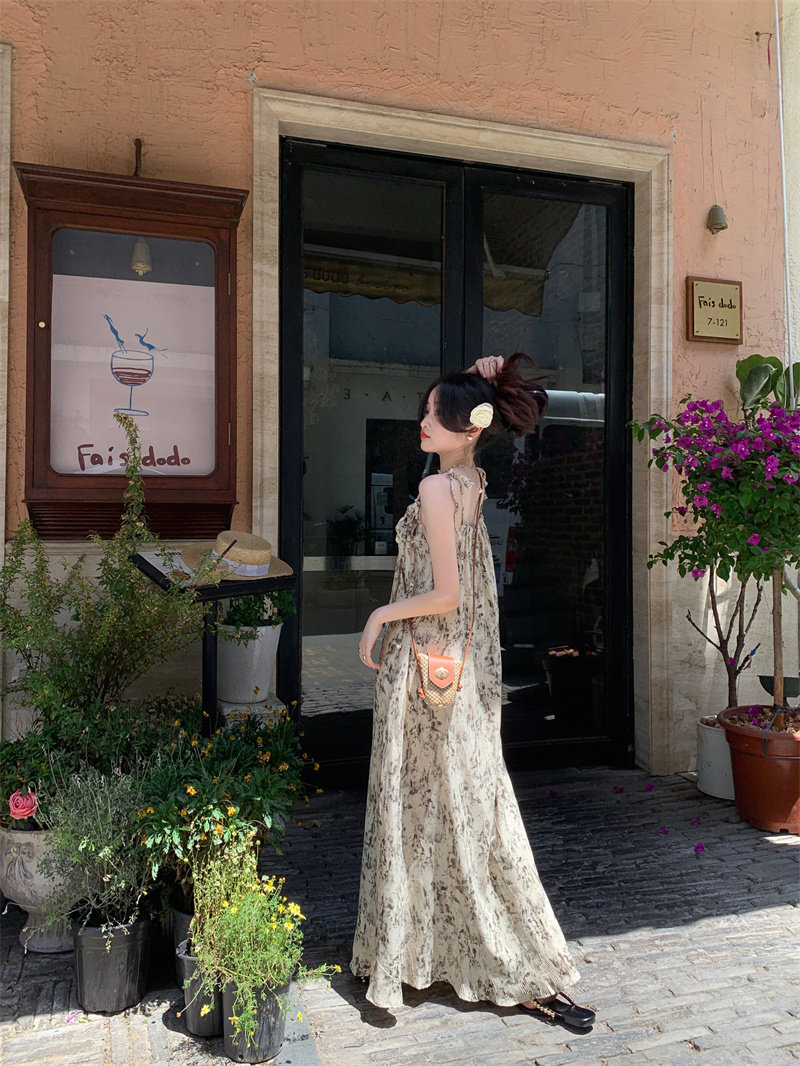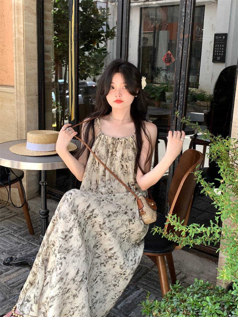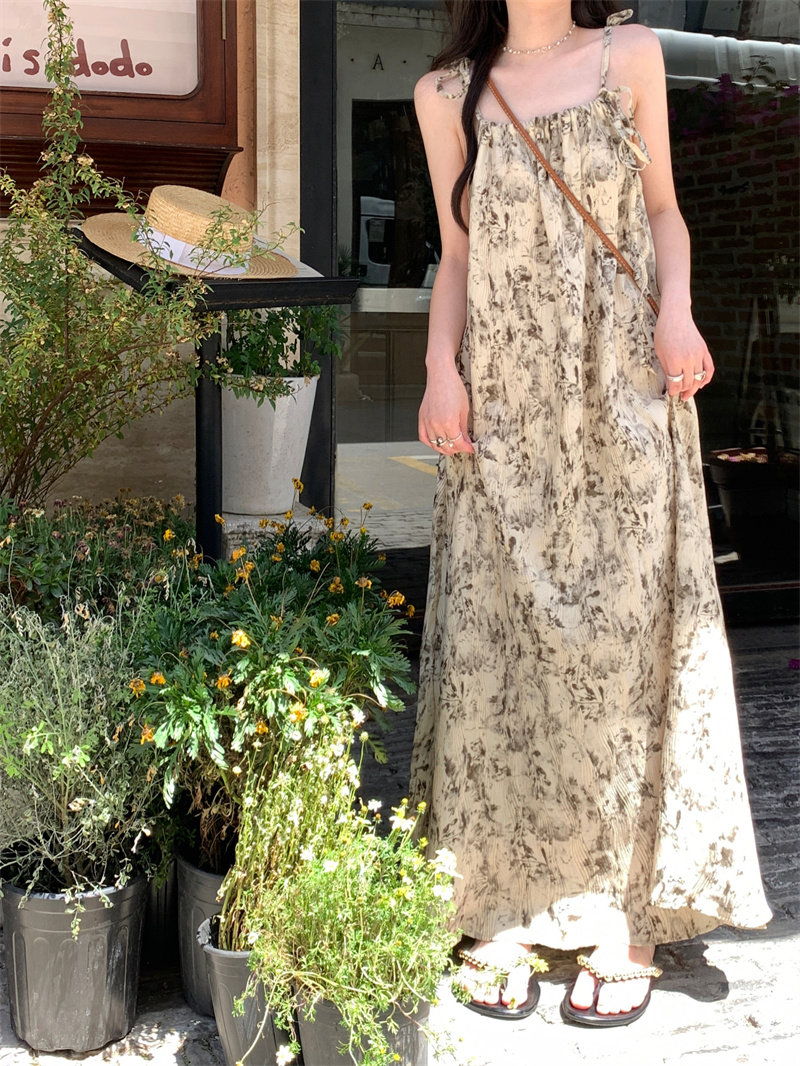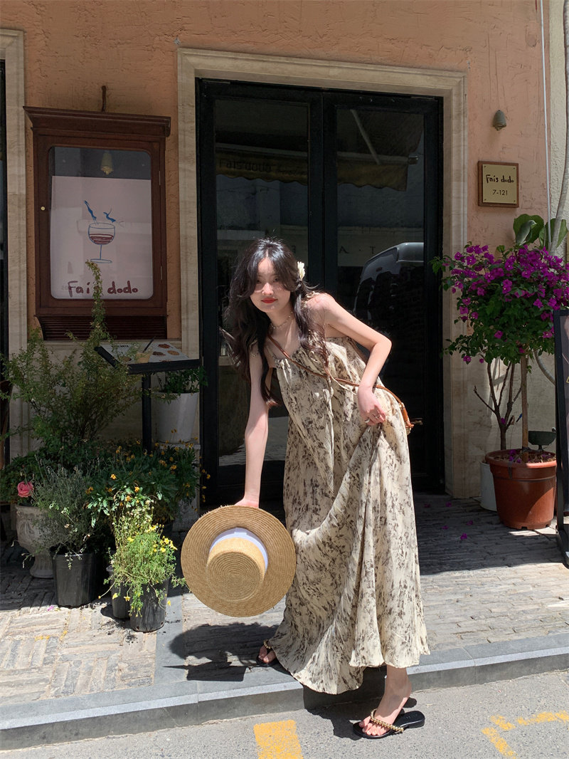Pphome Ink Pastoral Hermore ~ Простые праздничные тенденции Новое французское усовершенствованное чувствительное платье цветов чернила
