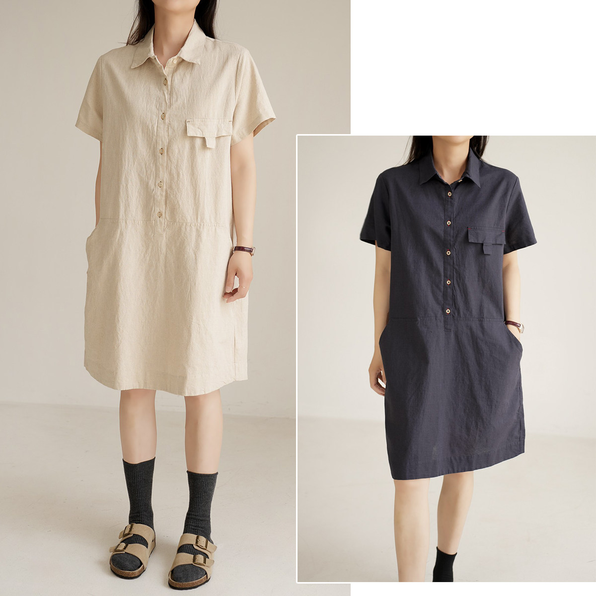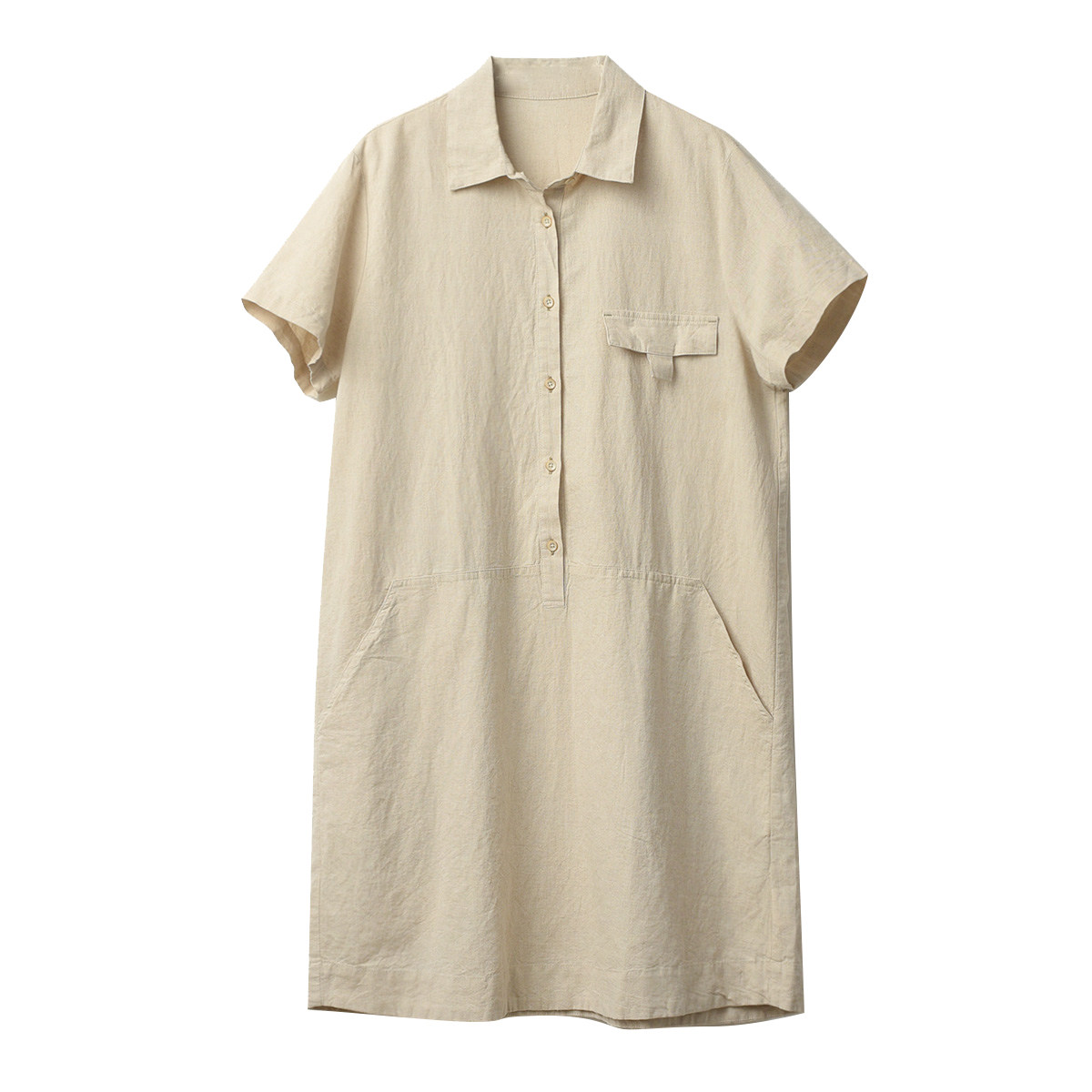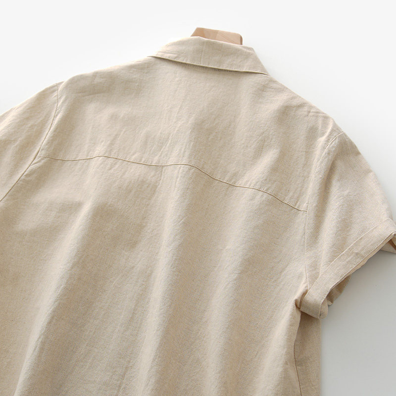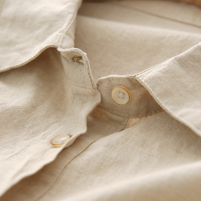 Длинное платье, летняя рубашка, юбка, из хлопка и льна, длина миди, воротник поло, городской стиль