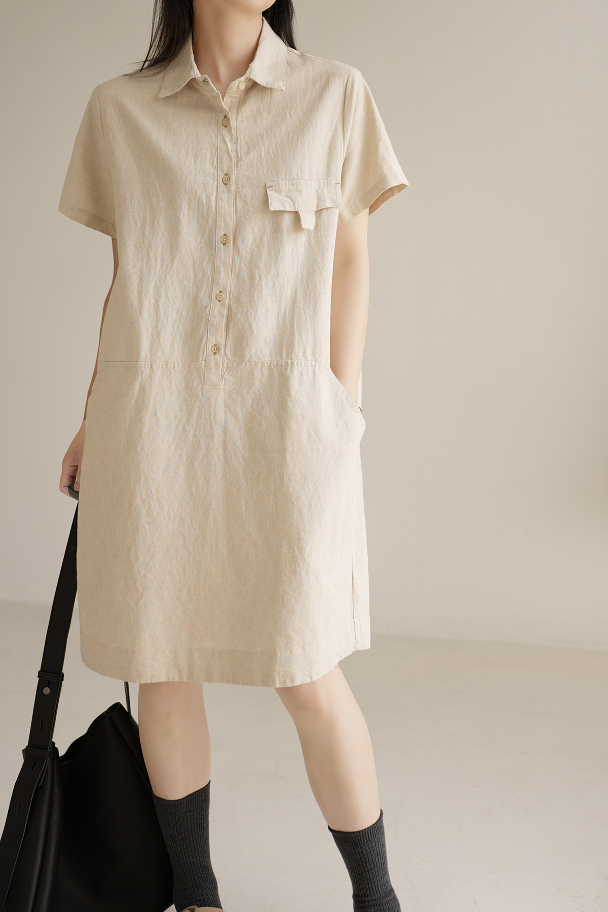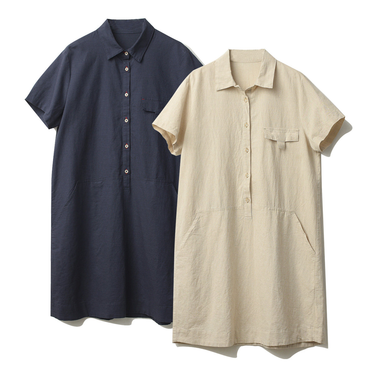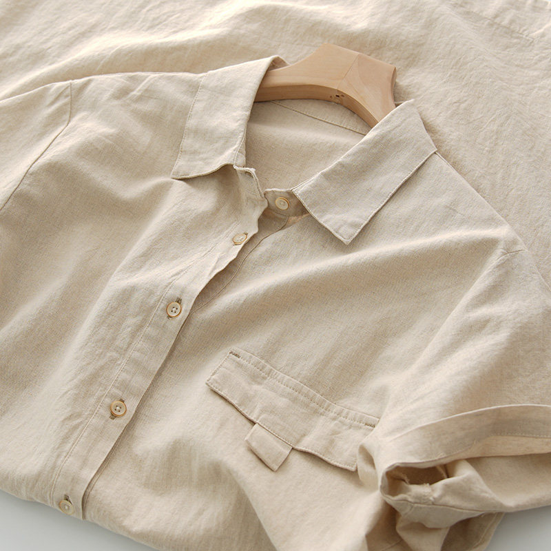 Длинное платье, летняя рубашка, юбка, из хлопка и льна, длина миди, воротник поло, городской стиль