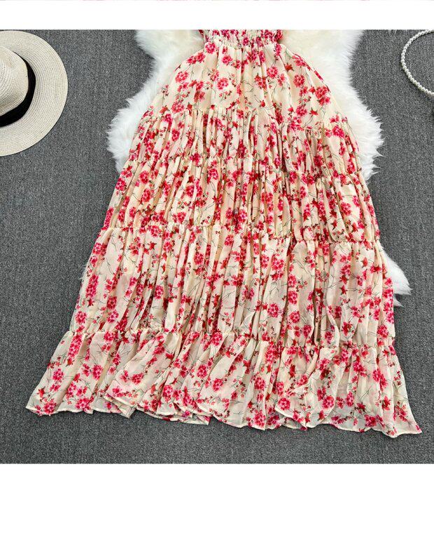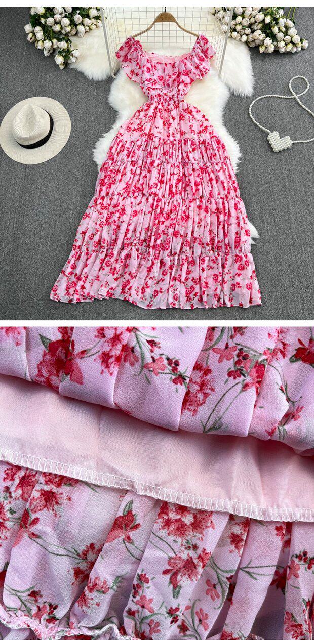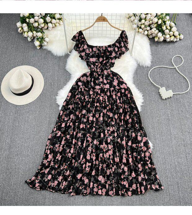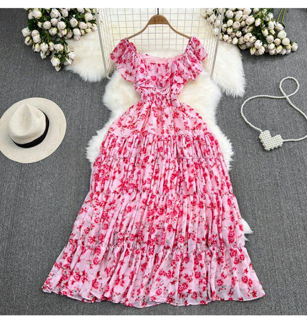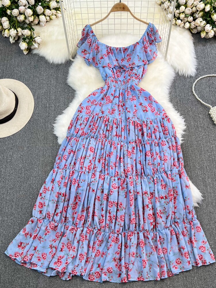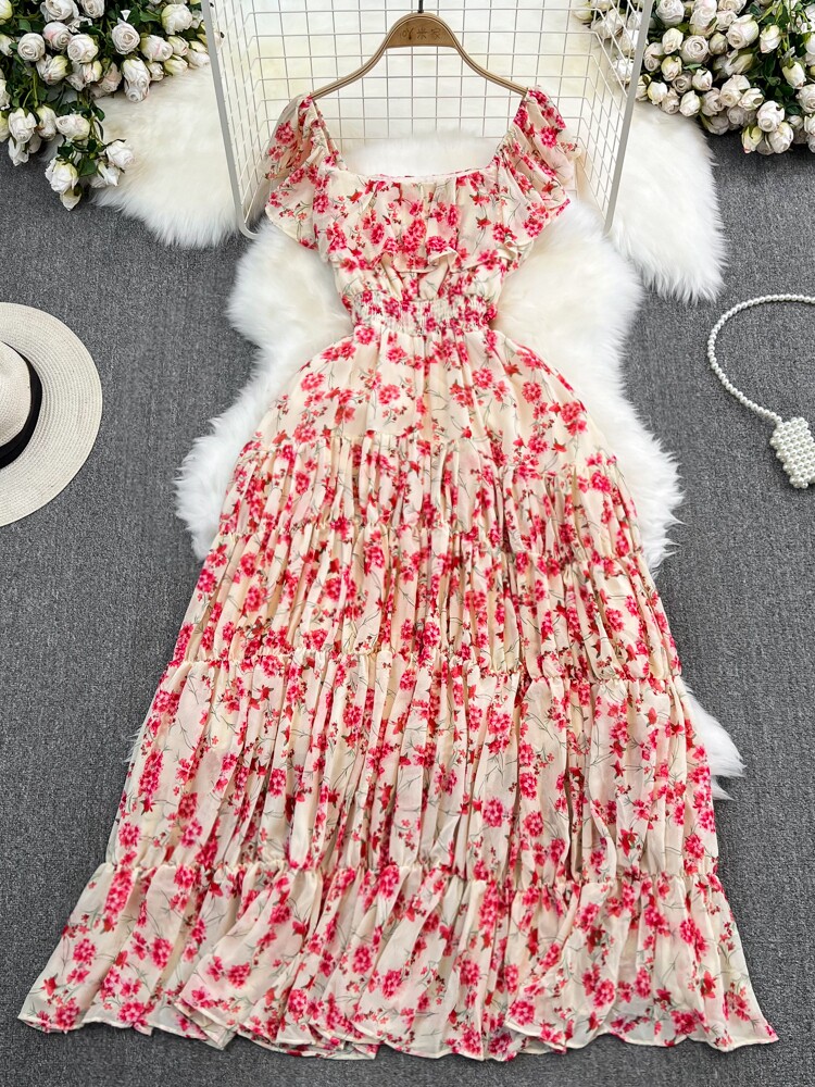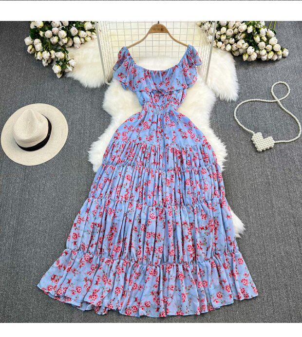 Модная длинная юбка, приталенный корсет, платье, стиль бохо, квадратный вырез, А-силуэт, в цветочек