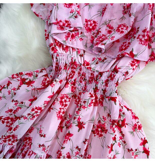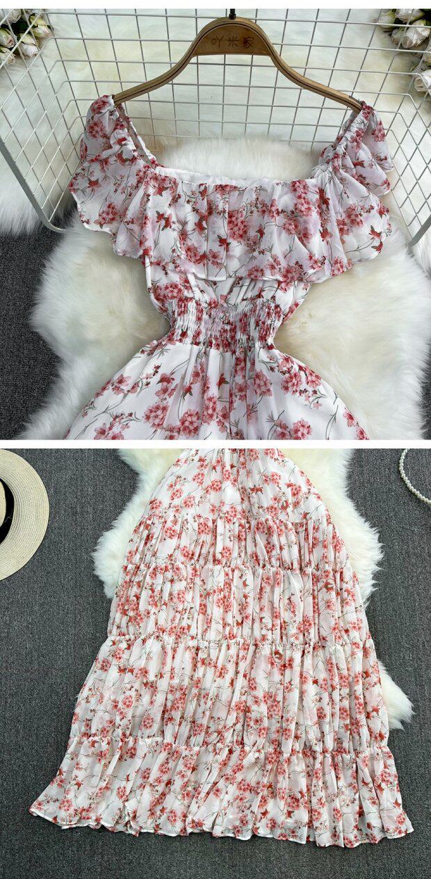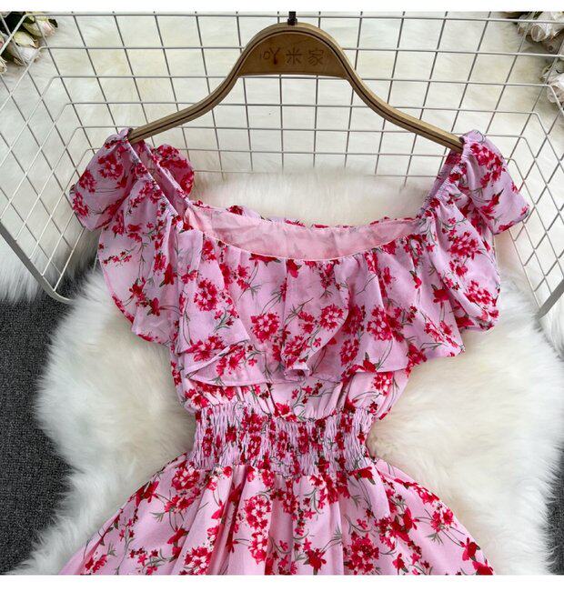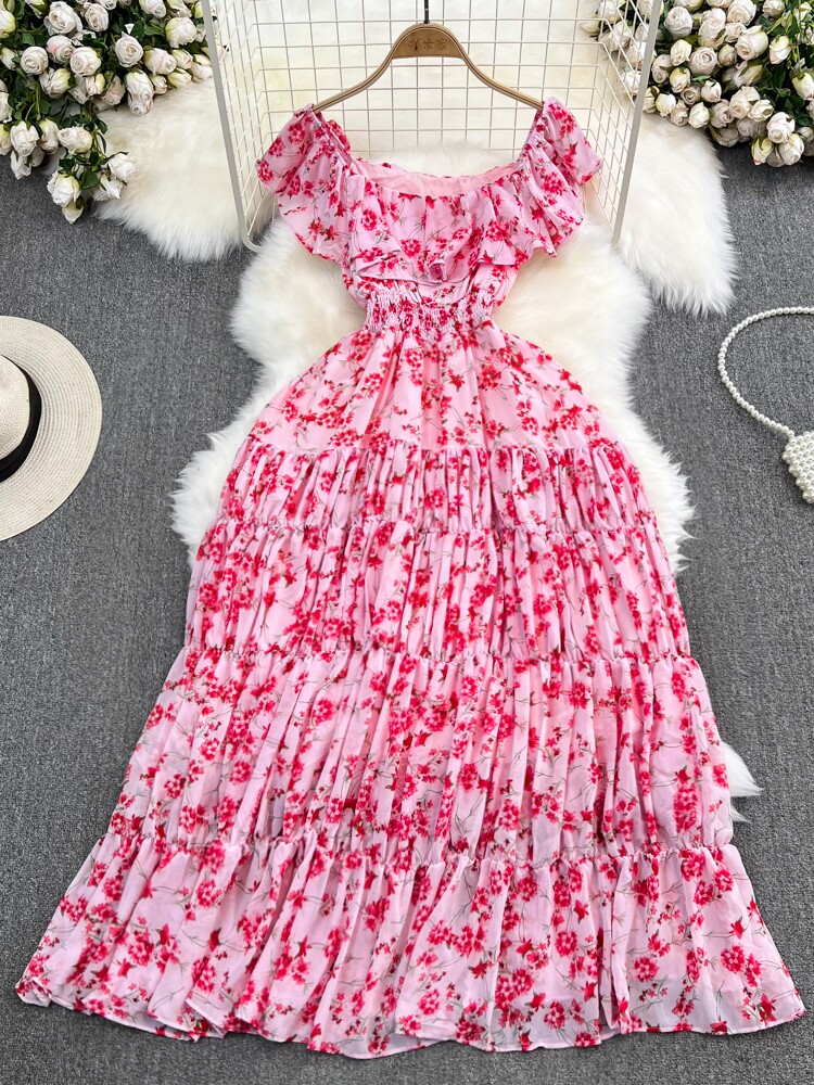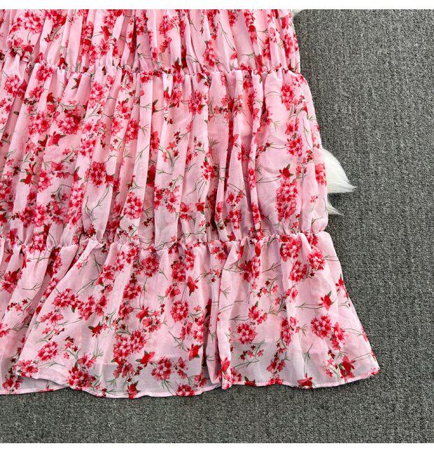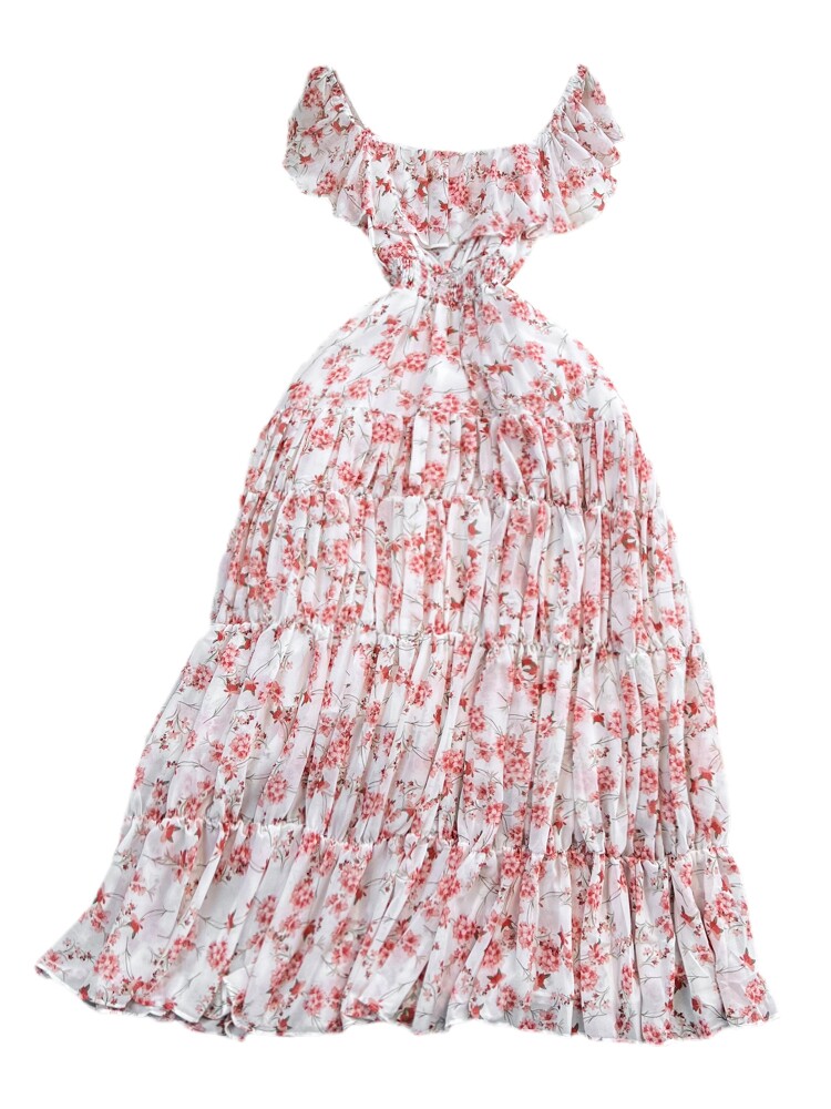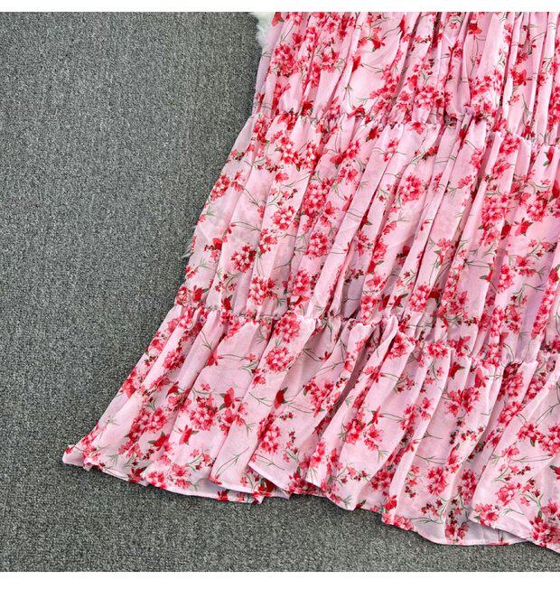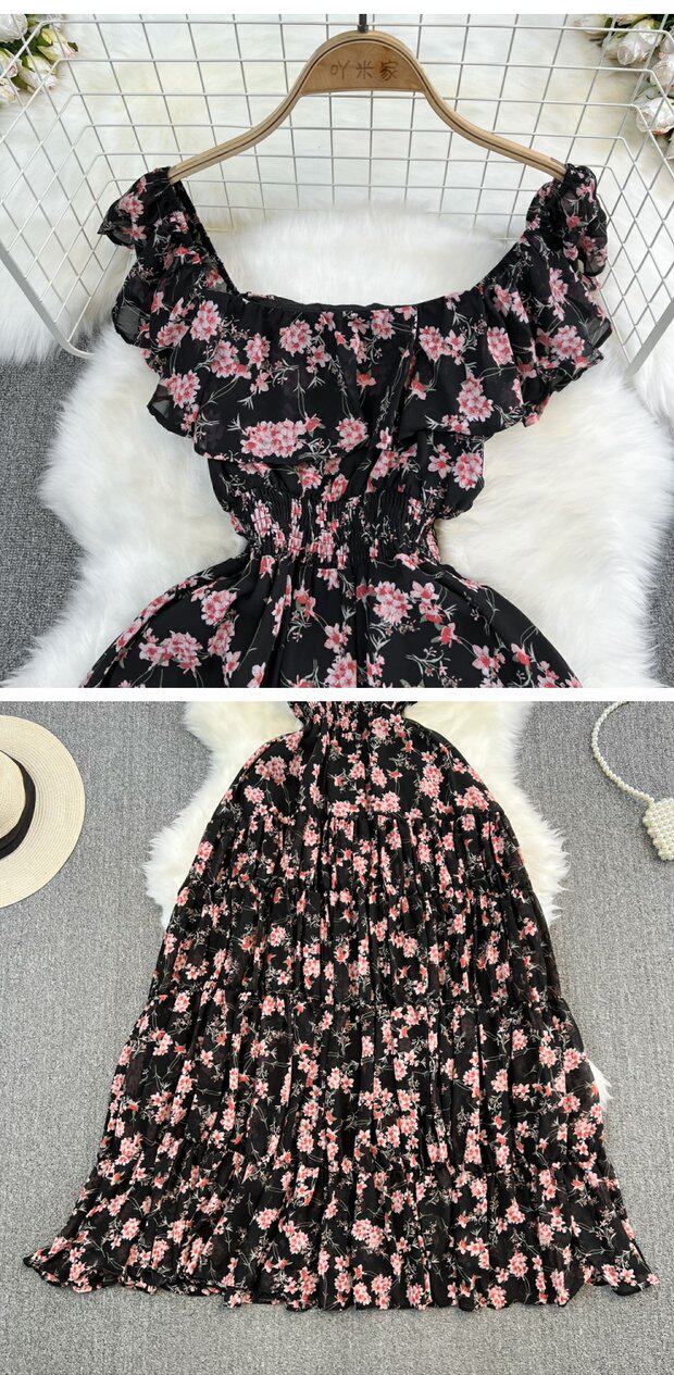 Модная длинная юбка, приталенный корсет, платье, стиль бохо, квадратный вырез, А-силуэт, в цветочек