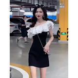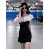 Летнее платье, приталенная мини-юбка, открытые плечи, городской стиль, яркий броский стиль, изысканный стиль