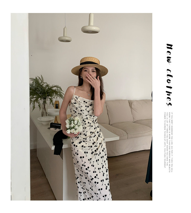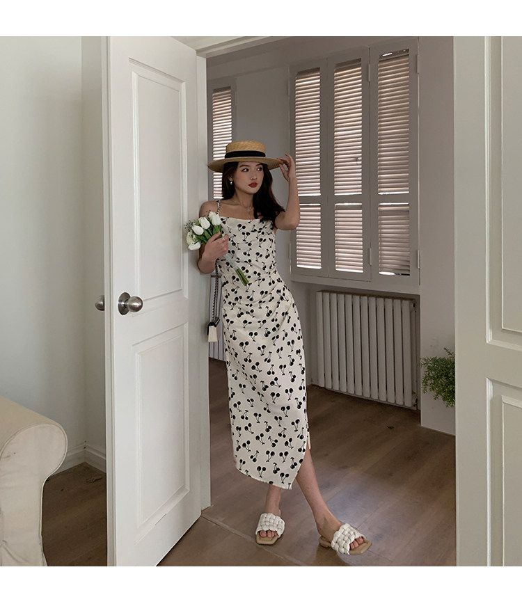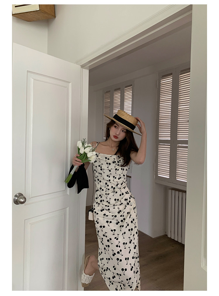 Платье, шифоновая майка, длинная юбка, французский стиль, городской стиль, в цветочек, А-силуэт