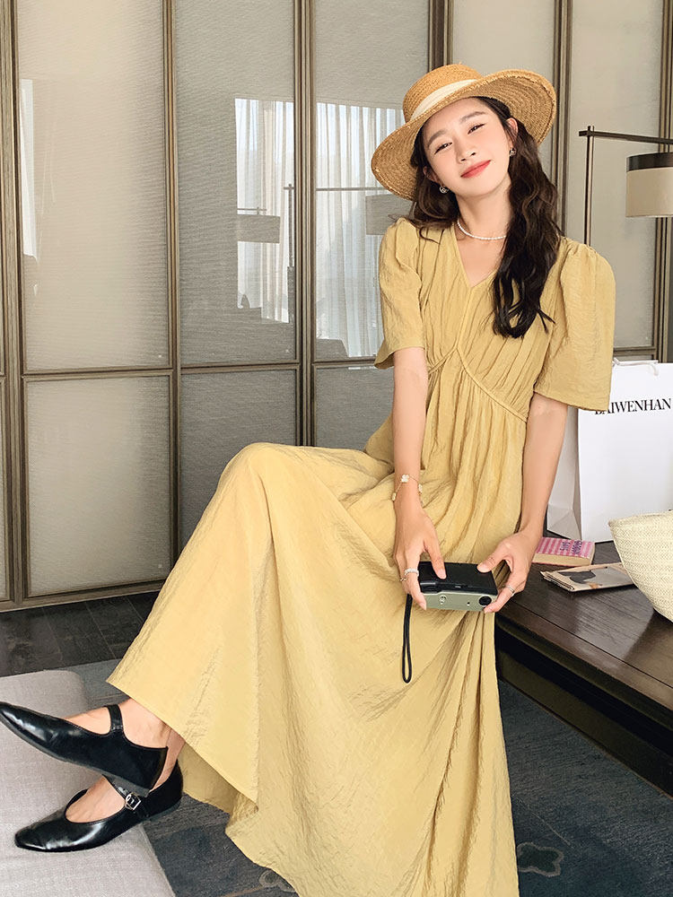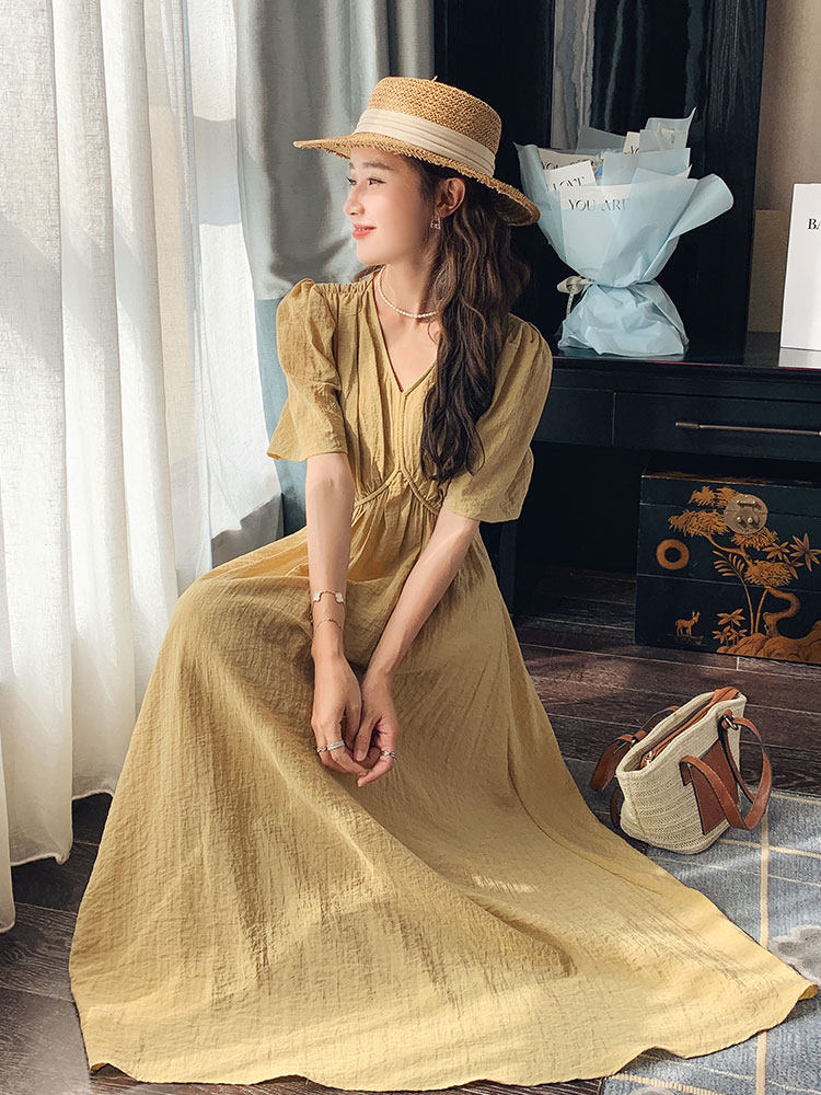 Летняя сверхдлинная длинная рыжая длинная юбка, платье, французский стиль