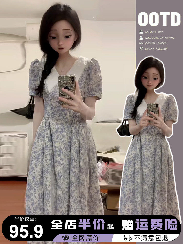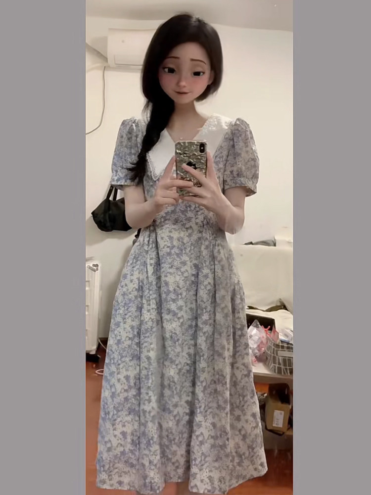Летнее платье, приталенный корсет, кукла, длинная юбка, французский стиль, в цветочек, кукольный воротник
