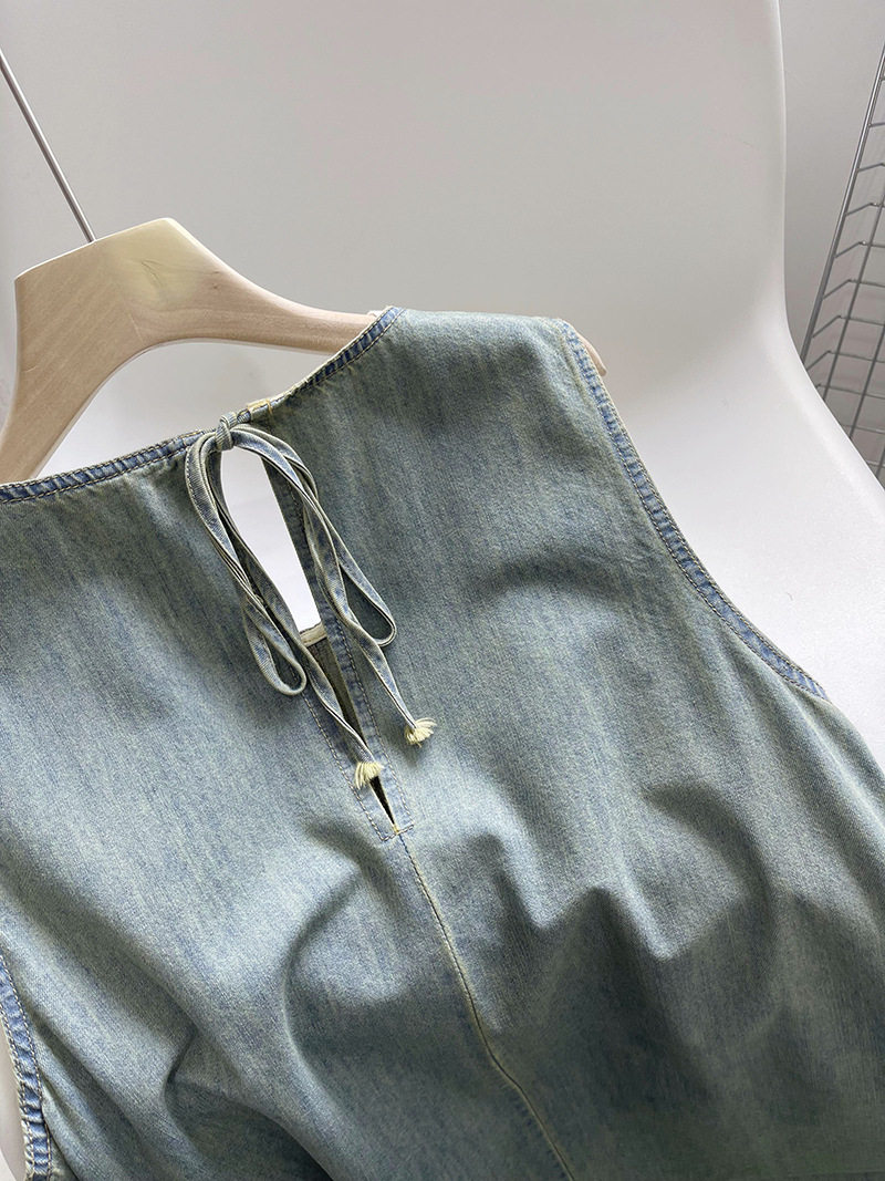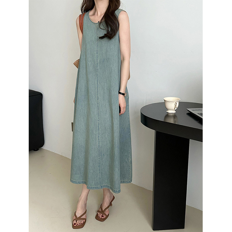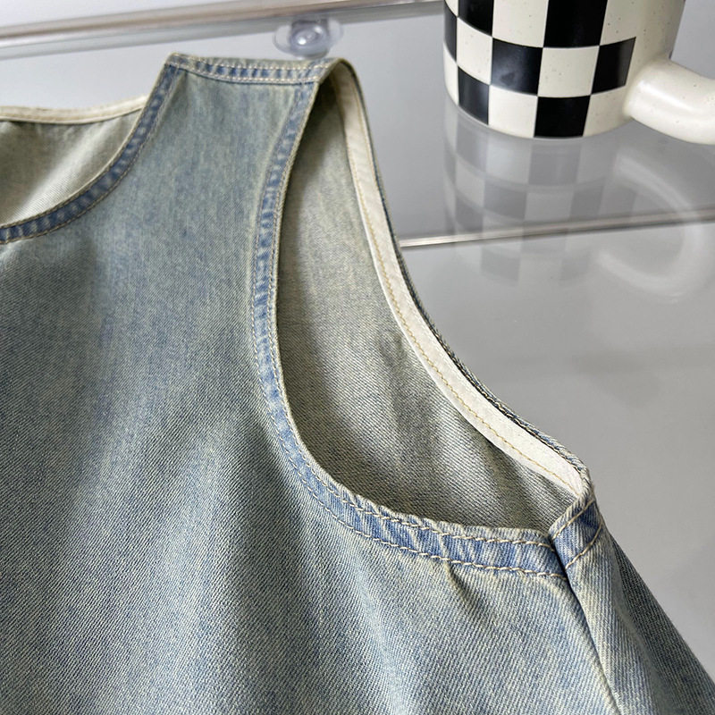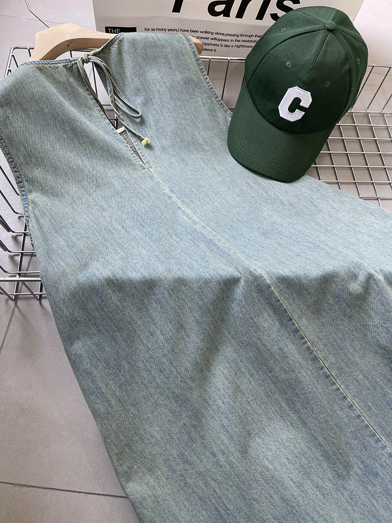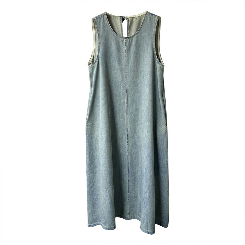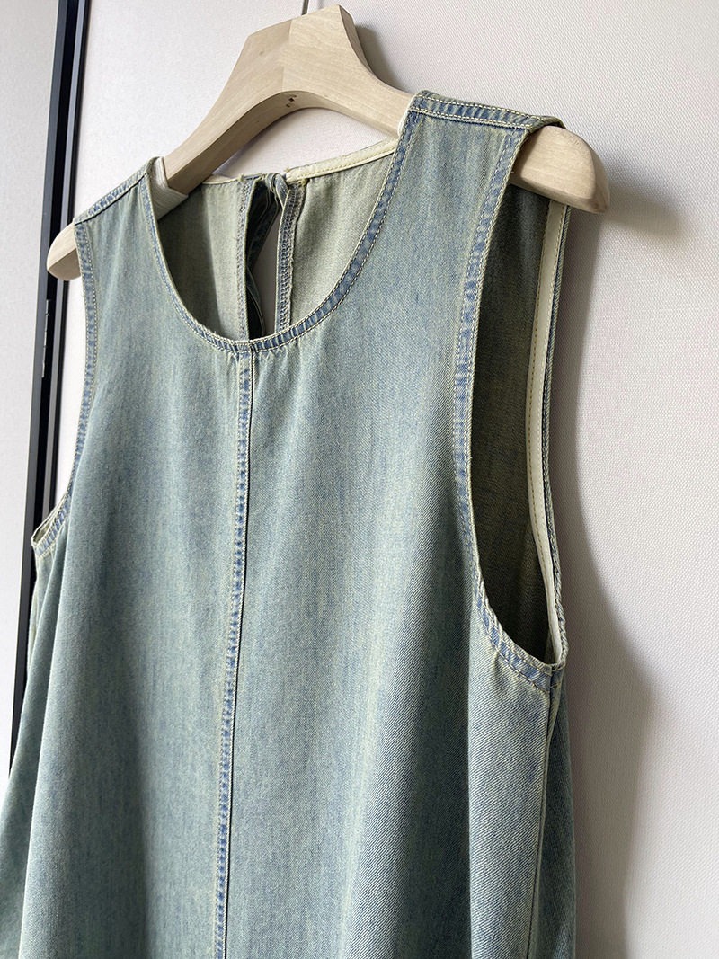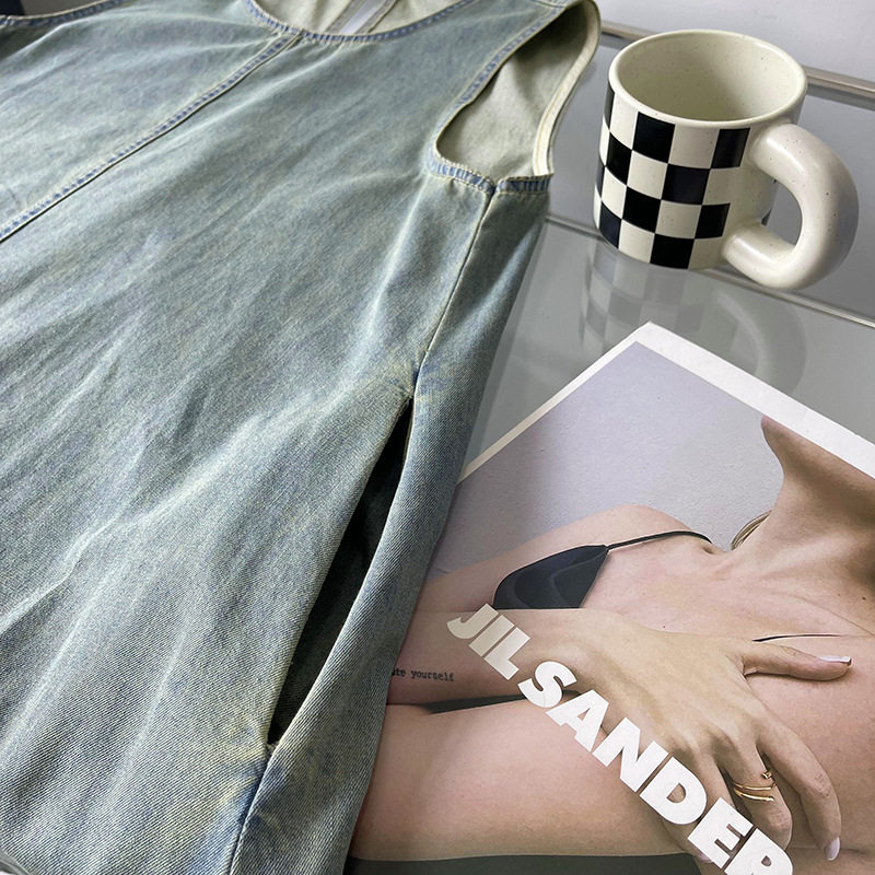 Прямое джинсовое платье без рукавов в японском стиле, французская винтажная винтажная майка, деконструированная юбка в стиле ваби-саби