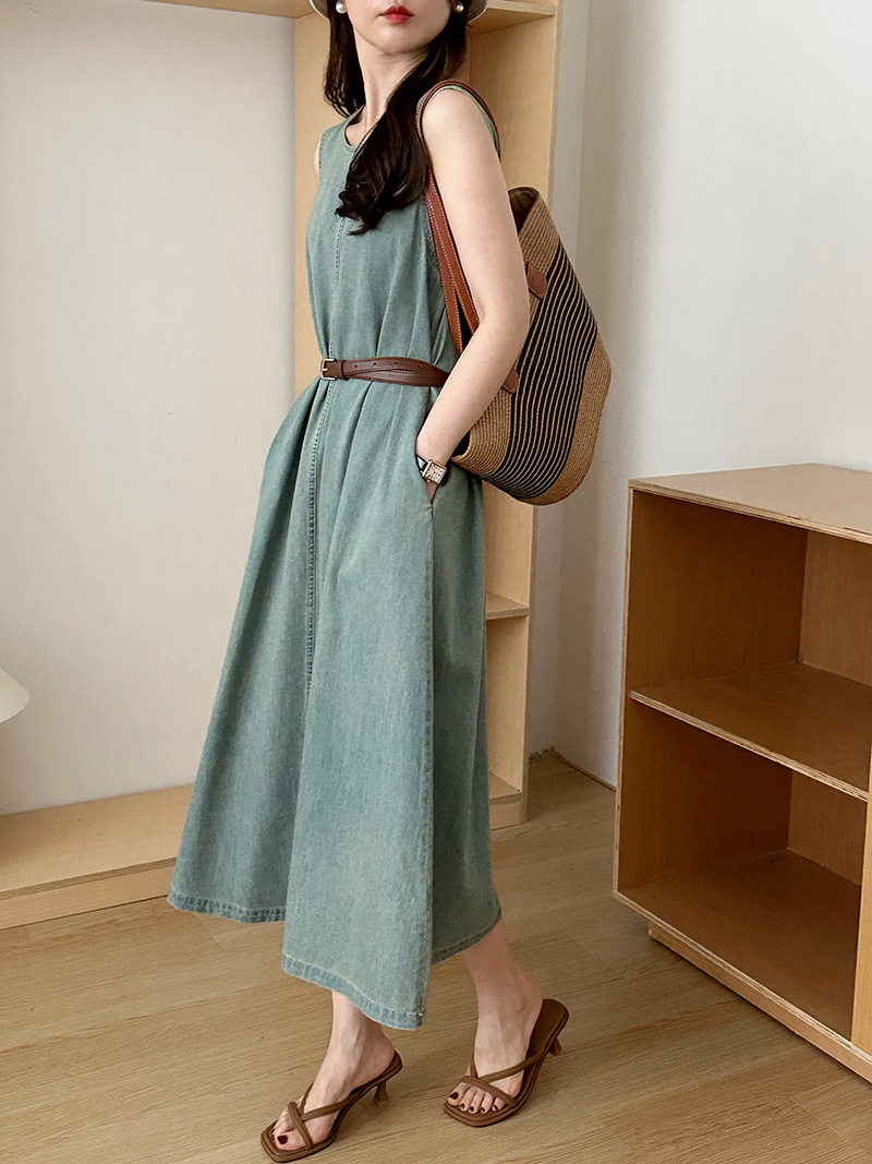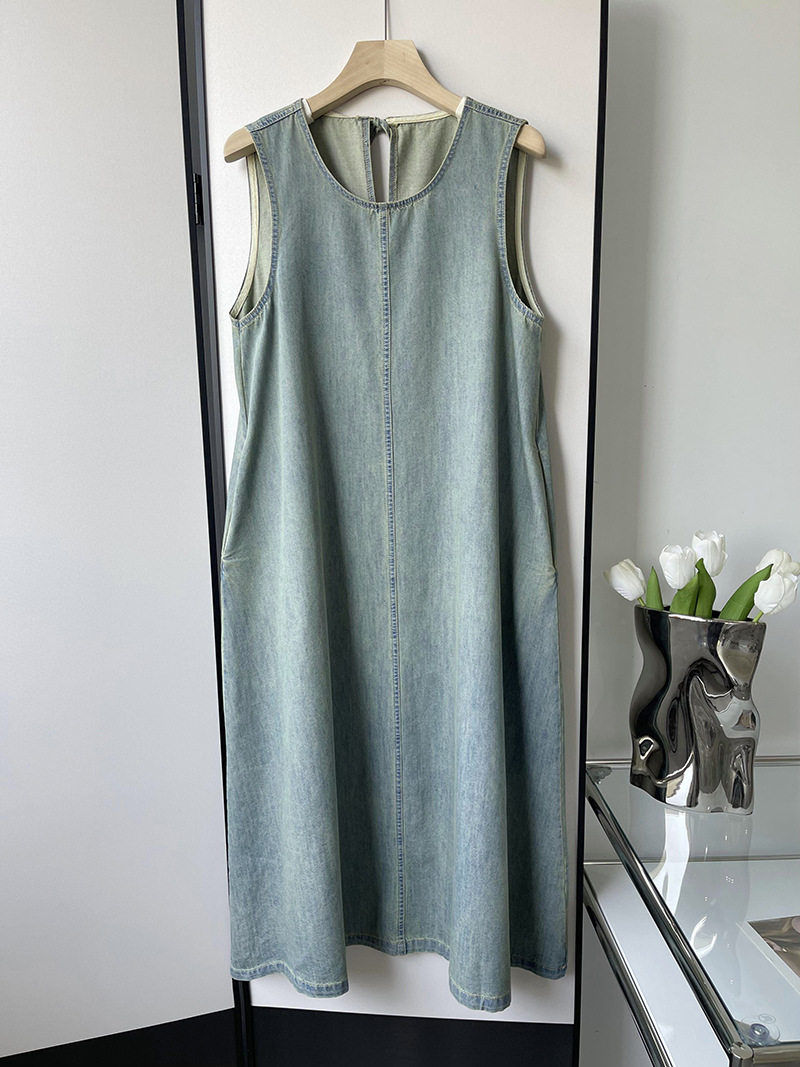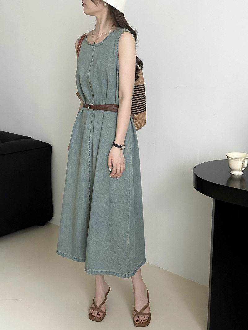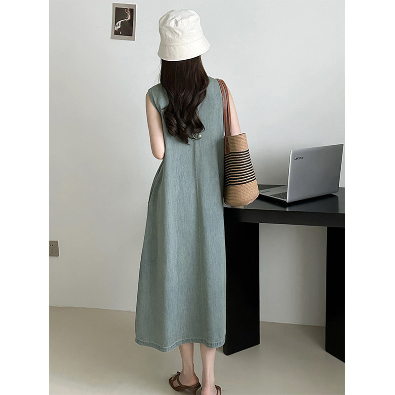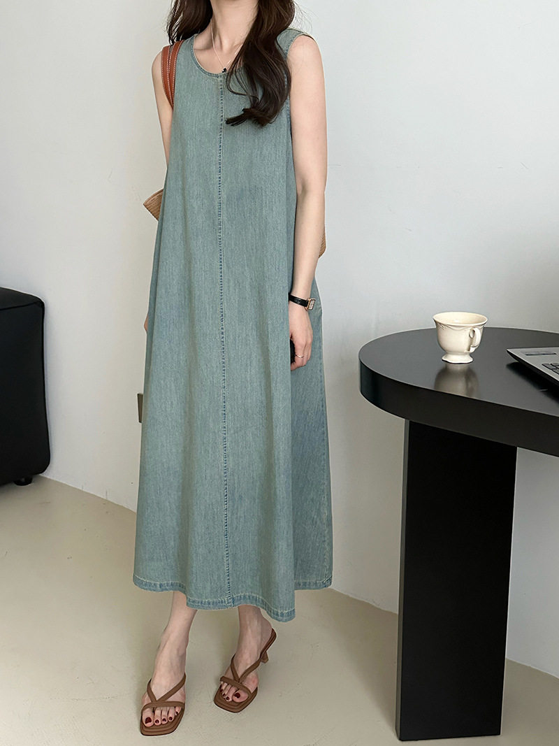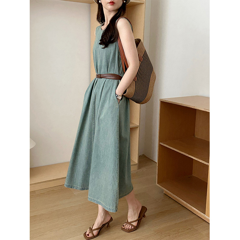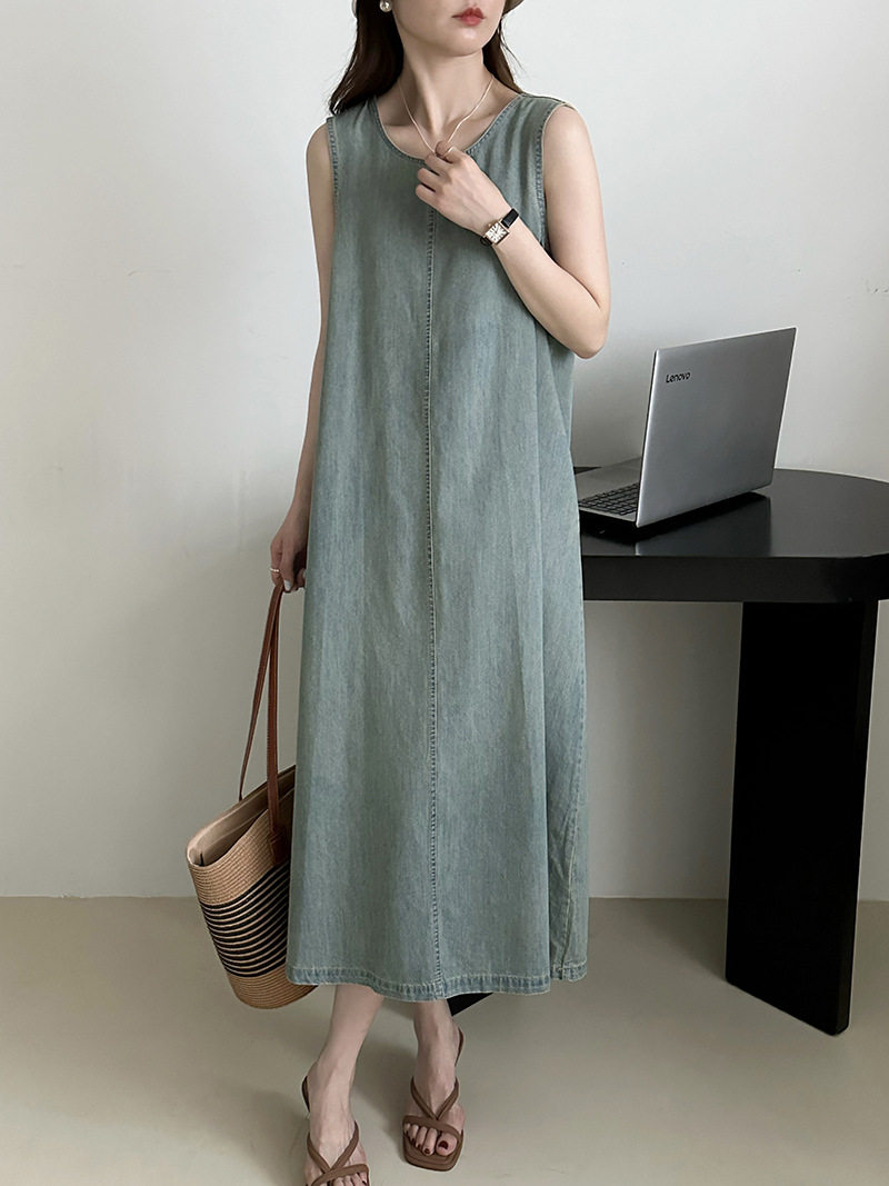 Прямое джинсовое платье без рукавов в японском стиле, французская винтажная винтажная майка, деконструированная юбка в стиле ваби-саби