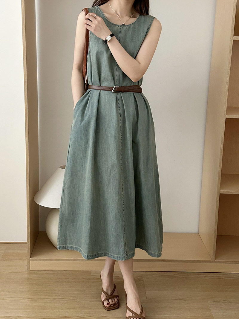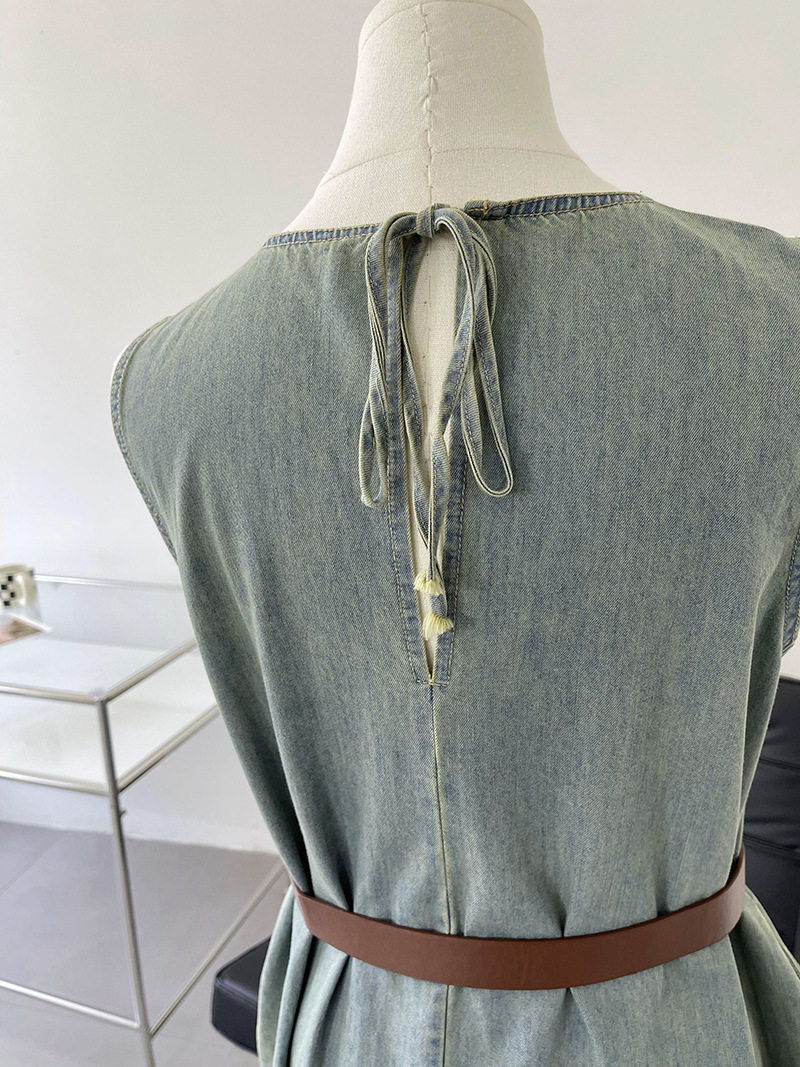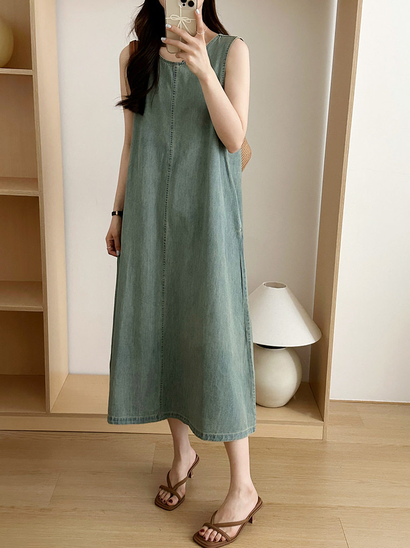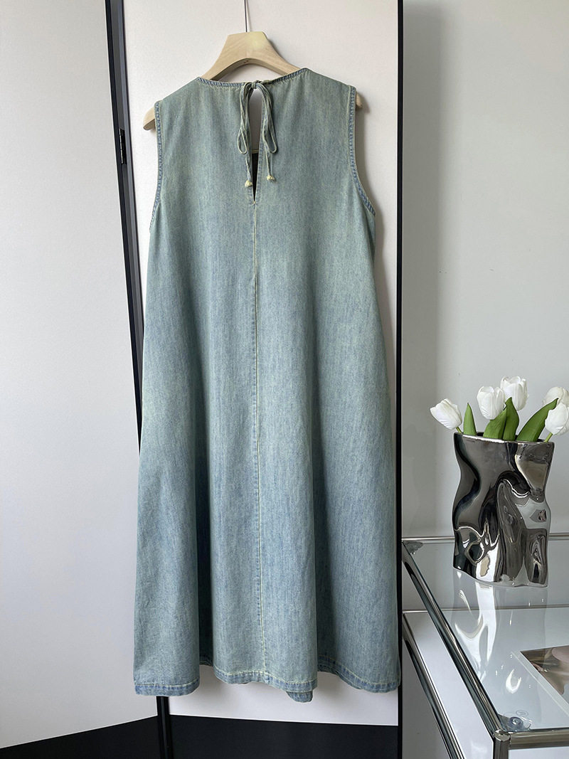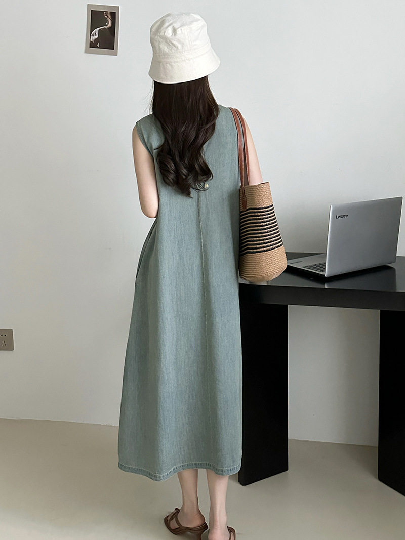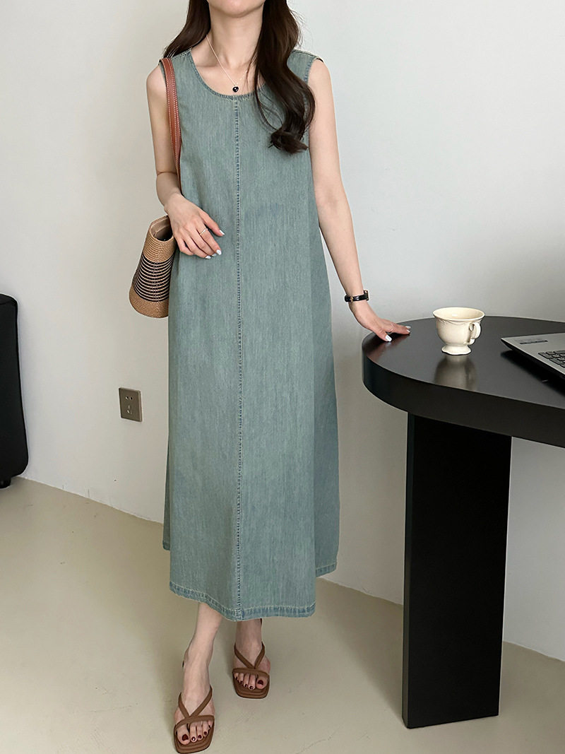 Прямое джинсовое платье без рукавов в японском стиле, французская винтажная винтажная майка, деконструированная юбка в стиле ваби-саби