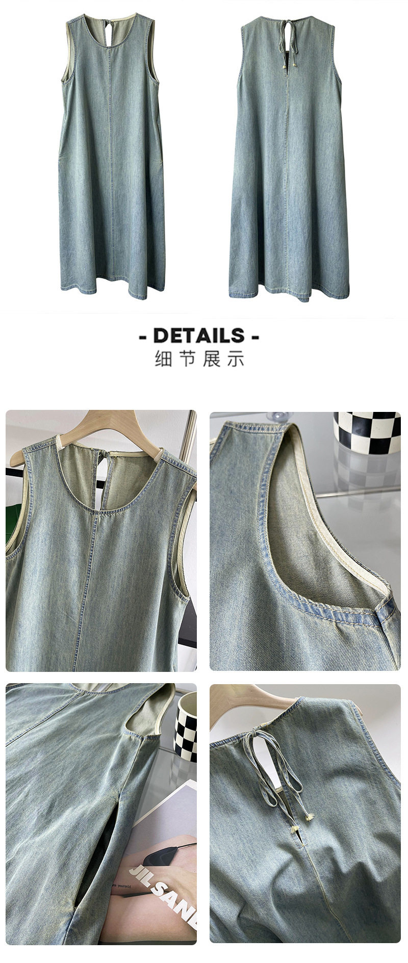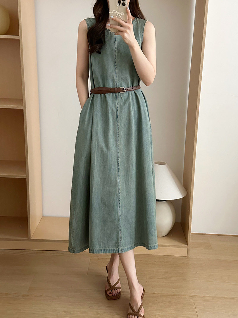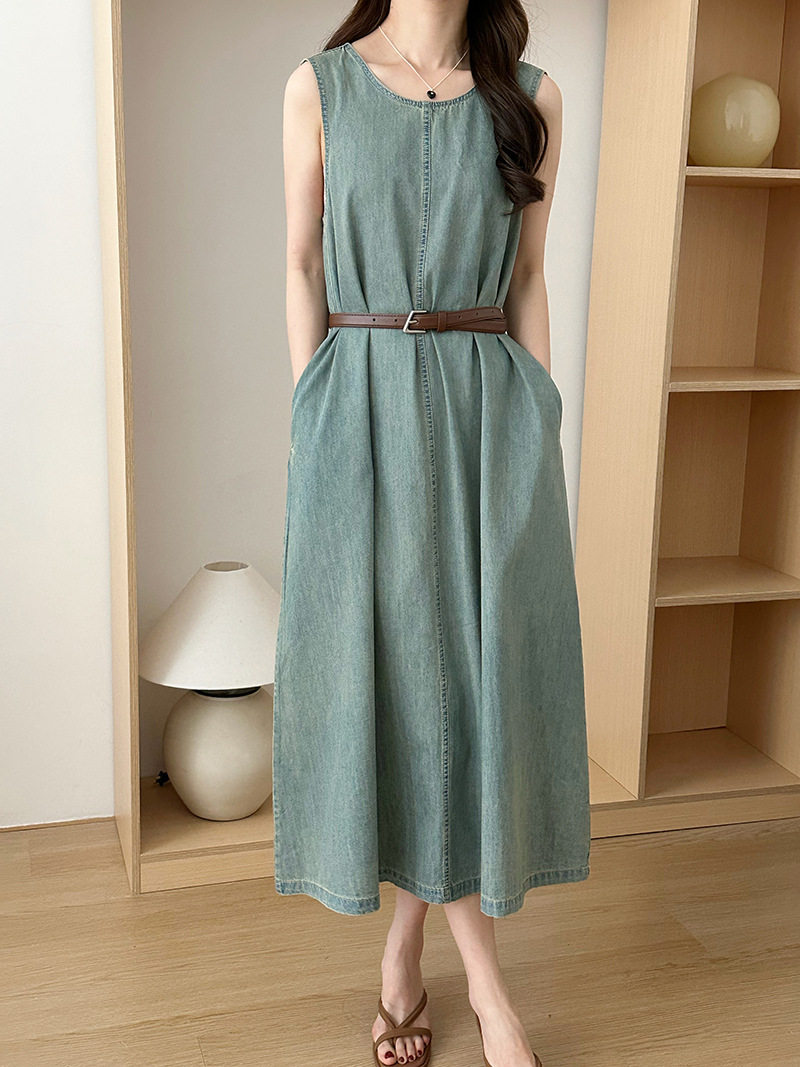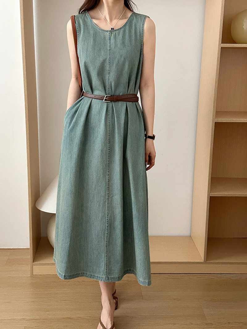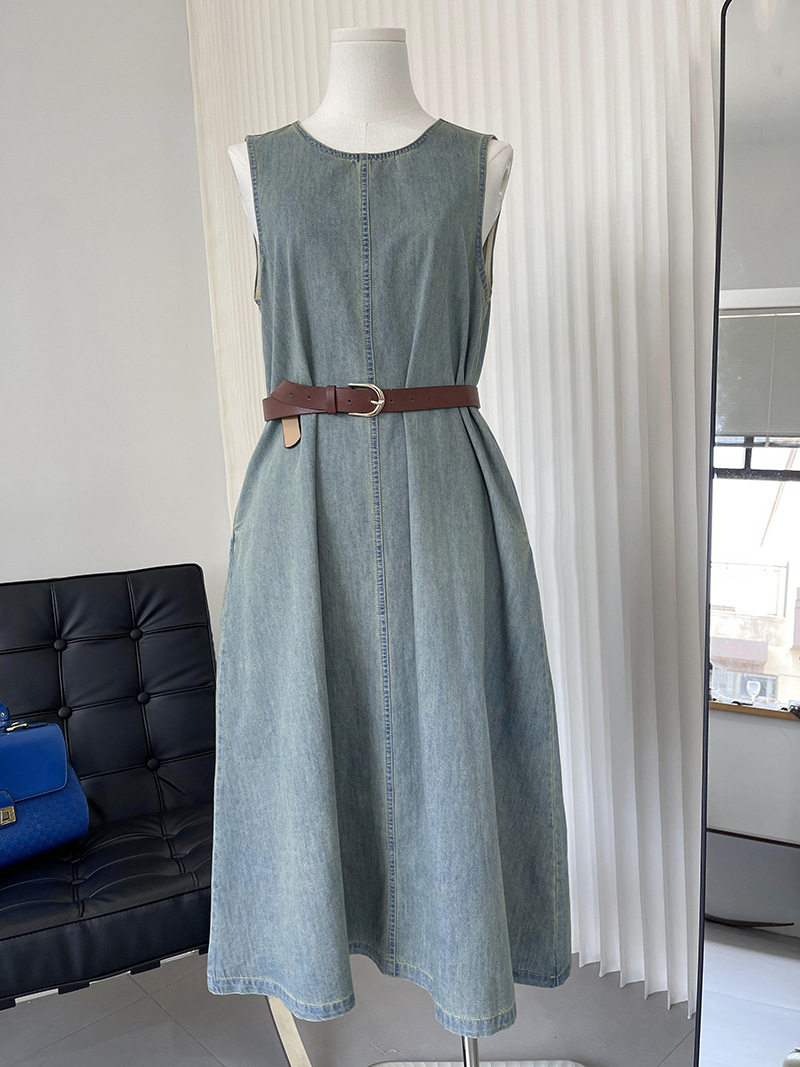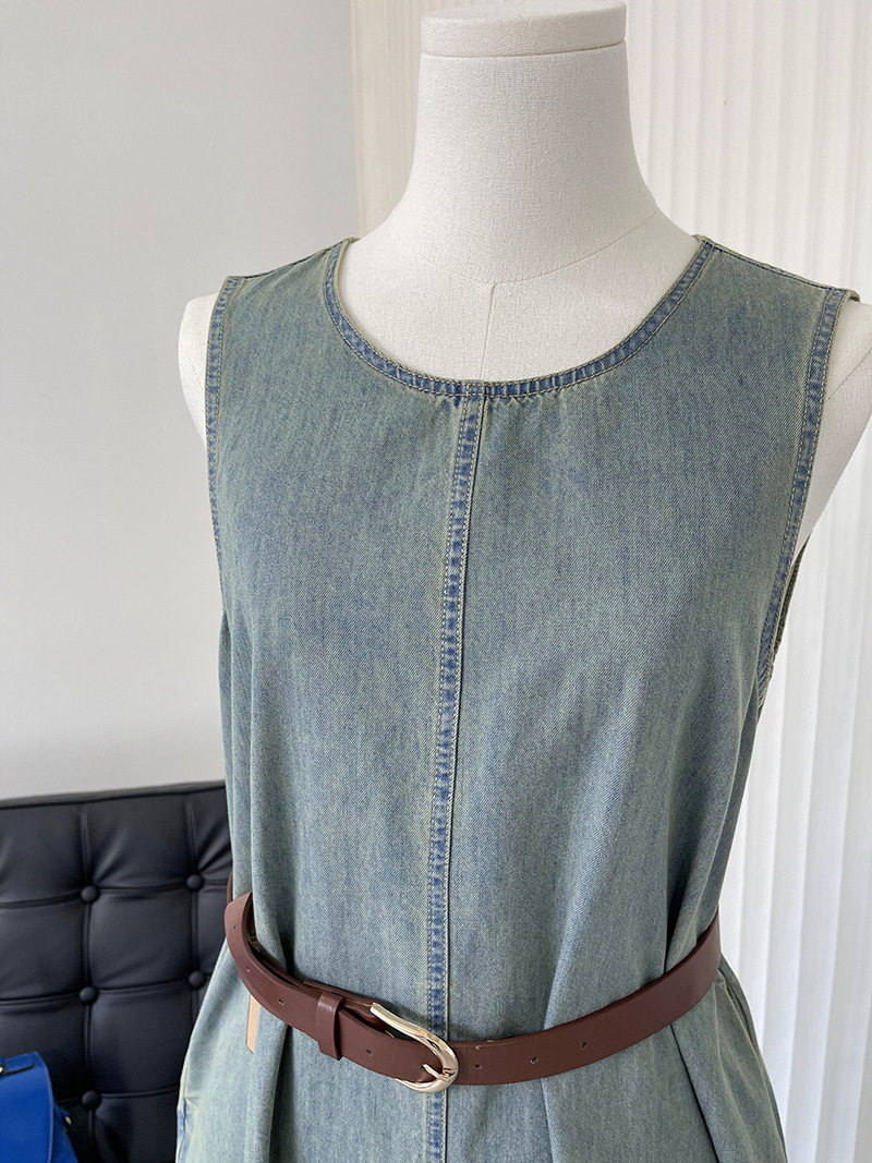 Прямое джинсовое платье без рукавов в японском стиле, французская винтажная винтажная майка, деконструированная юбка в стиле ваби-саби