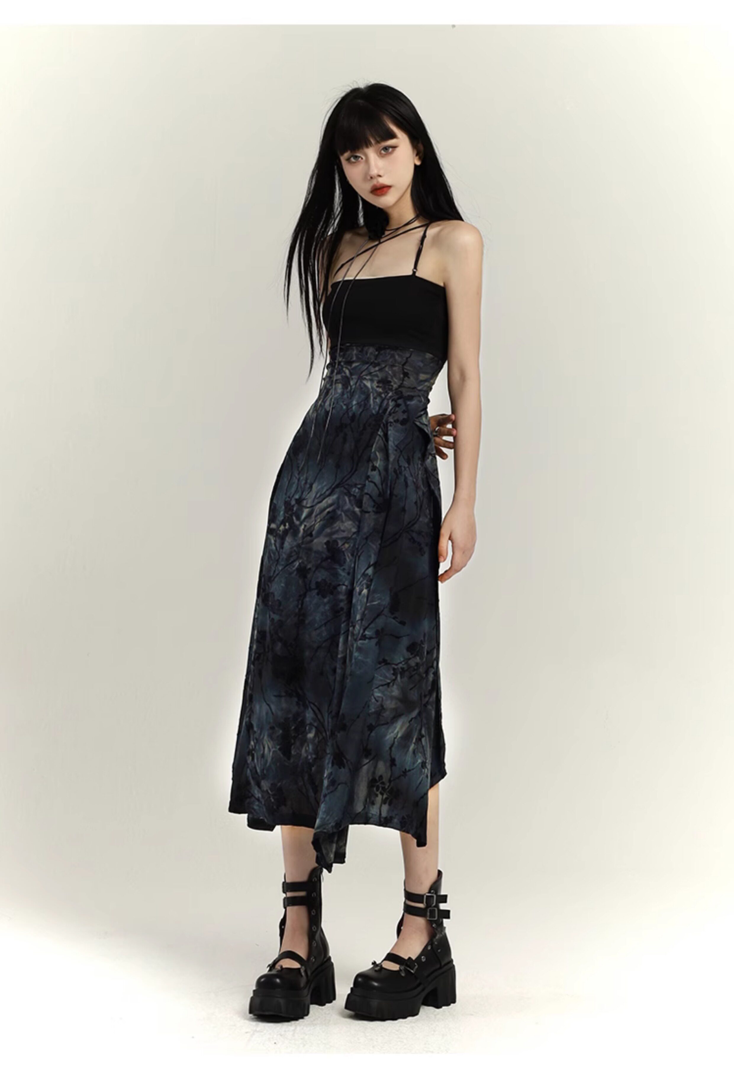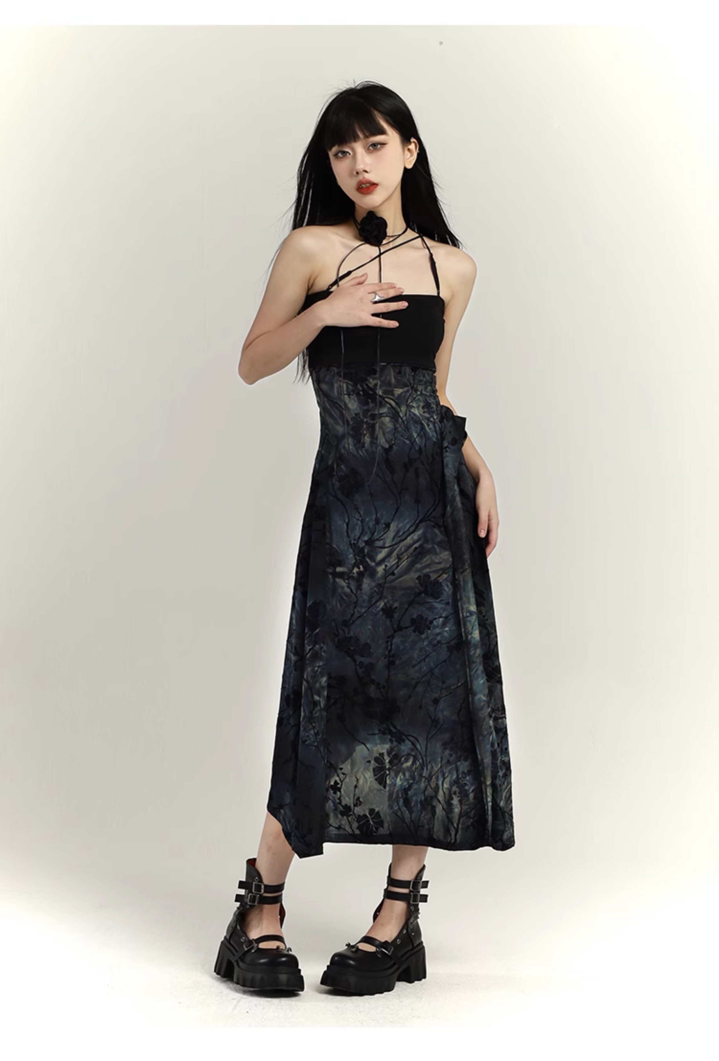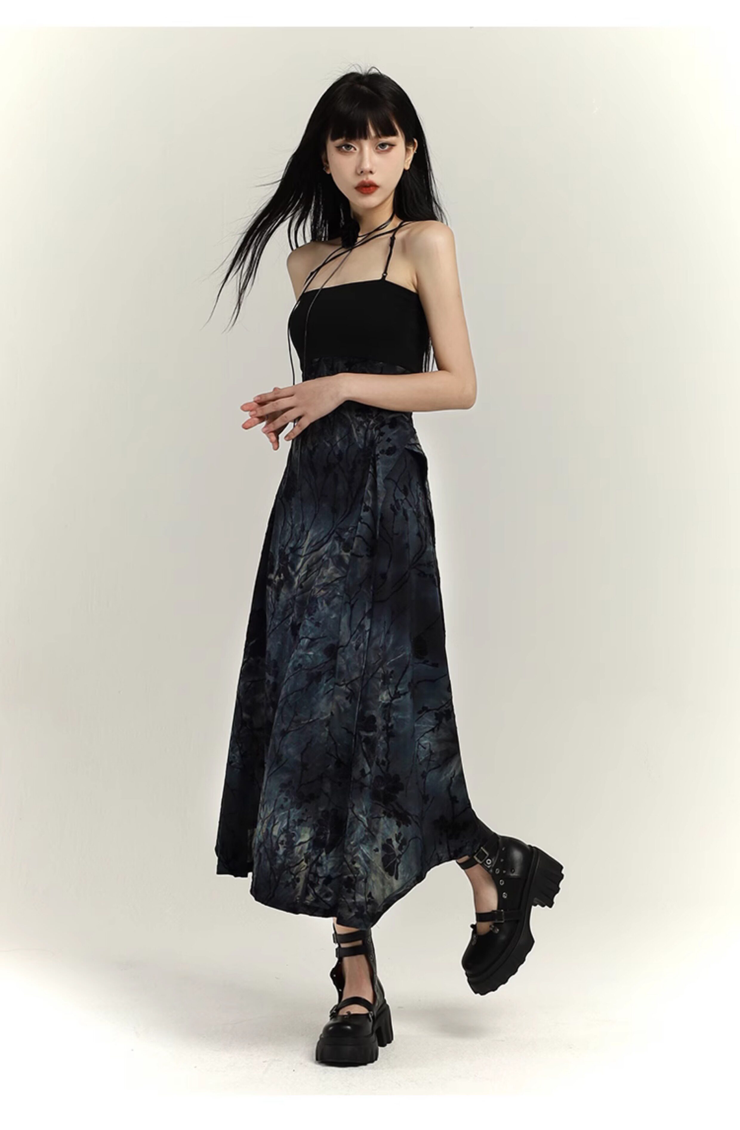 幽灵少女 Новая женская одежда в китайском стиле 2025, весеннее платье на подтяжках в китайском стиле, уникальная длинная юбка с художественным смыслом