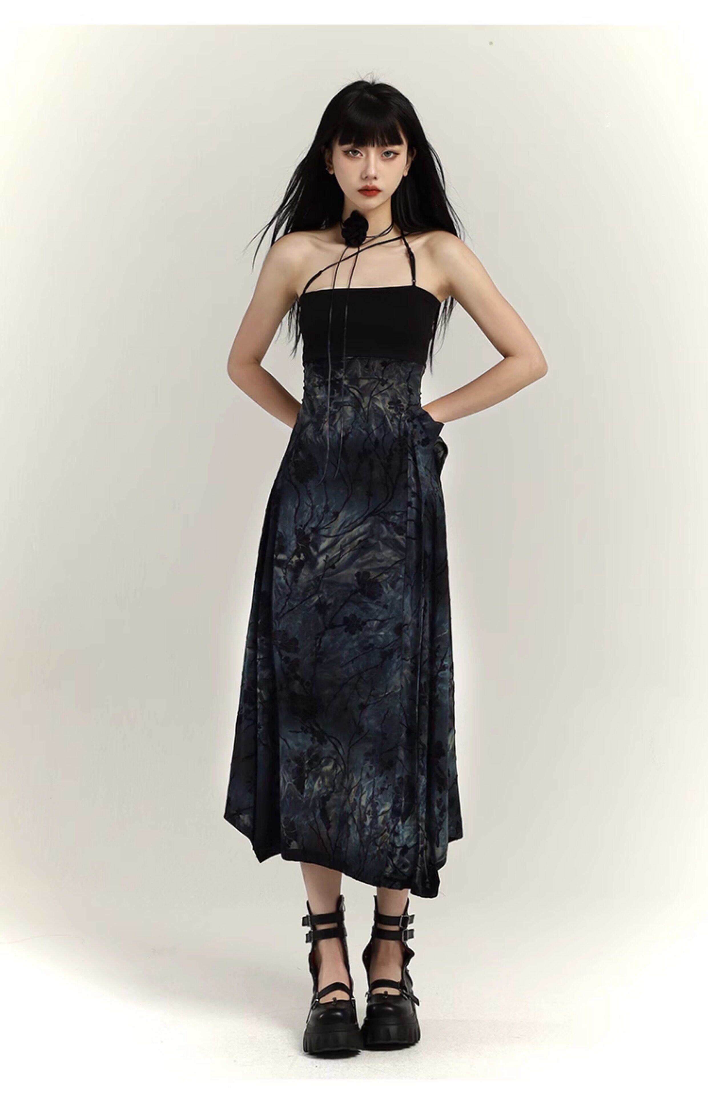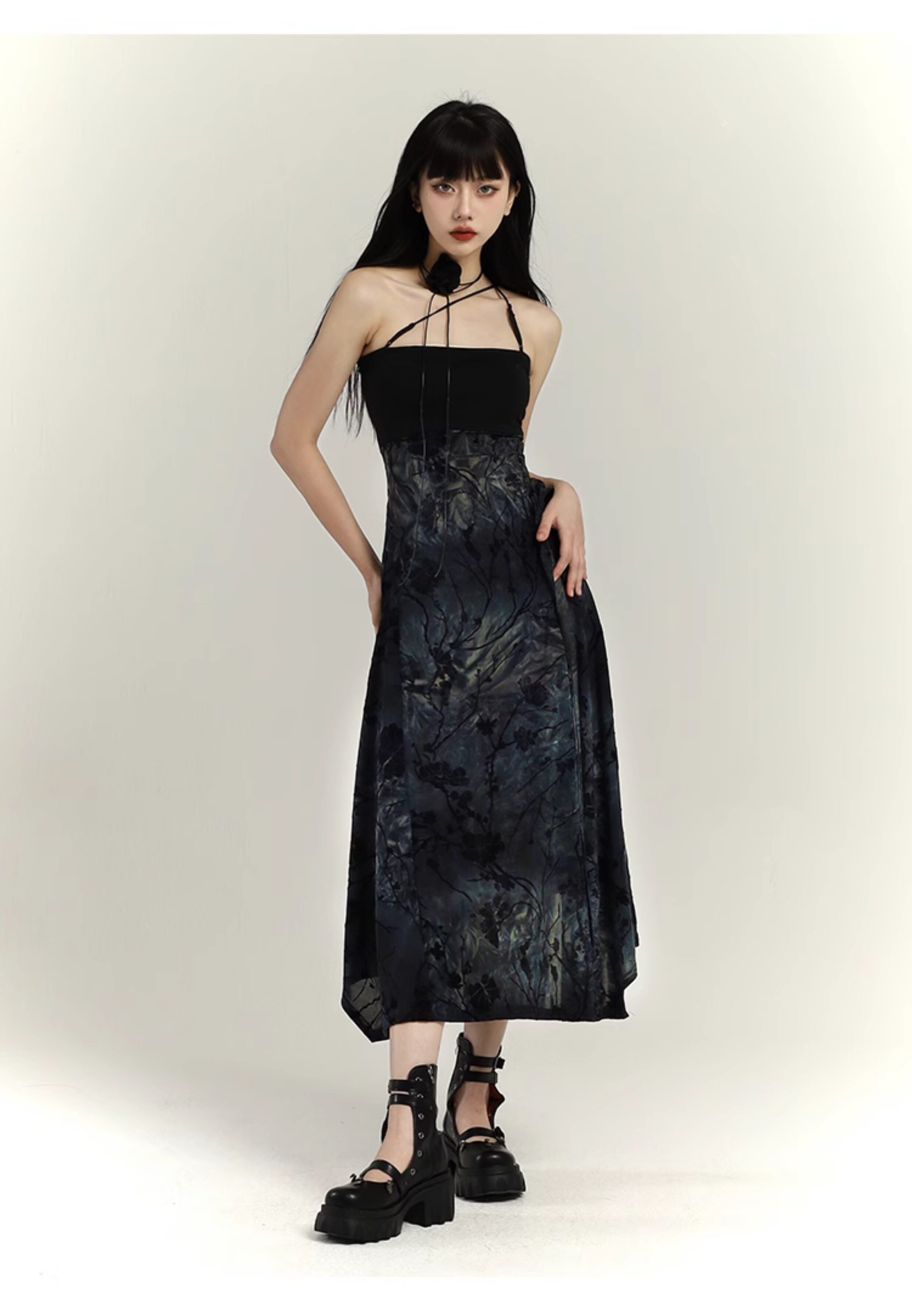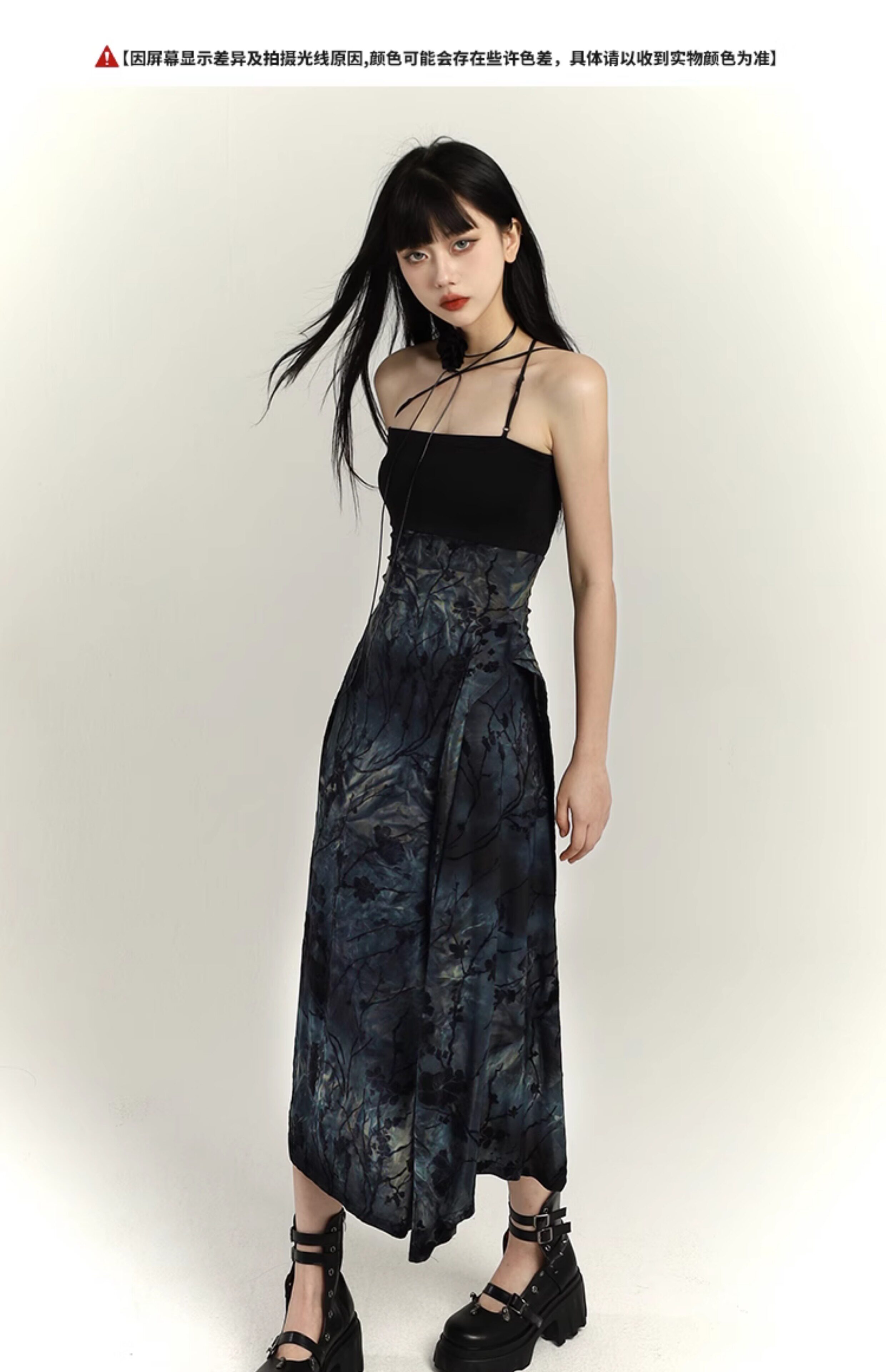 幽灵少女 Новая женская одежда в китайском стиле 2025, весеннее платье на подтяжках в китайском стиле, уникальная длинная юбка с художественным смыслом