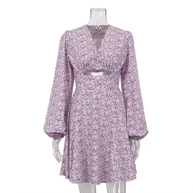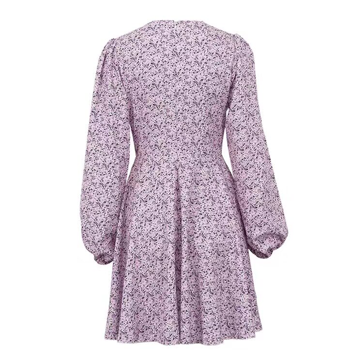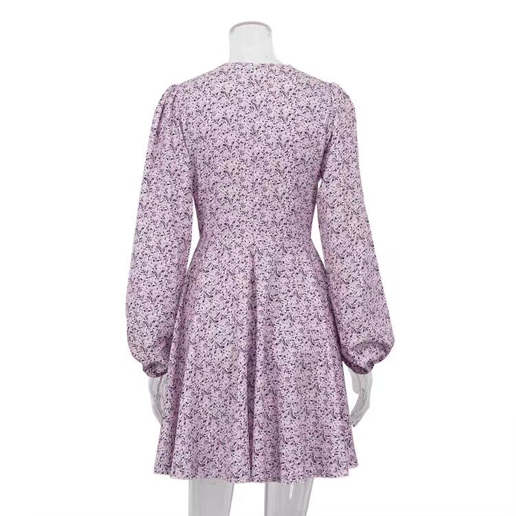 Новый французский стиль, модное сексуальное платье с вареньем с длинными рукавами сексуальное платье V-образного вырезки Printd