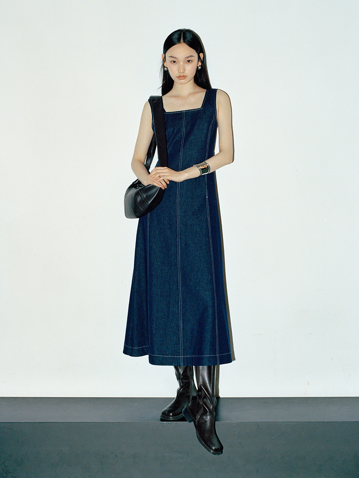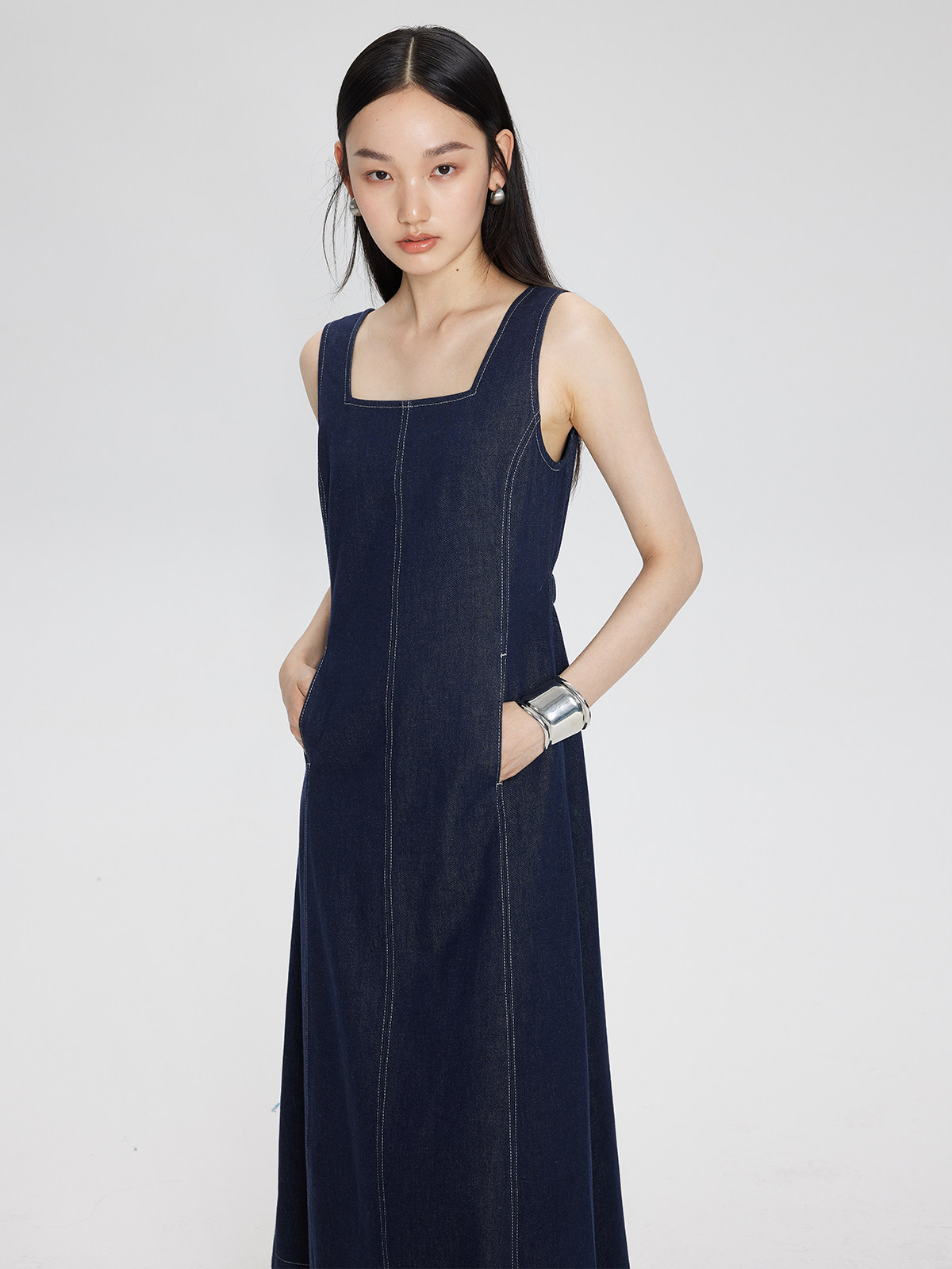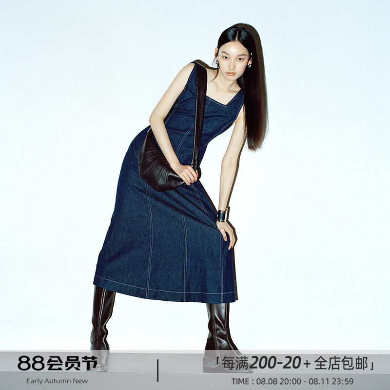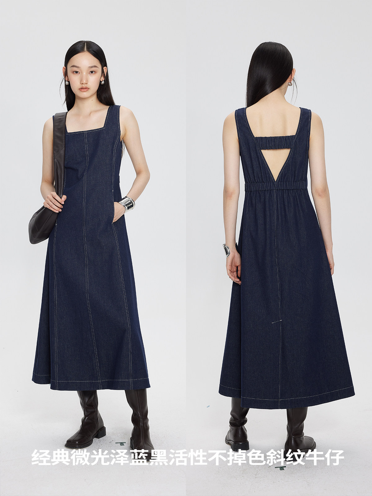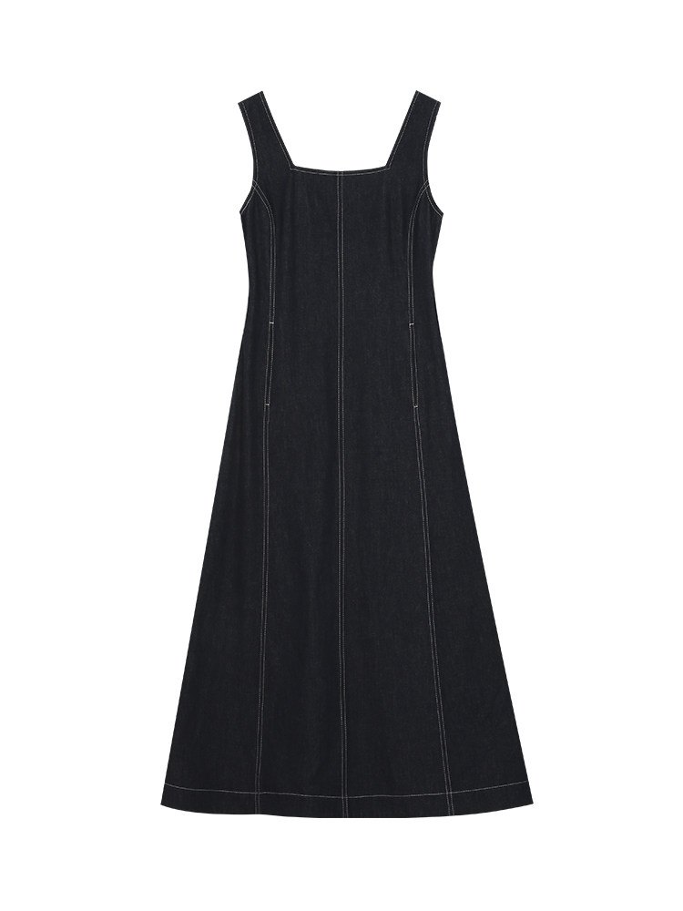 Минималистичные джинсовые подтяжки, летнее платье, весенняя длинная юбка, квадратный вырез, с открытой спиной