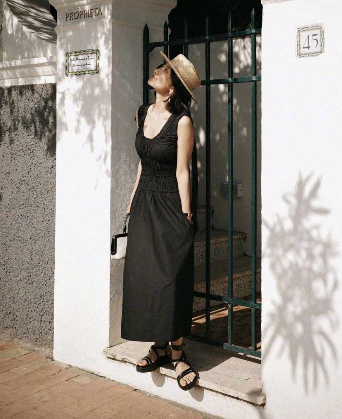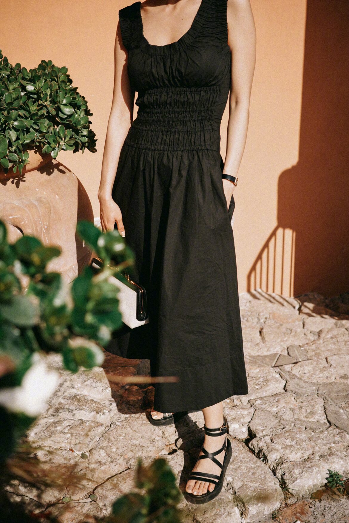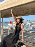 Летнее классическое черное платье с рукавами без рукавов, юбка