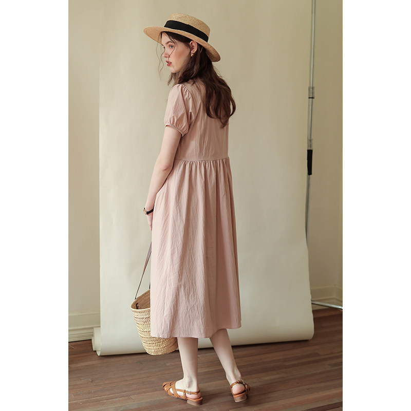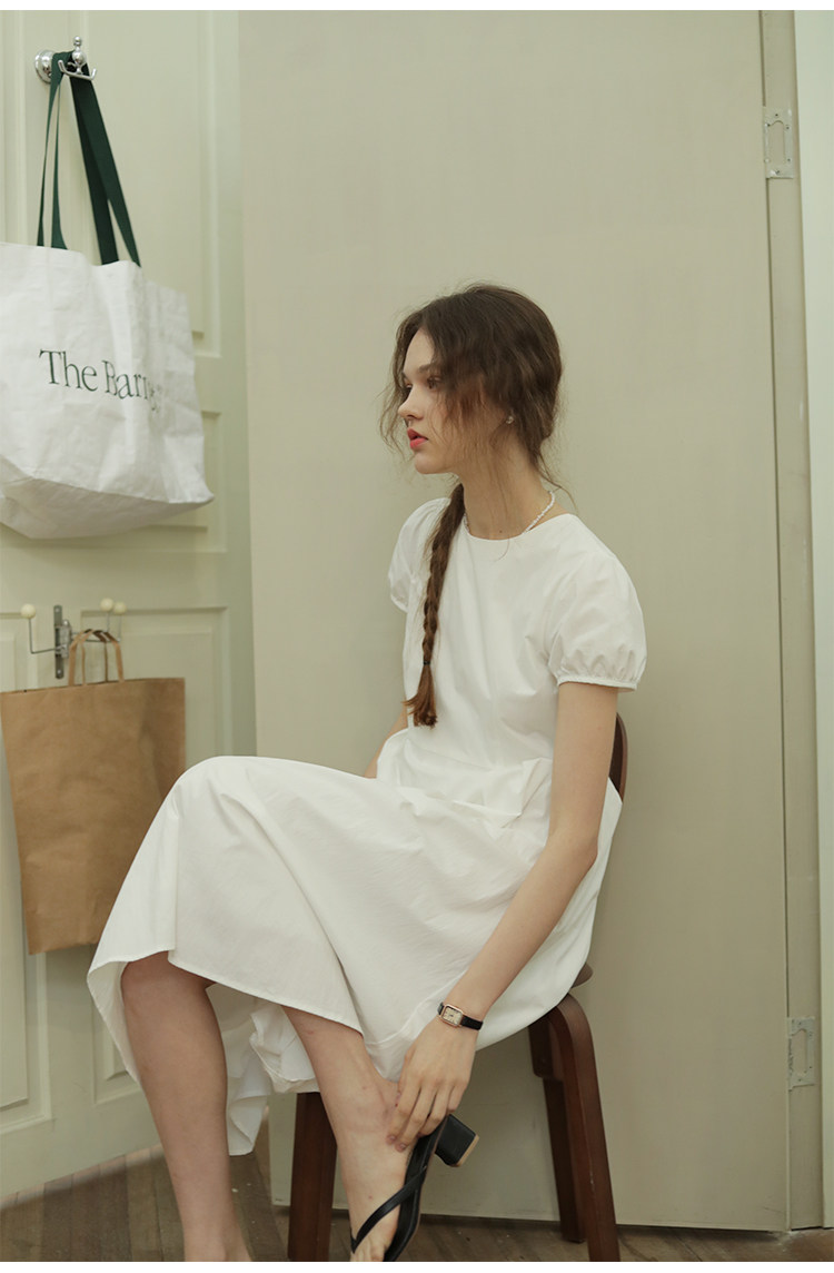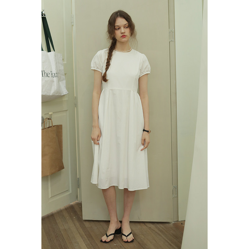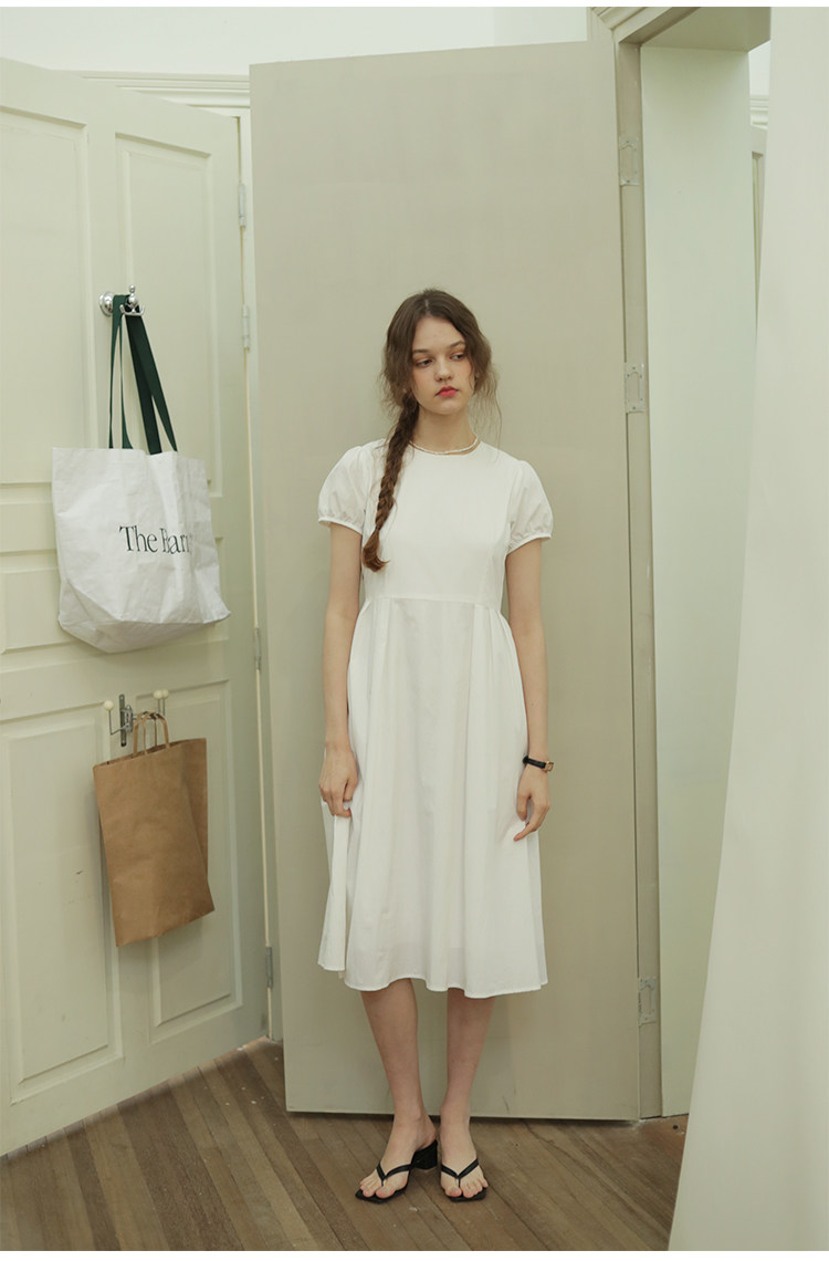 Летний корсет с круглым воротником, длинная юбка, рукава фонарики, короткий рукав, длина миди