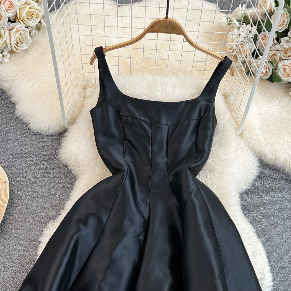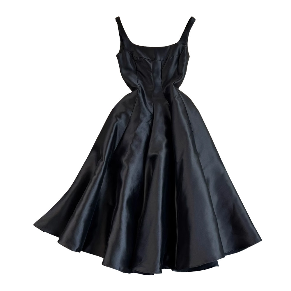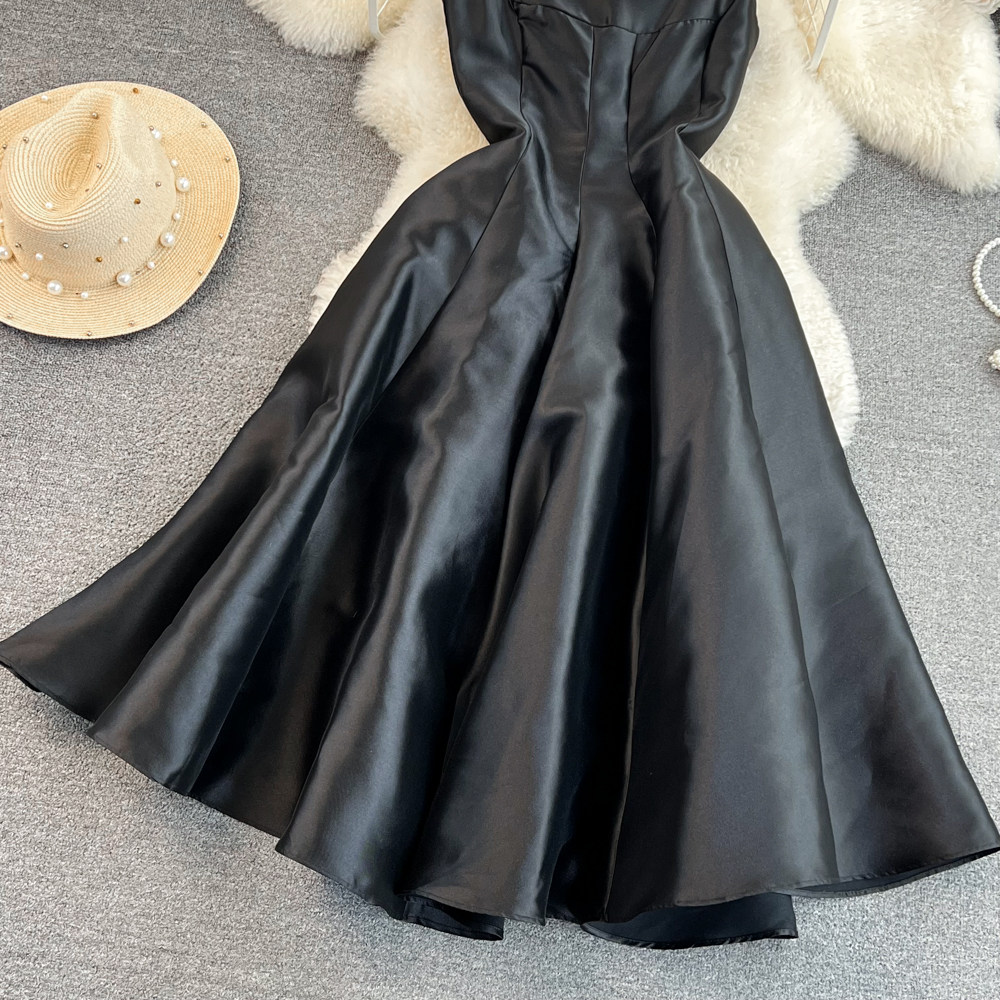 Ретро платье, дизайнерский приталенный длинный корсет, изысканный стиль, французский стиль, средней длины, А-силуэт