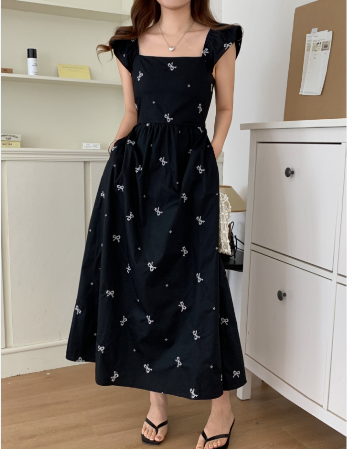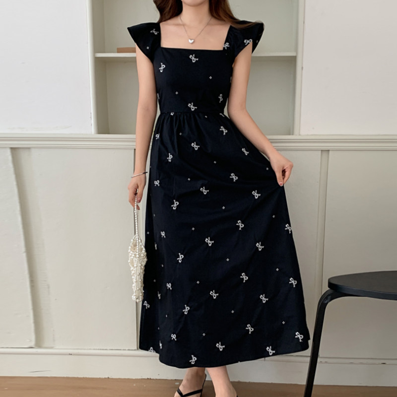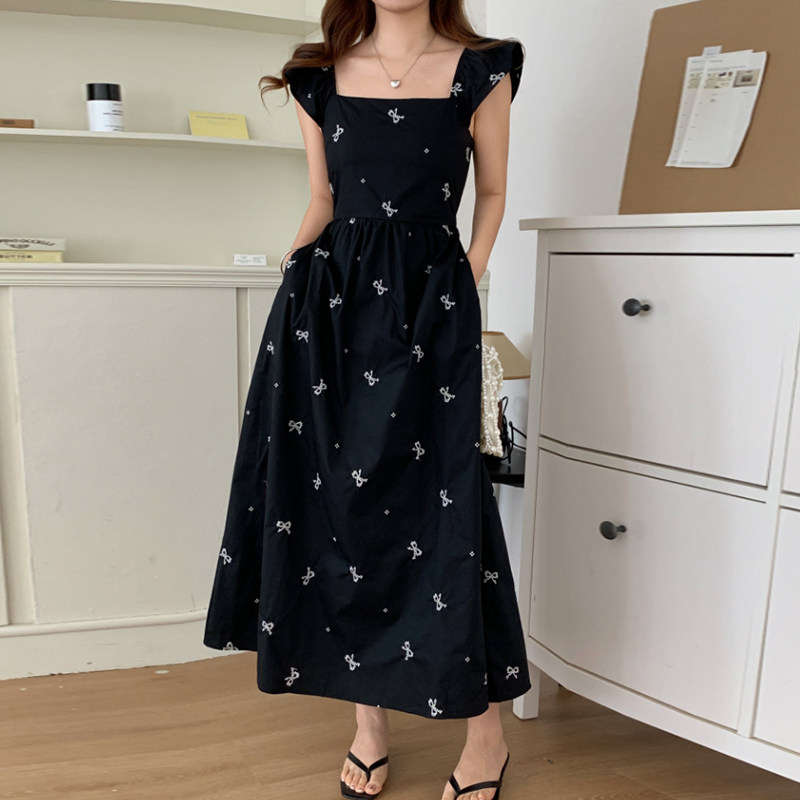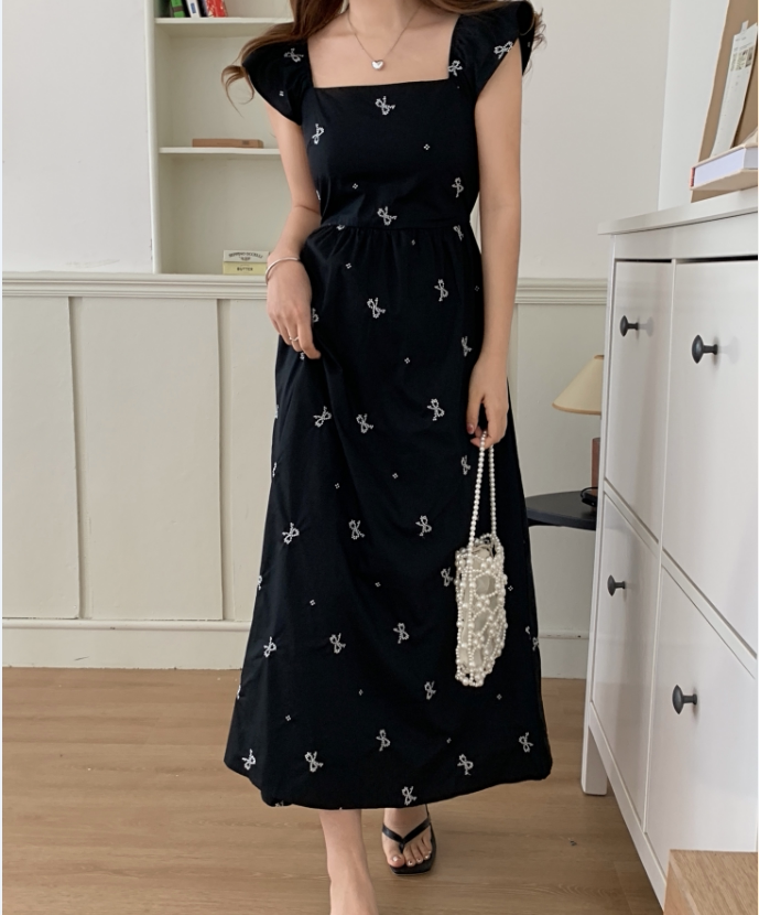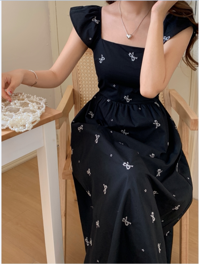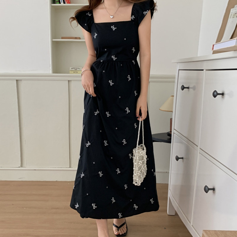 Летний приталенный корсет с бантиком, длинное платье, квадратный вырез, с вышивкой