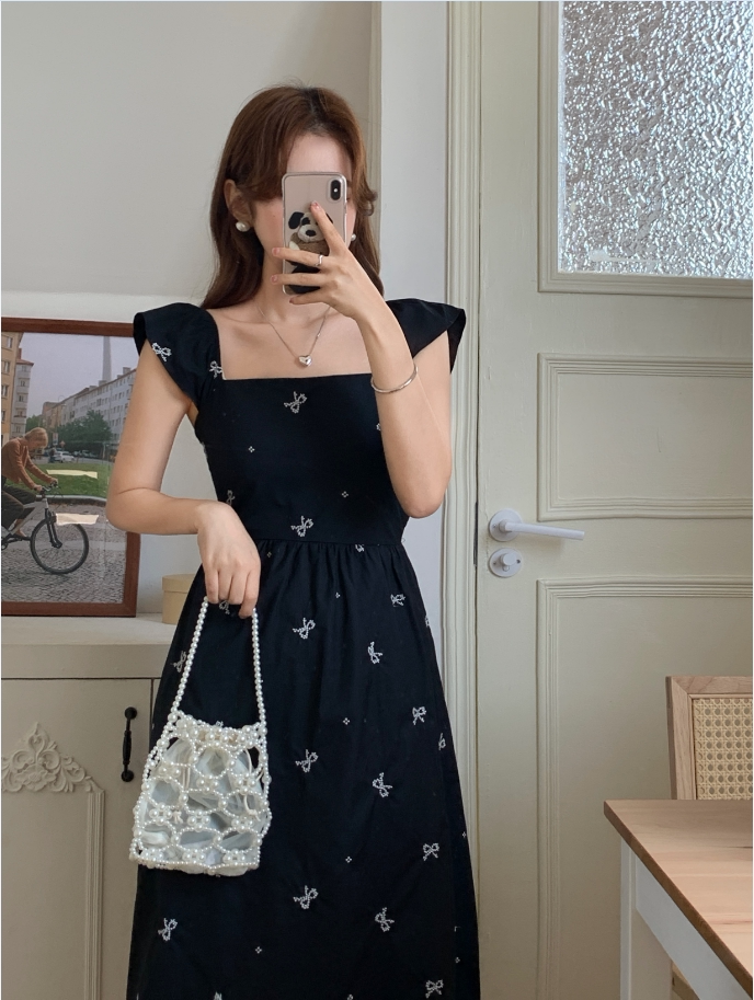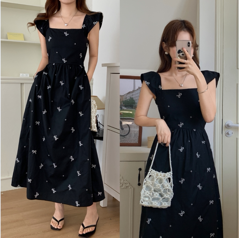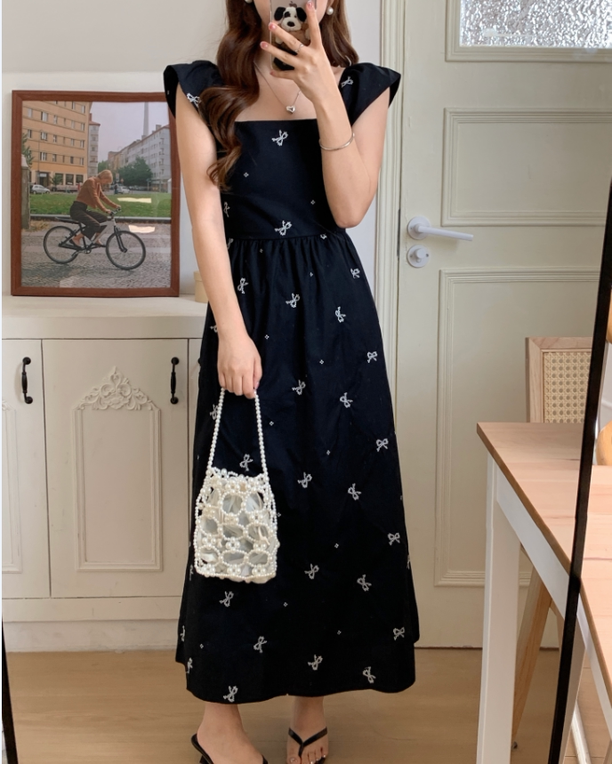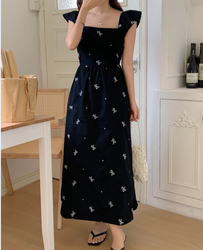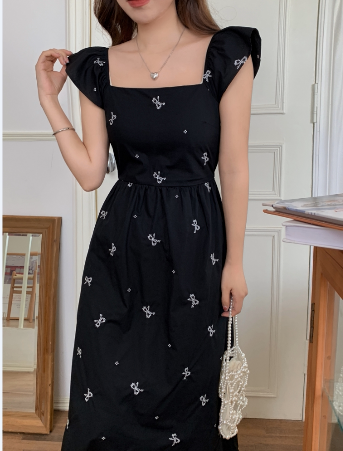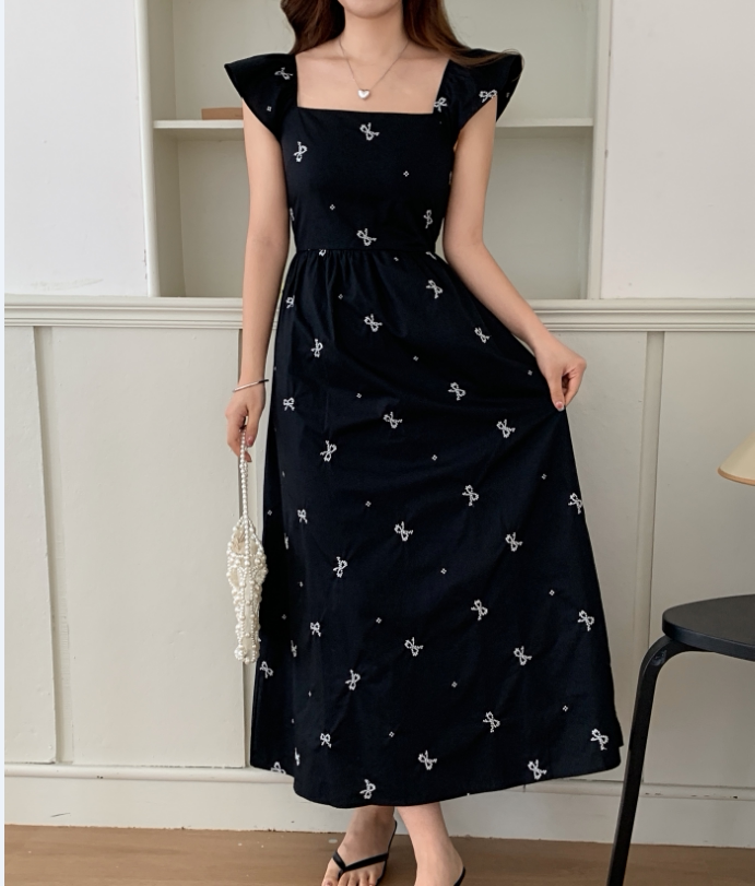 Летний приталенный корсет с бантиком, длинное платье, квадратный вырез, с вышивкой