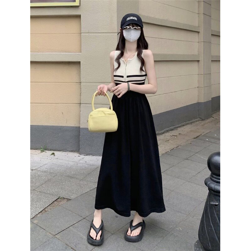 Приталенный корсет с молнией без рукавов, длинная юбка, платье без рукавов, французский стиль