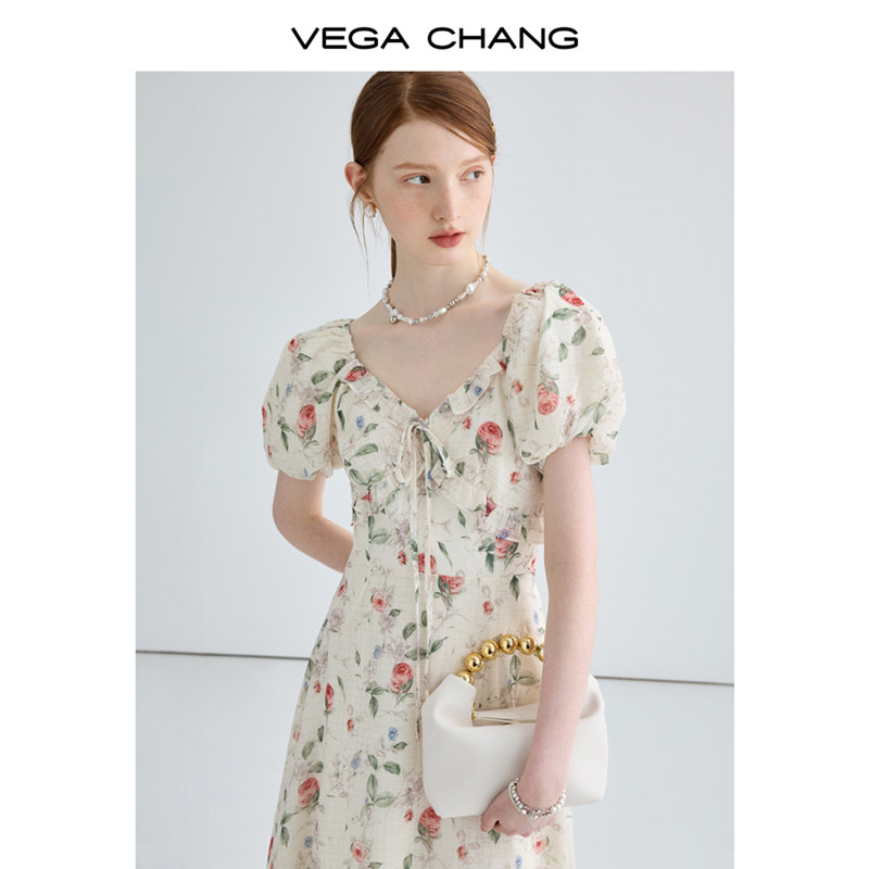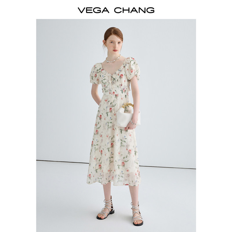 VEGA CHANG Летнее платье, длинная юбка, французский стиль, в цветочек, премиум класс, яркий броский стиль