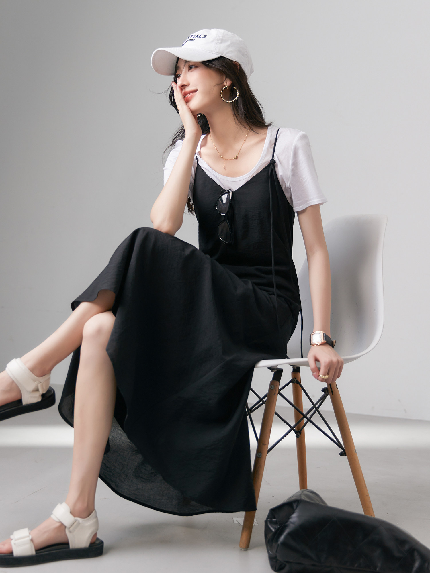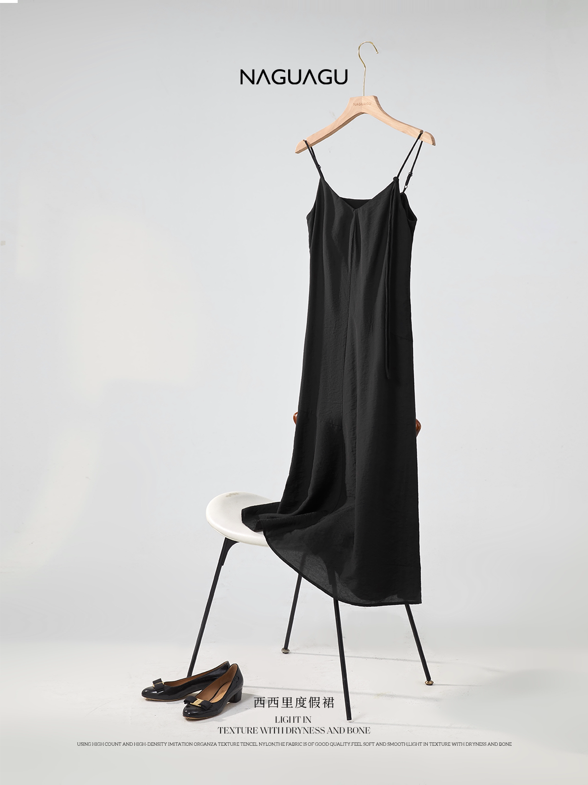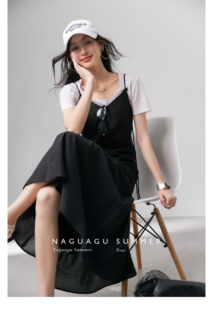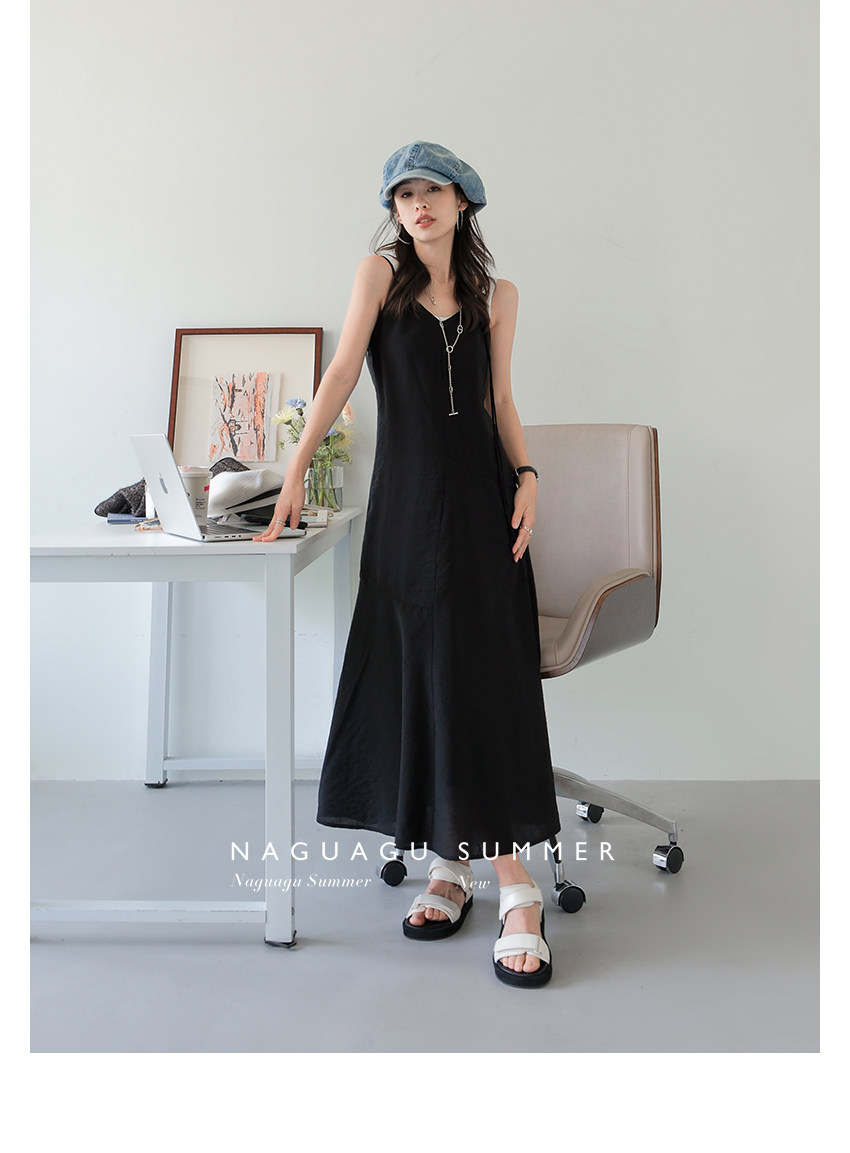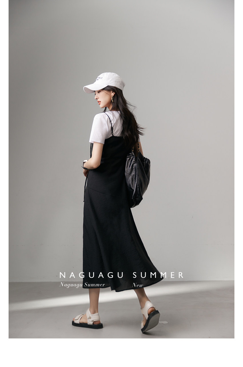 | Длинная юбка чуть выше колена А-образного силуэта.Разделительная линия юбки более элегантная и гибкая. Чистый и плоский дизайн с открытой спиной в сочетании с гладкой тканью Tencel, прохладный и удобный в ношении. Со своим модным уровнем,Движение направо -кол плечи, легко контролировать на разной высоте Это делает чистый черный цвет не слишком скучным, а общий дизайн более гибким и жизнерадостным. | ||