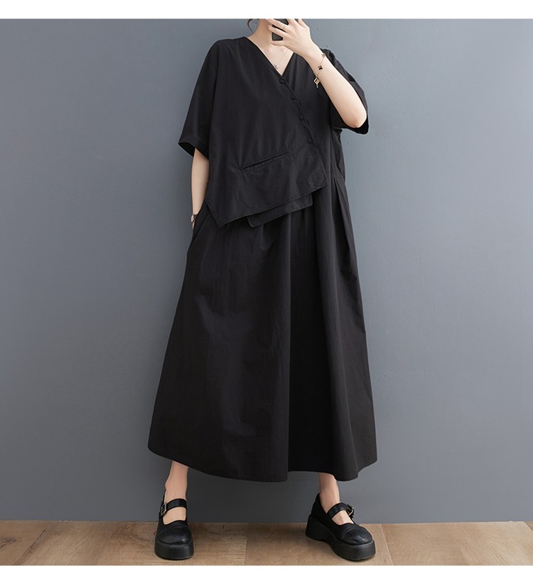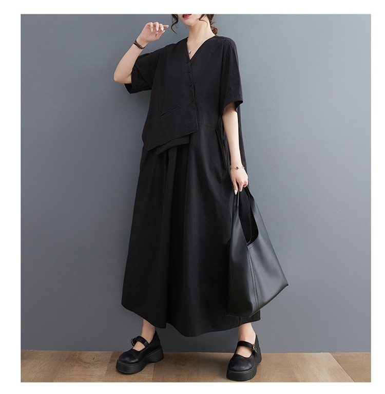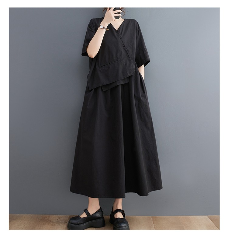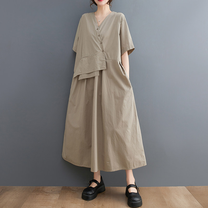 Летнее корейское асимметричное элегантное платье для отдыха, большой размер, свободный крой, короткий рукав