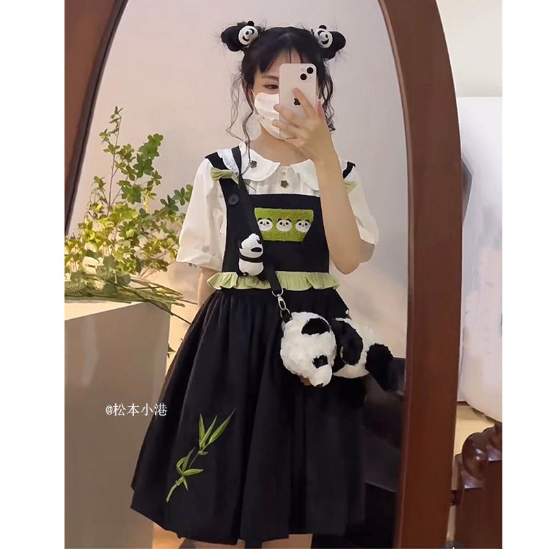 Милое платье с бантиком, платье-комбинация для школьников, китайский стиль, с вышивкой