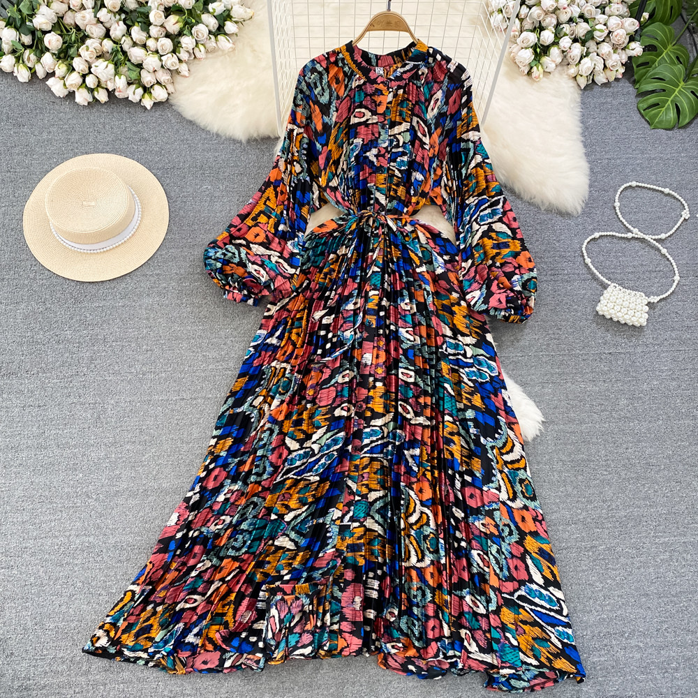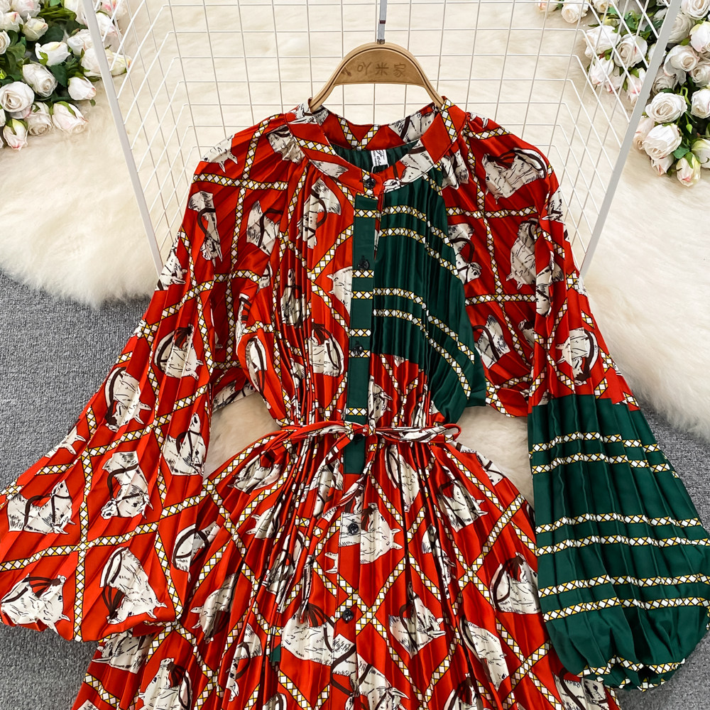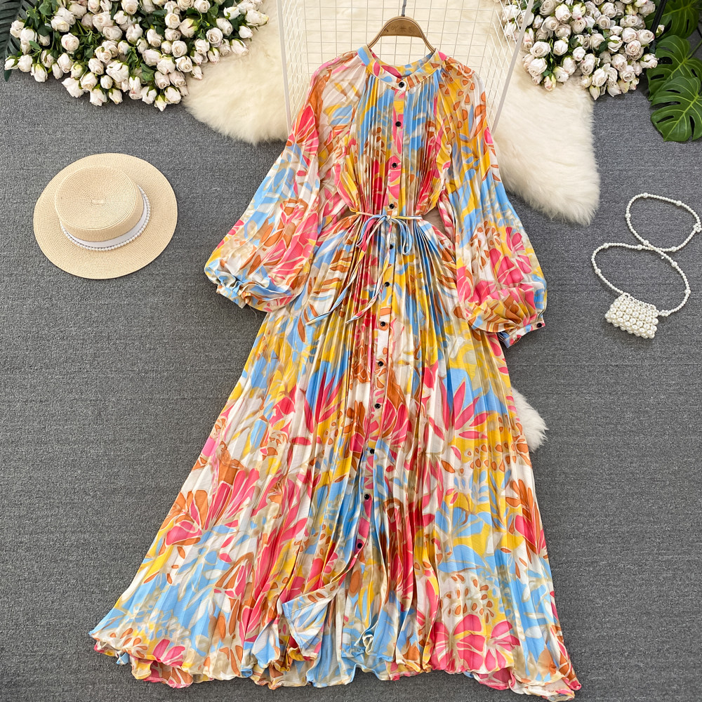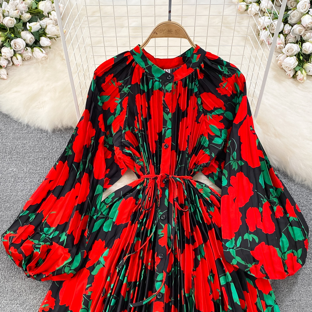 Фонарь, лонгслив, приталенный корсет, элегантное платье, длинная юбка, изысканный стиль, с рукавом, в цветочек