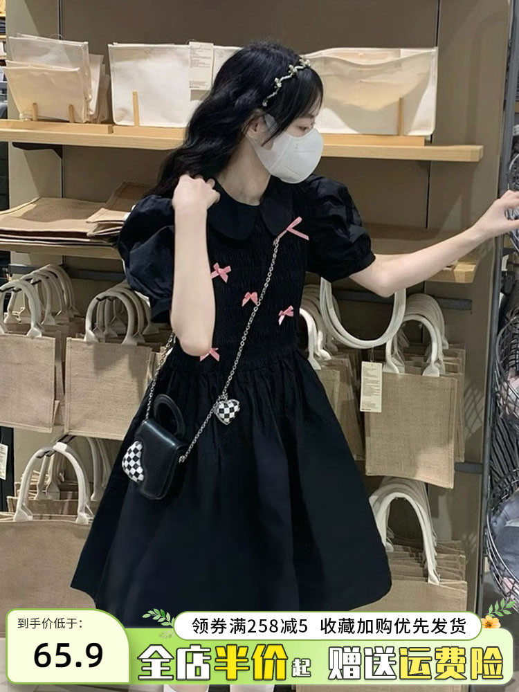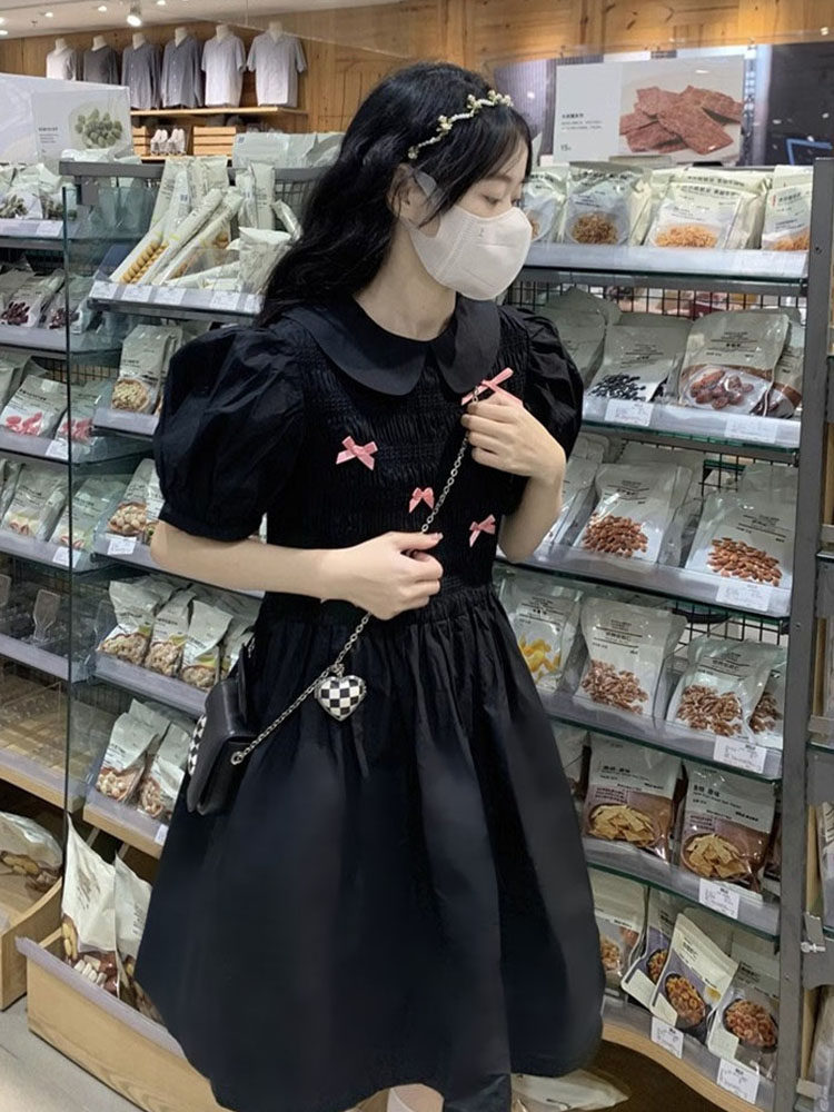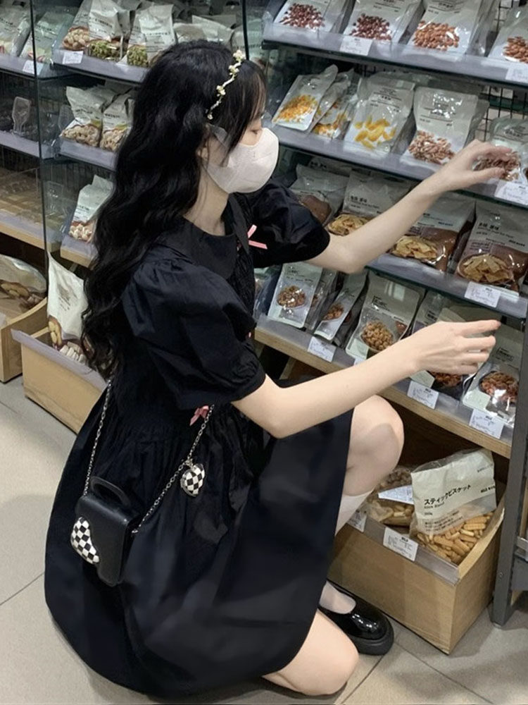 Черная кукла, элитное изысканное платье, летняя мини-юбка, французский стиль, кукольный воротник, яркий броский стиль, подходит для подростков