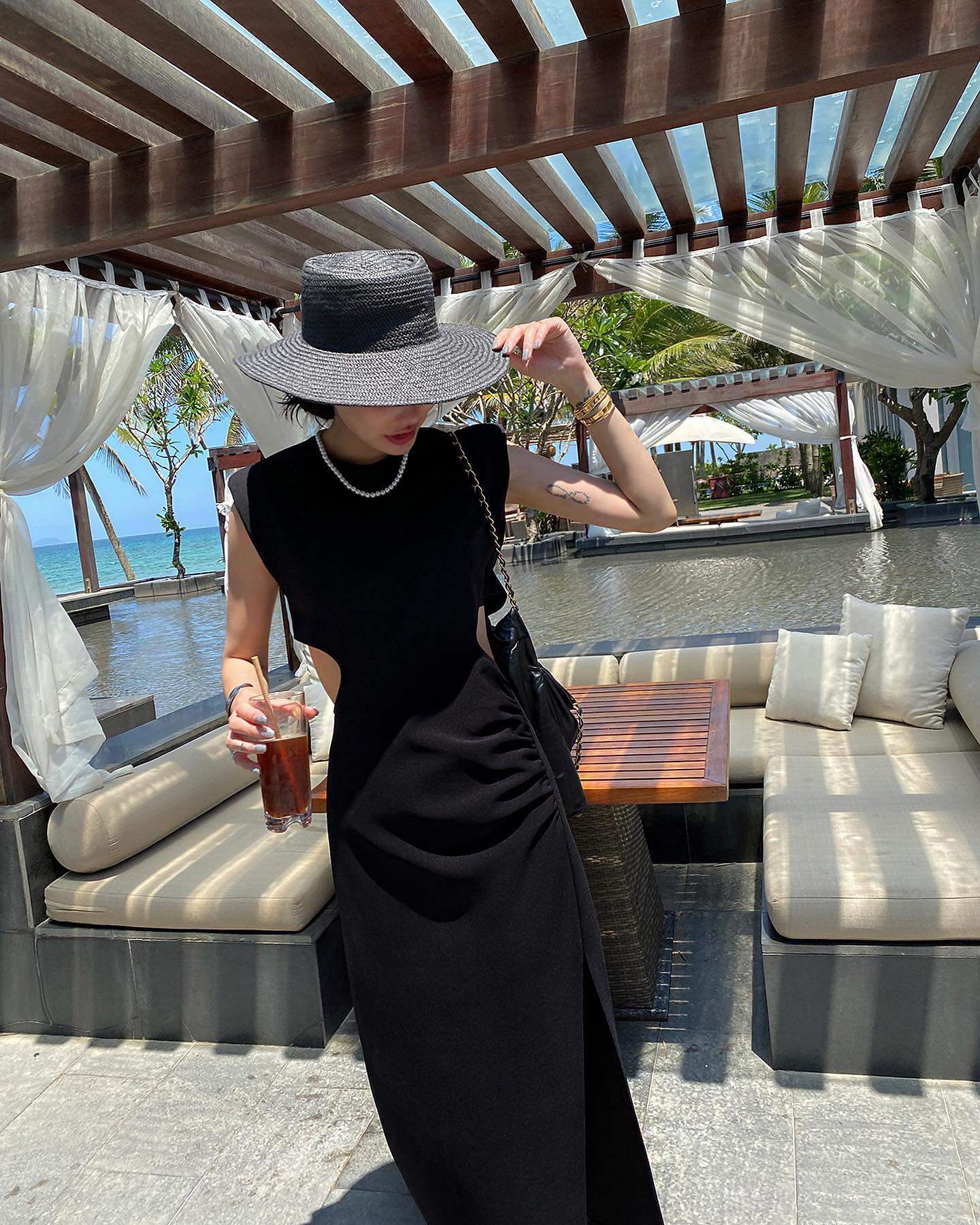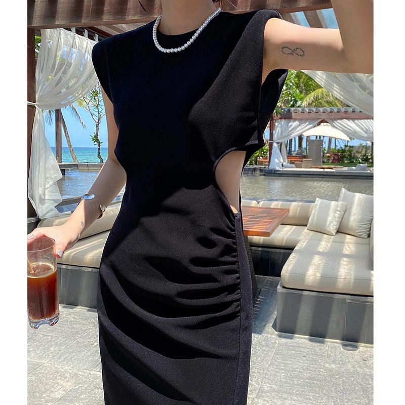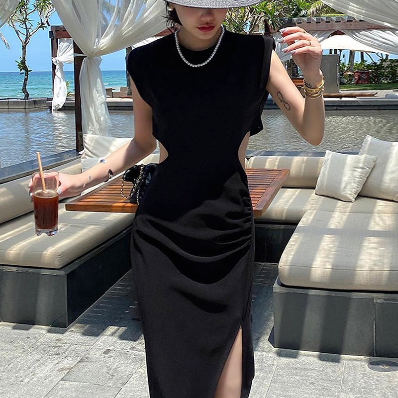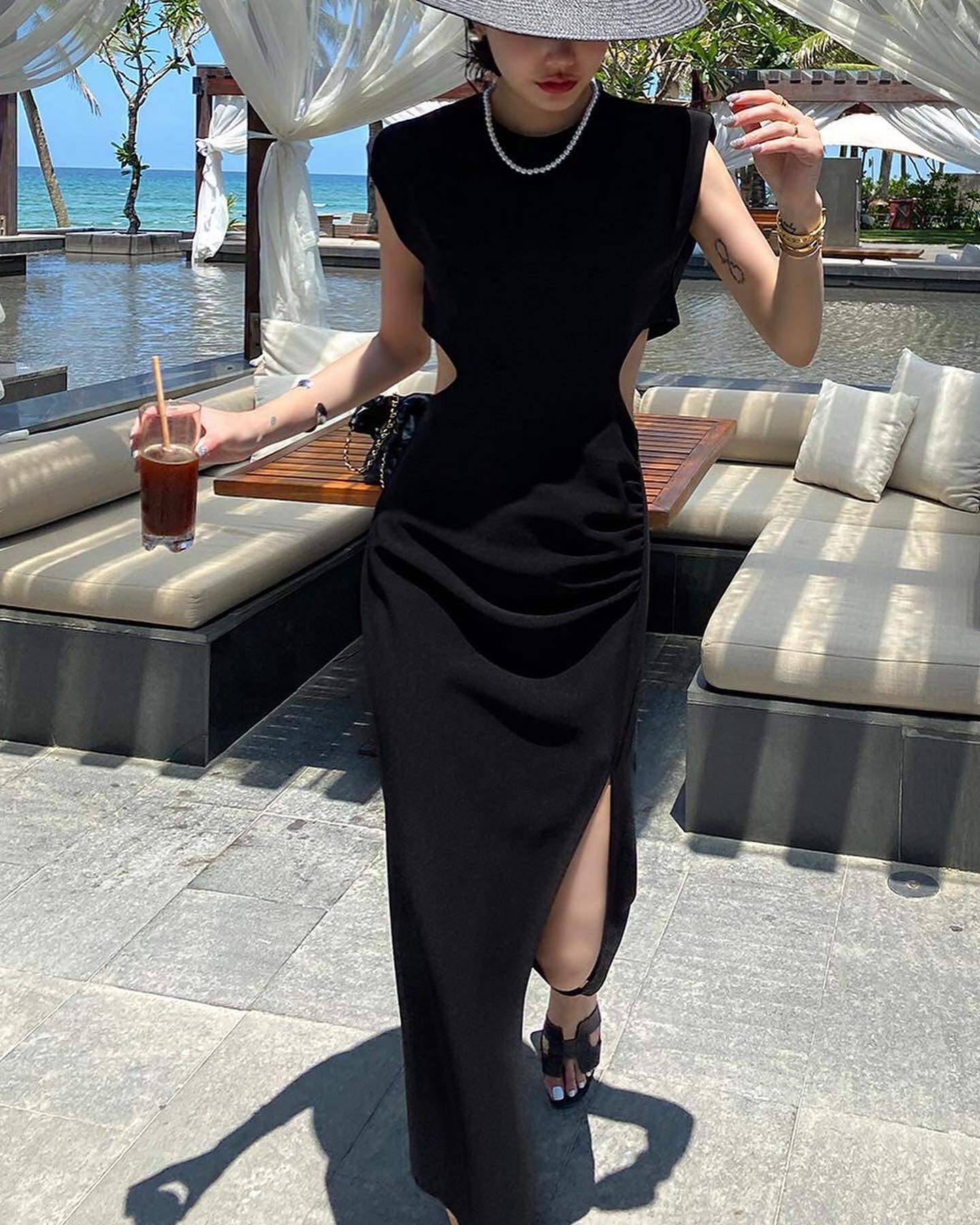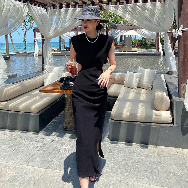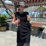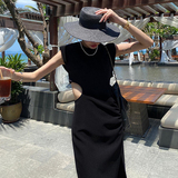 Ретро черное летнее платье, длинная юбка, городской стиль