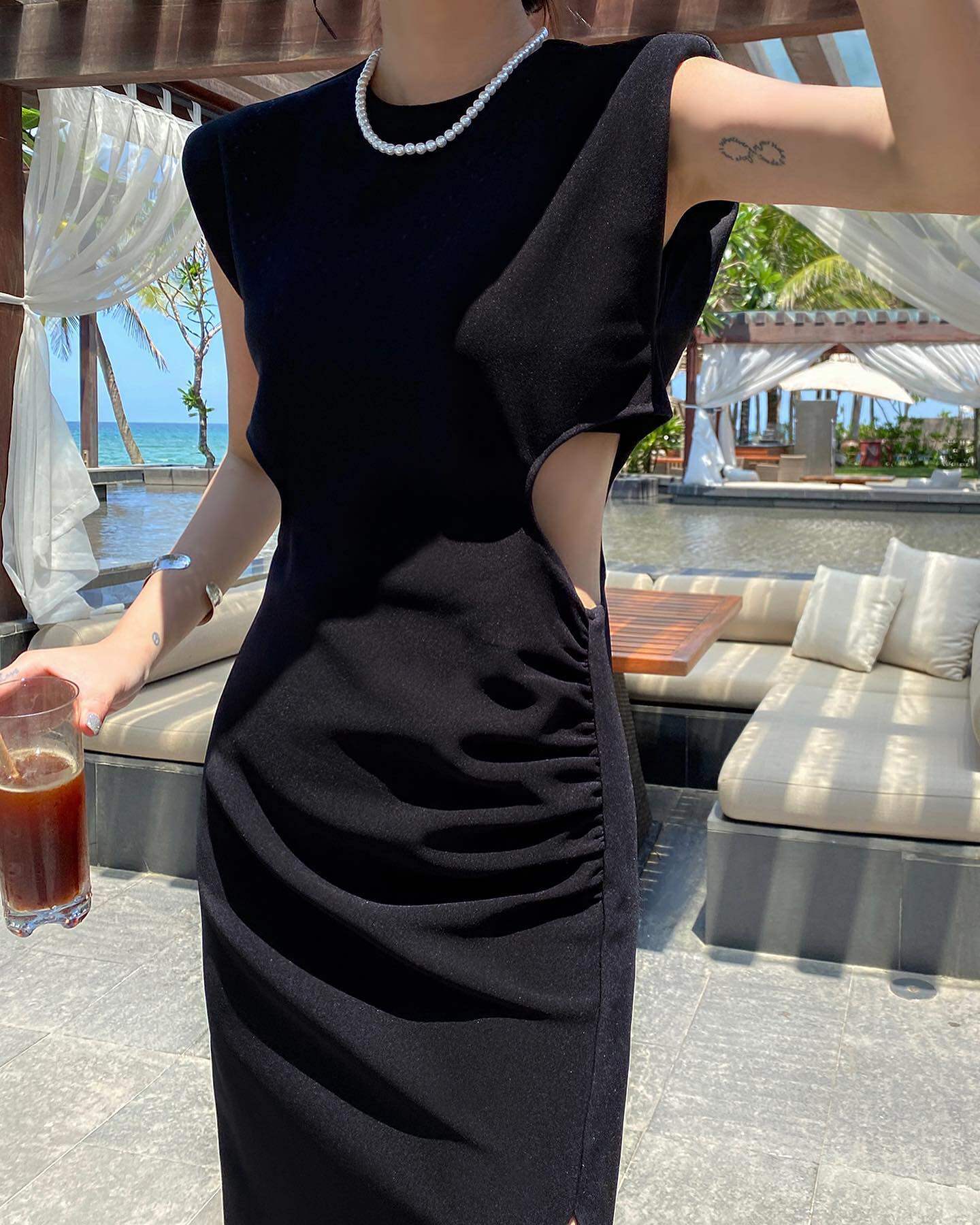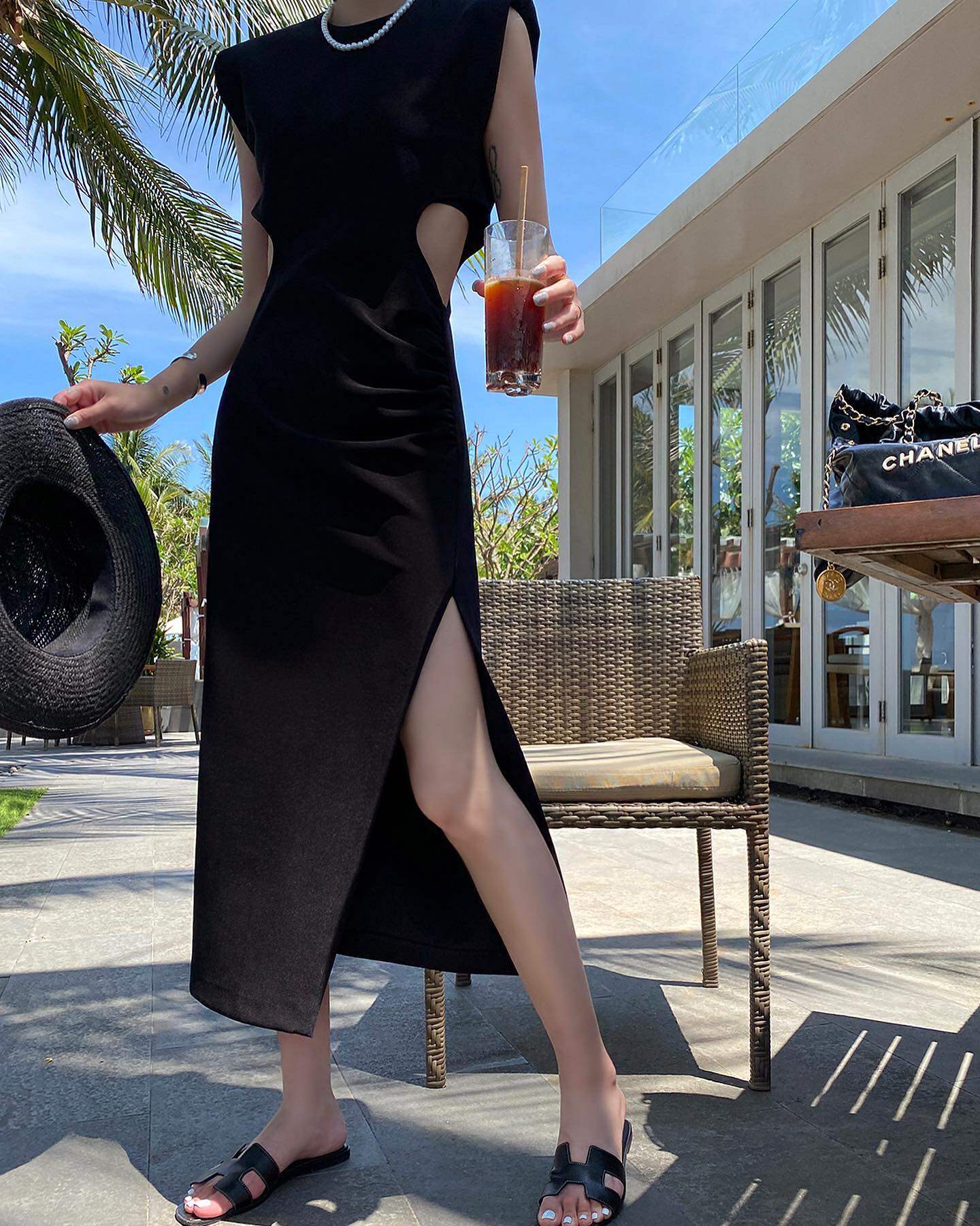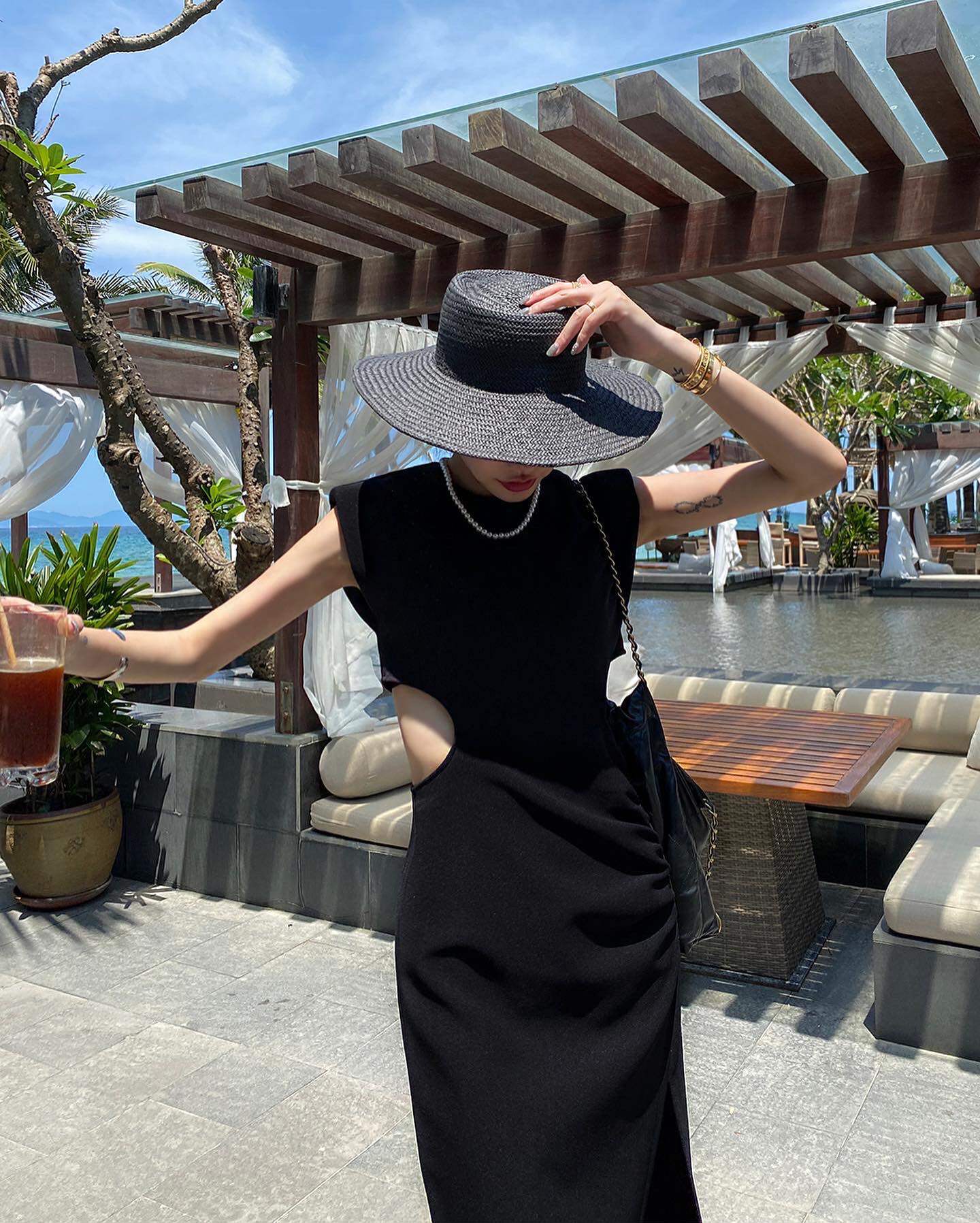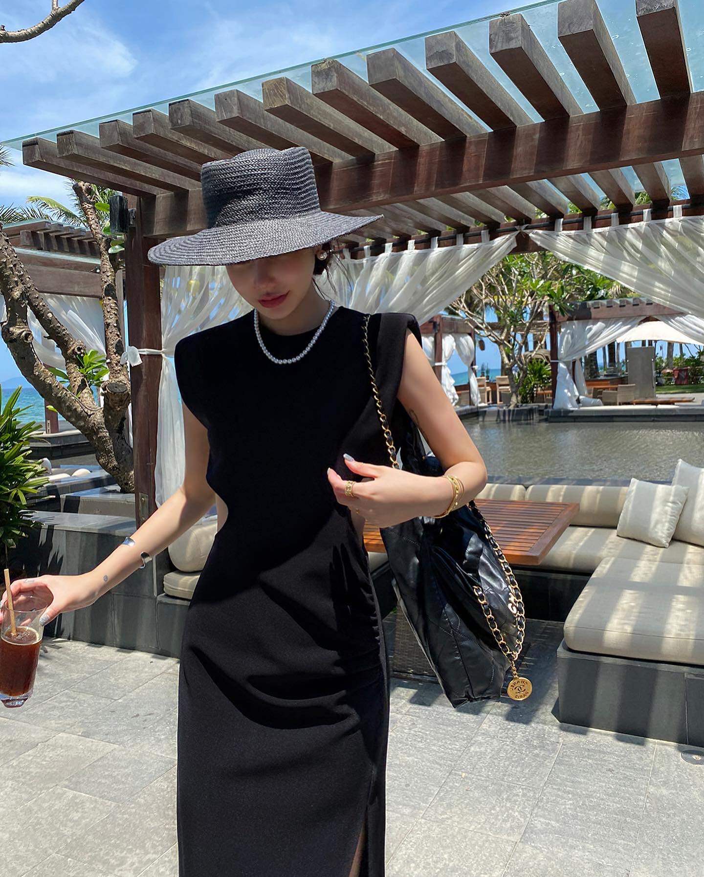 Ретро черное летнее платье, длинная юбка, городской стиль
