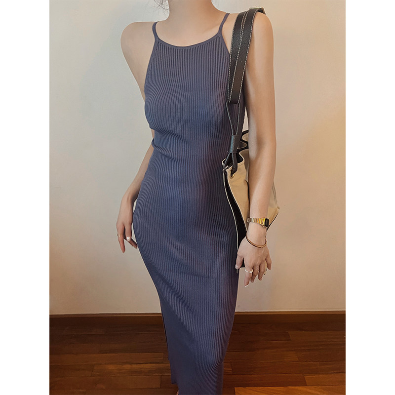Трикотажная майка, летнее платье, приталенная длинная юбка без рукавов, французский стиль, с открытой спиной, длина макси