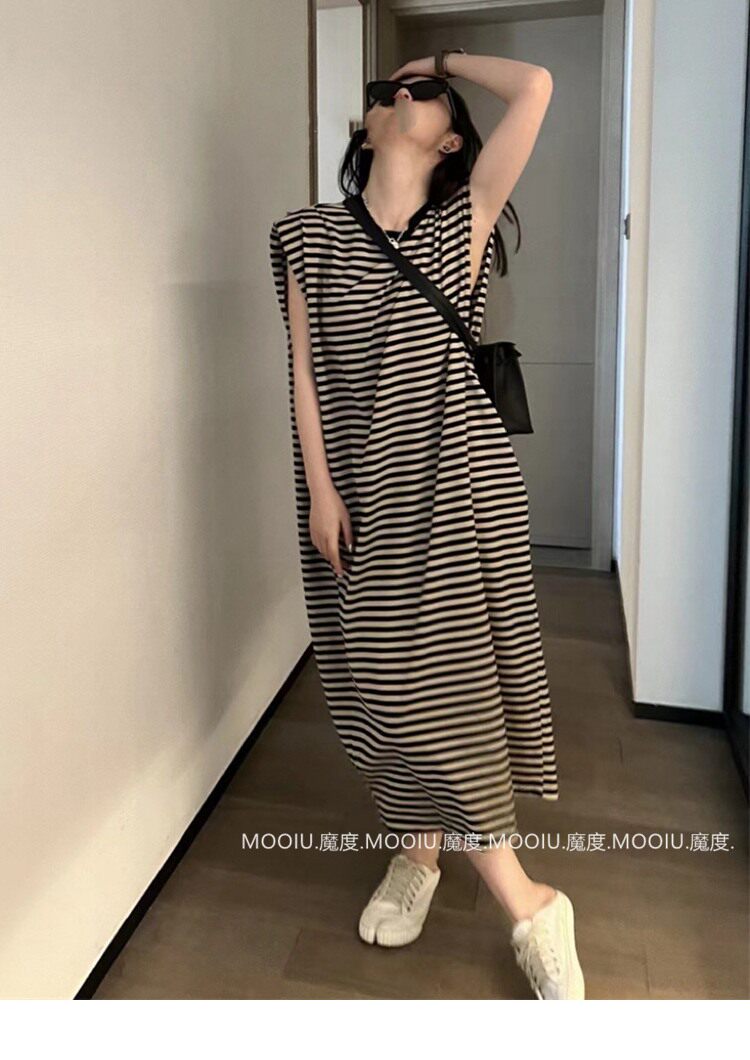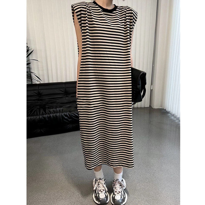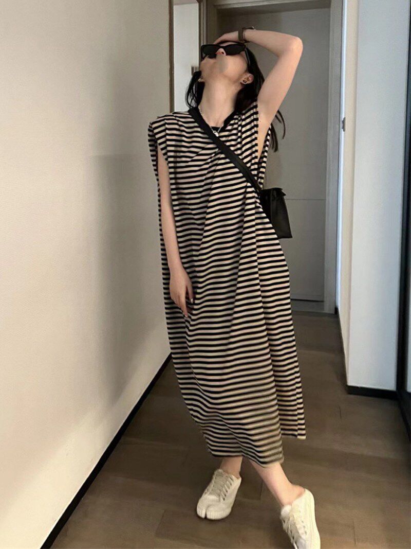 Летние длинные наплечники без рукавов, платье-футболка, платье без рукавов для отдыха, длинная юбка