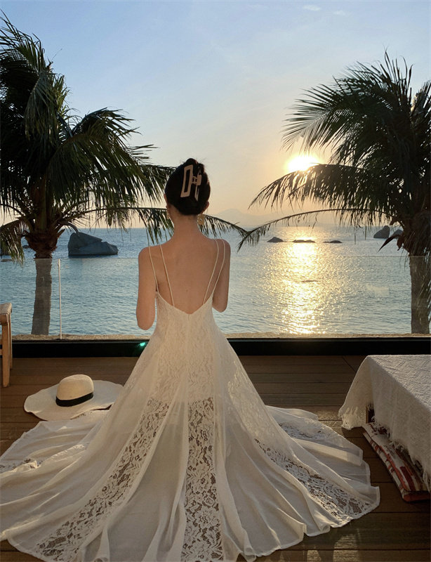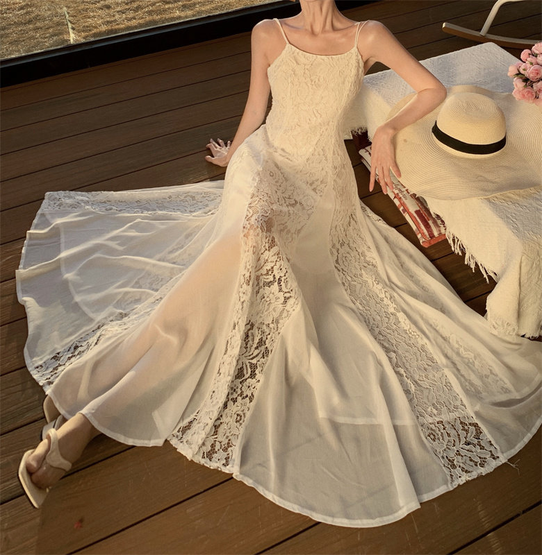 Абрикосовое летнее платье, длинная юбка, французский стиль, 2024 года, открытые плечи