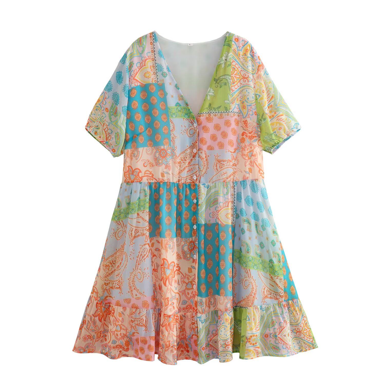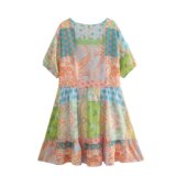 Ретро платье, европейский стиль, французский ретро стиль, V-образный вырез, свободный крой