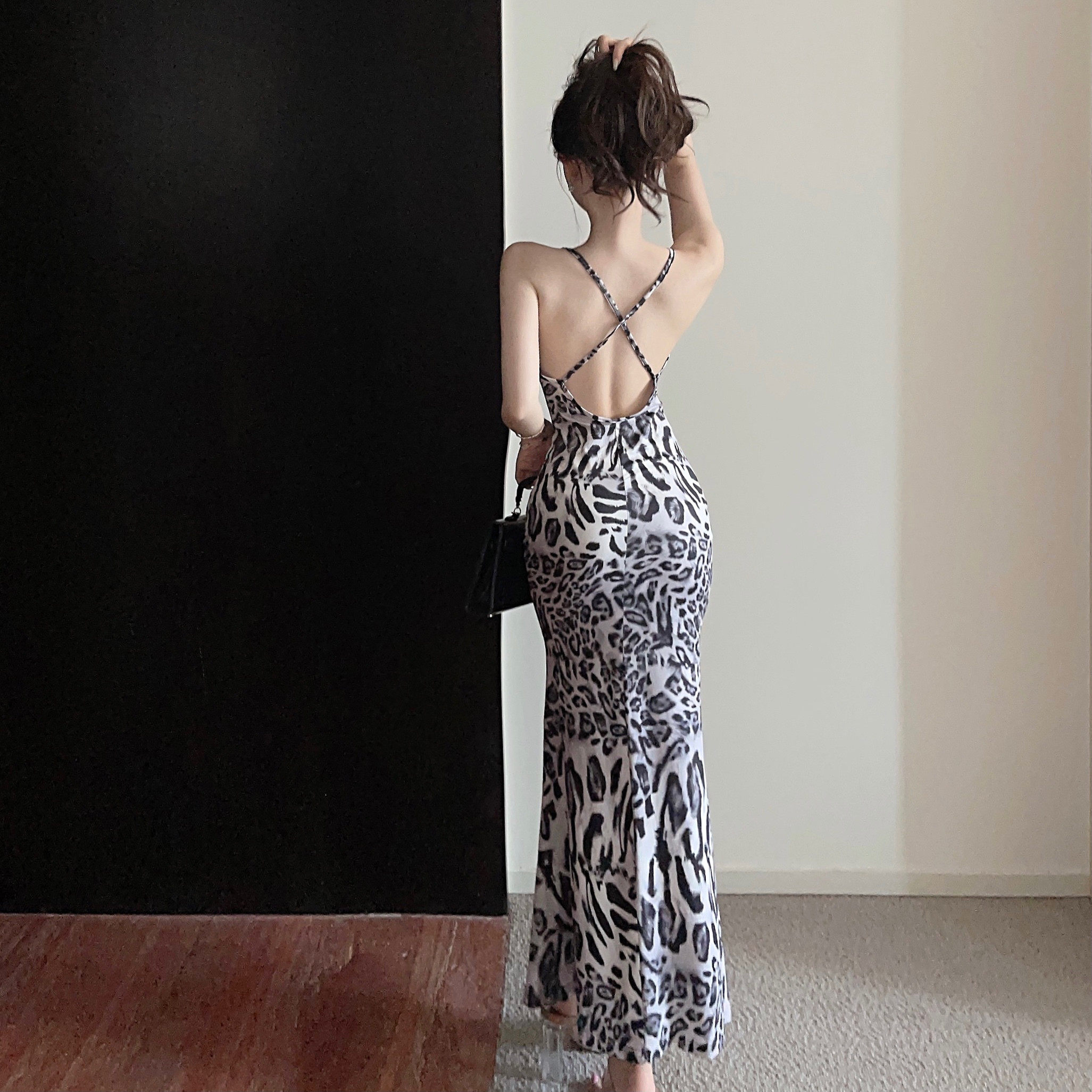 Сексуальное длинное платье, с открытой спиной, французский стиль, яркий броский стиль, высокая талия, по фигуре, длина макси, рыбий хвост