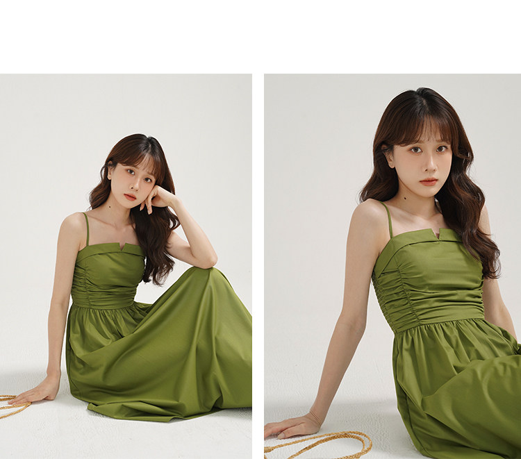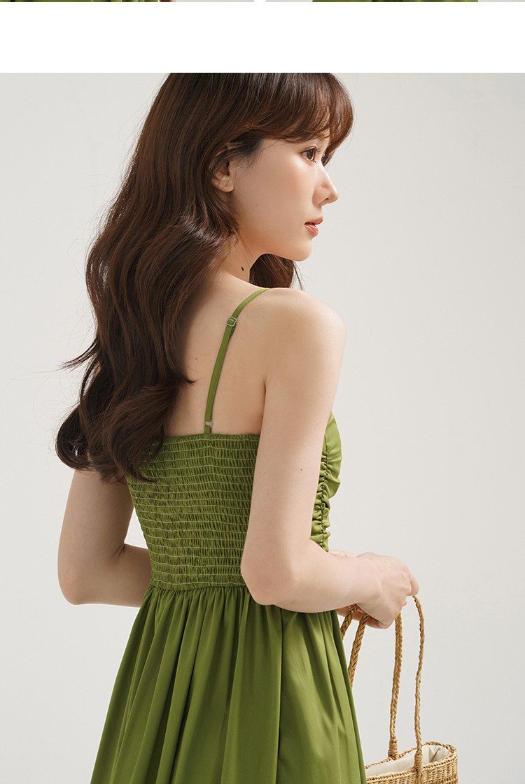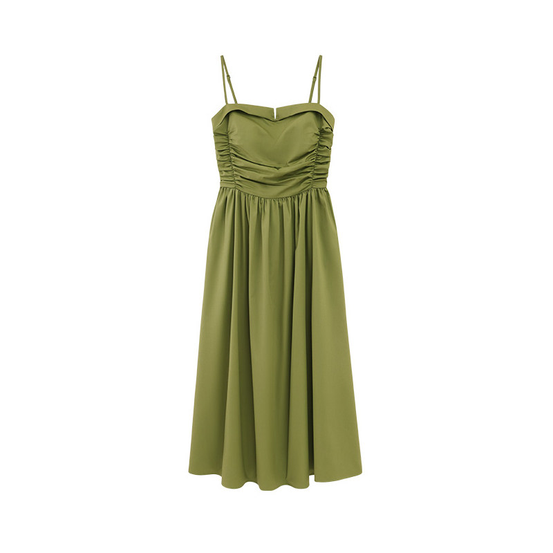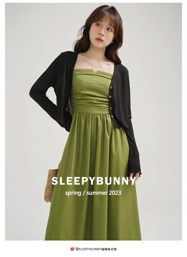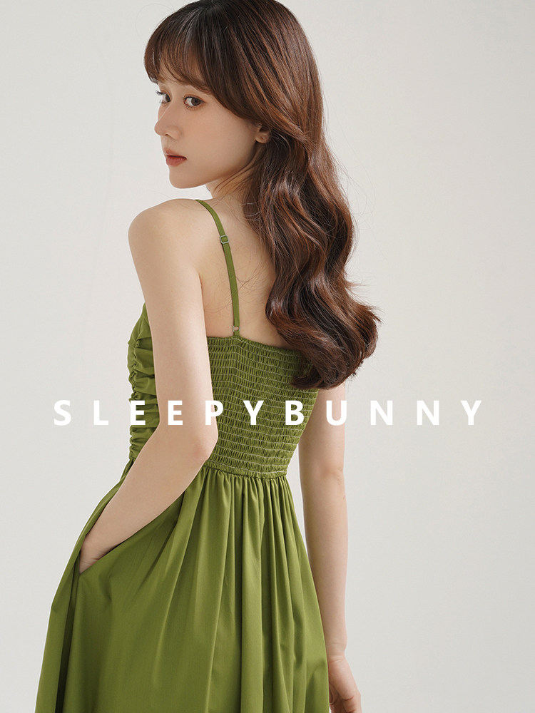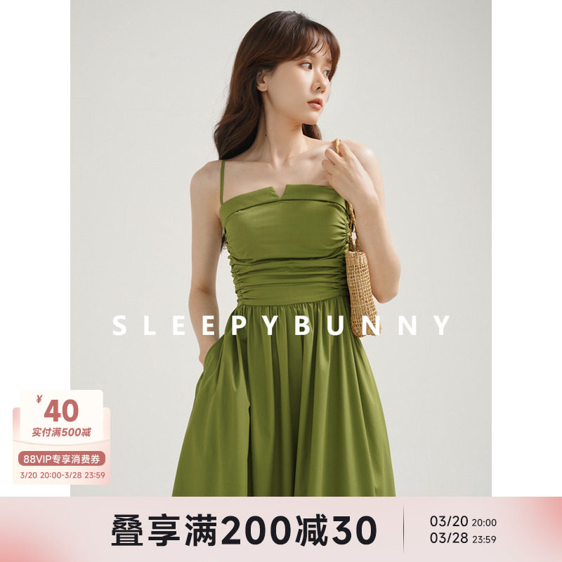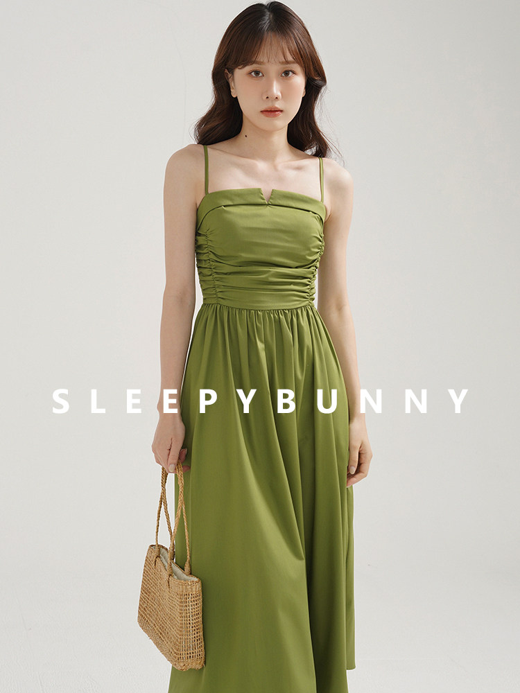 瞌睡兔 Зеленое весеннее платье-комбинация, юбка, элегантный приталенный корсет, платье, французский стиль, подходит для подростков, А-силуэт
