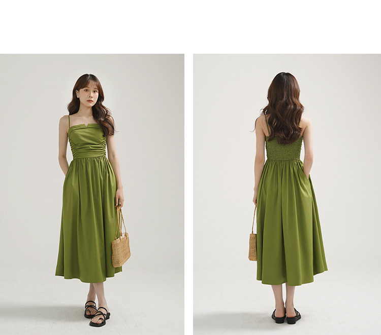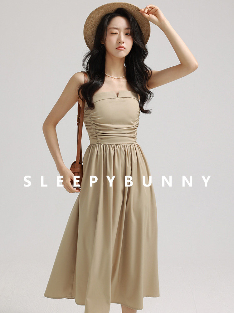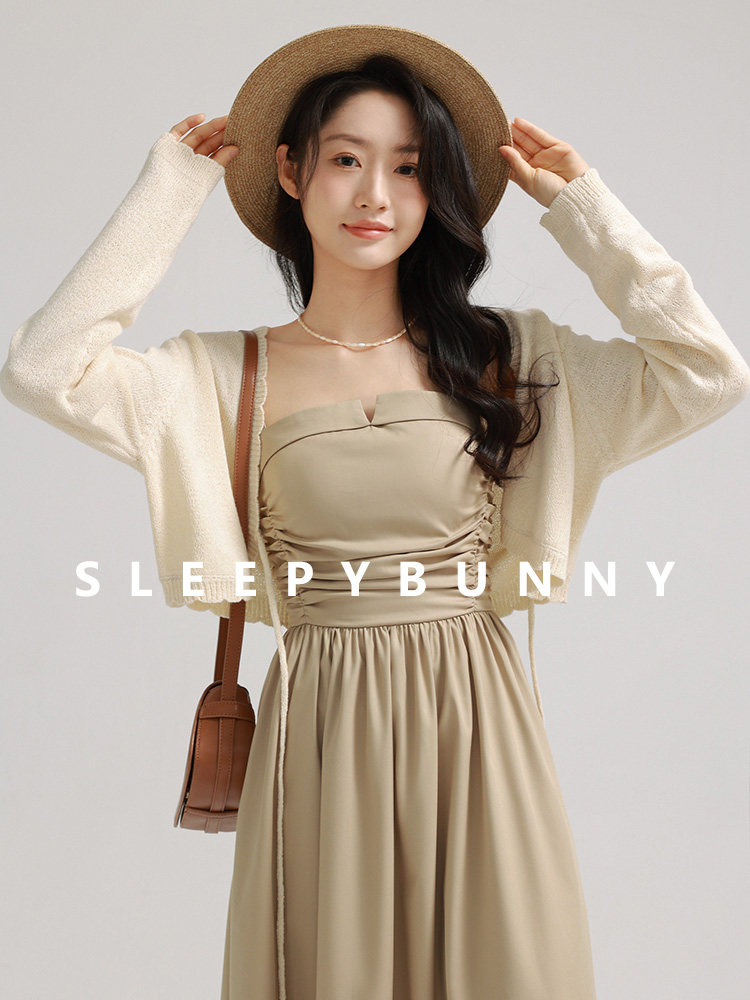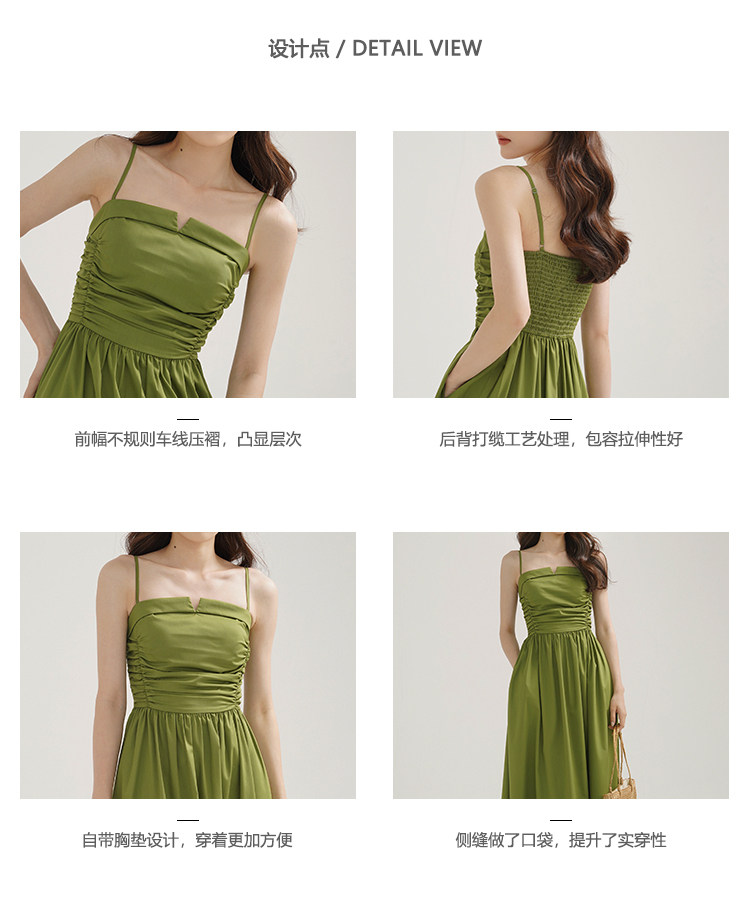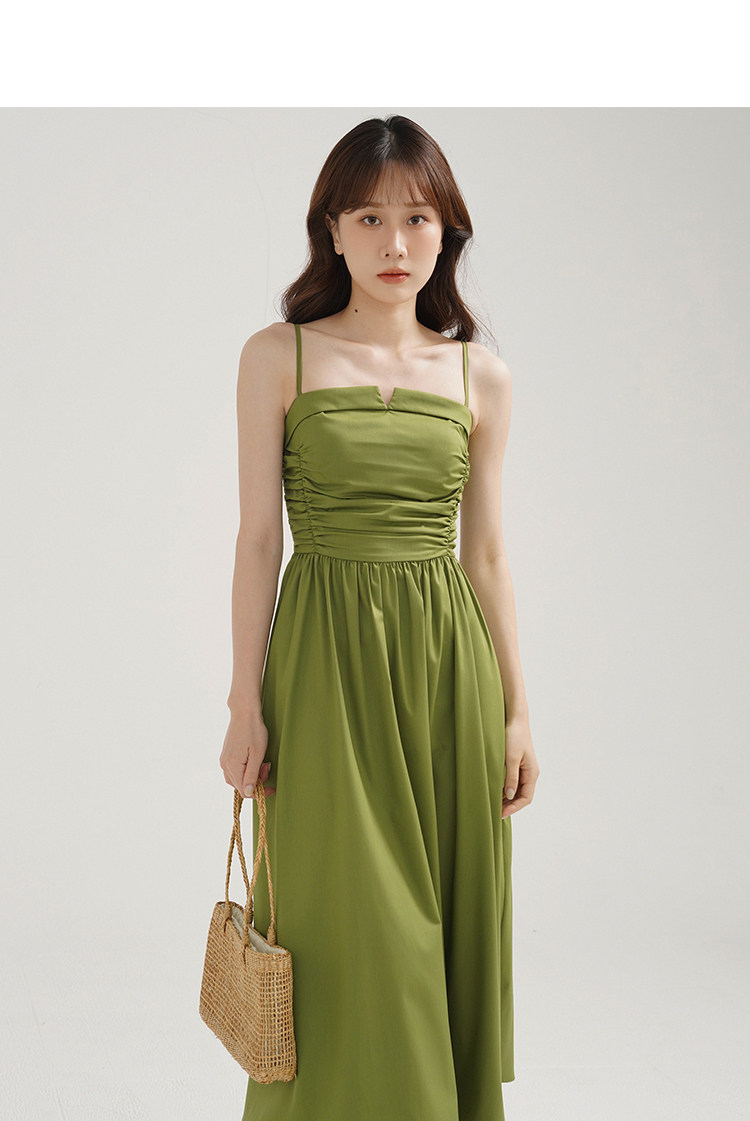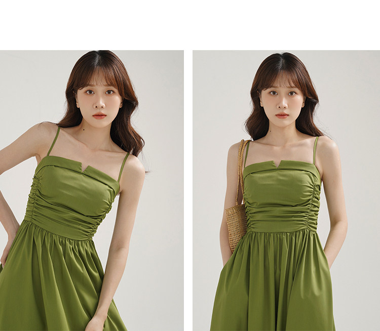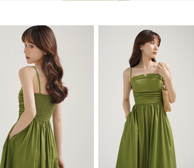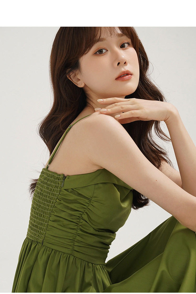 瞌睡兔 Зеленое весеннее платье-комбинация, юбка, элегантный приталенный корсет, платье, французский стиль, подходит для подростков, А-силуэт