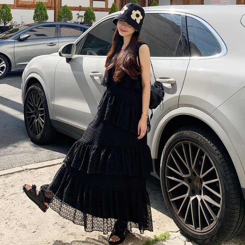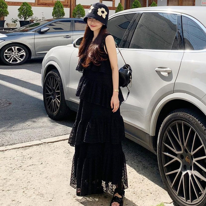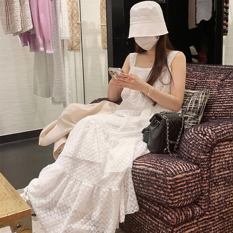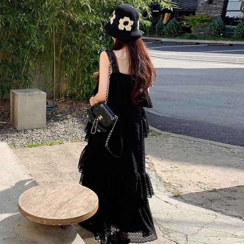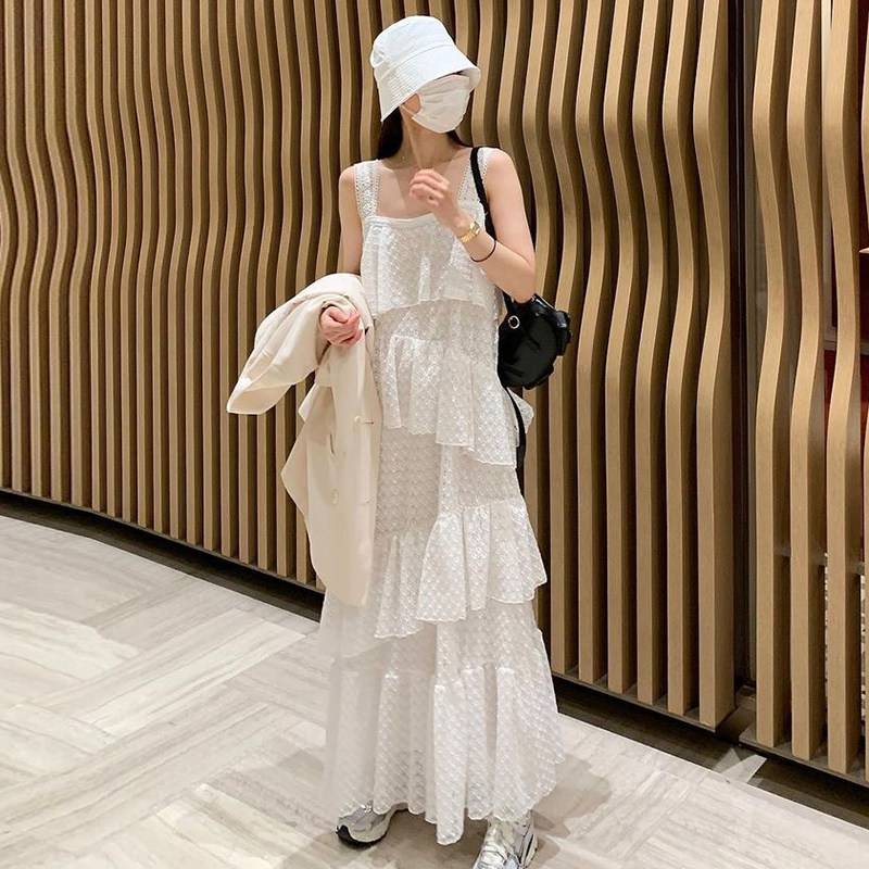 Летняя длинная юбка, французский стиль, квадратный вырез, оверсайз