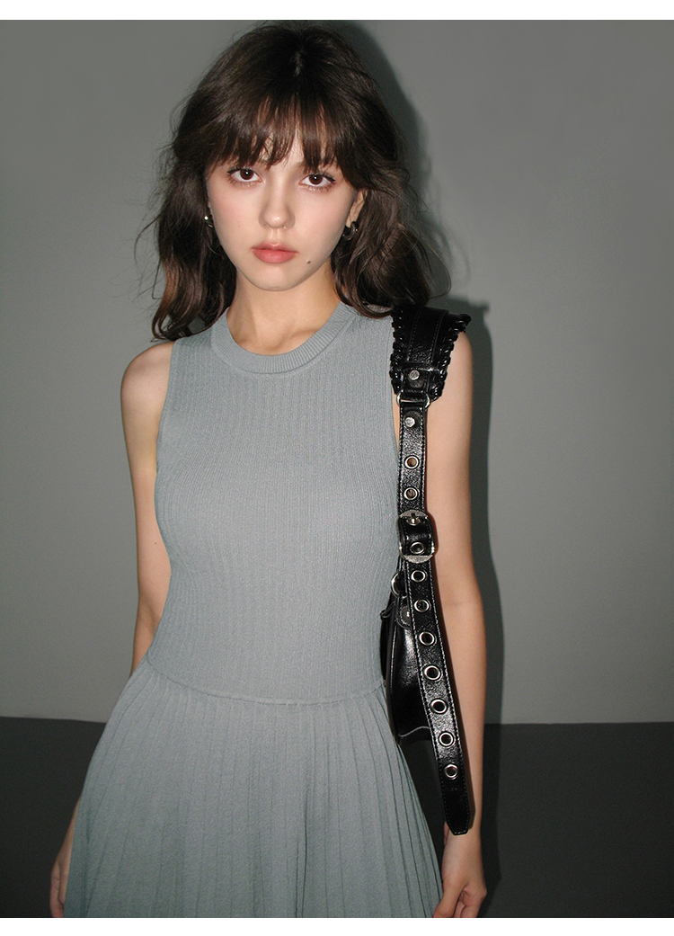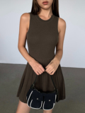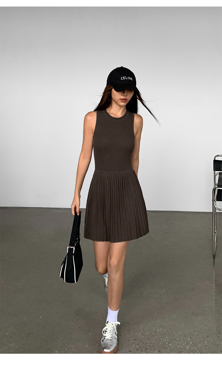 Трикотажный жилет, летнее платье, приталенная юбка в складку, городской стиль, подходит для подростков