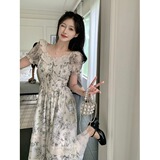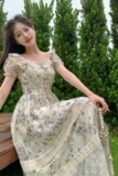 Летняя юбка, платье, большой размер, французский стиль, яркий броский стиль, изысканный стиль, в цветочек, А-силуэт