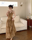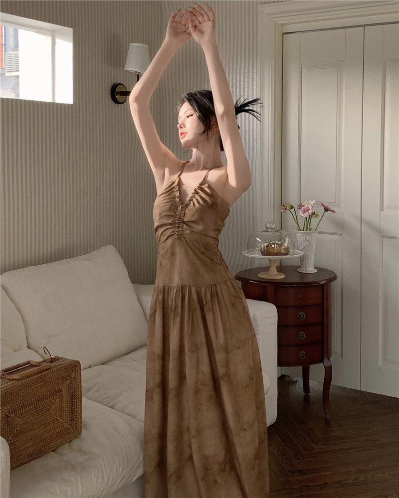 Летнее платье, сексуальный корсет, цветная длинная длинная юбка, китайский стиль, эффект подтяжки, V-образный вырез, с открытой спиной, А-силуэт
