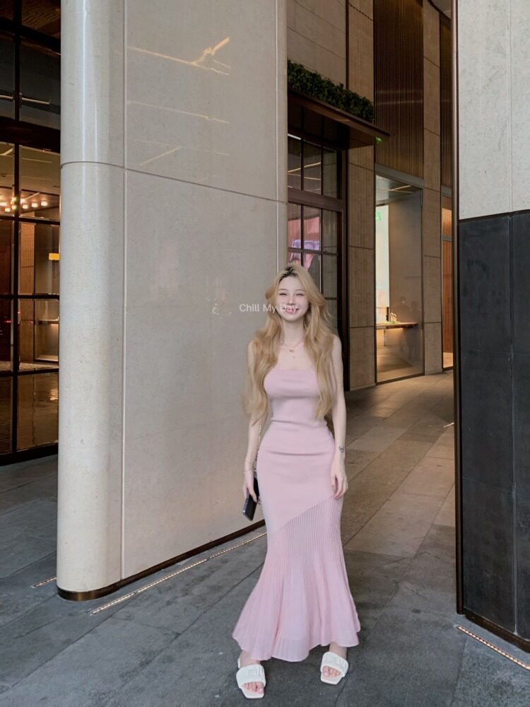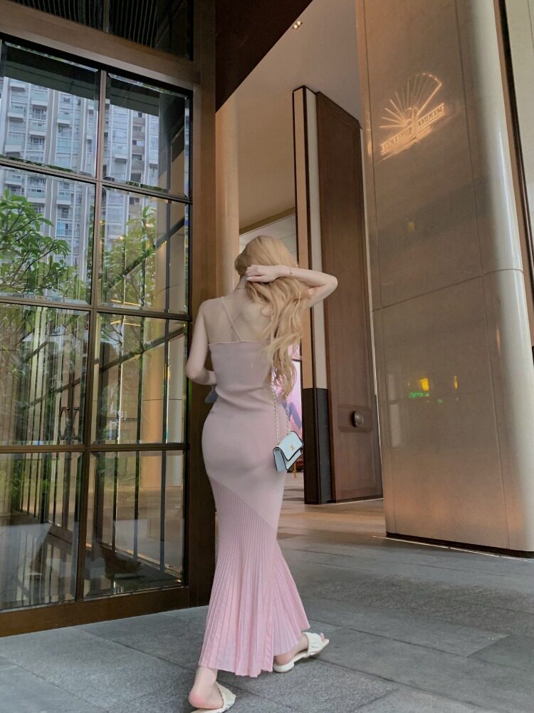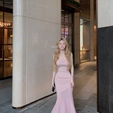 Розовая майка, платье, сексуальный корсет, длинная юбка, изысканный стиль, рыбий хвост, с акцентом на бедрах