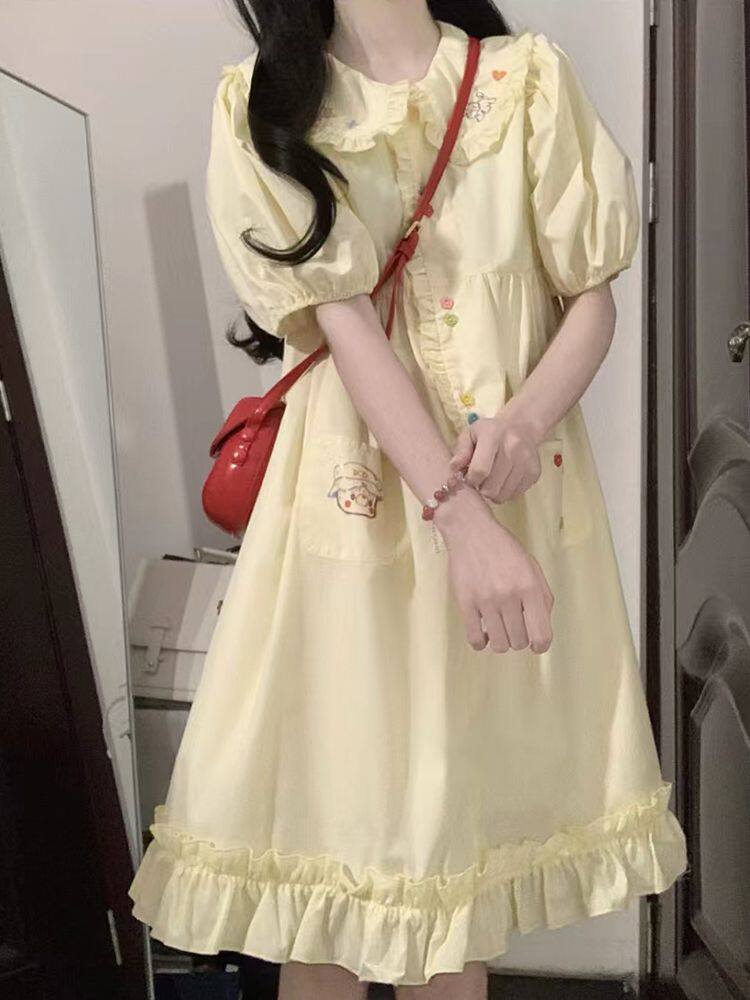 Милый комплект, японская желтая кукла, летнее милое платье, корсет, длинная юбка, рукава фонарики