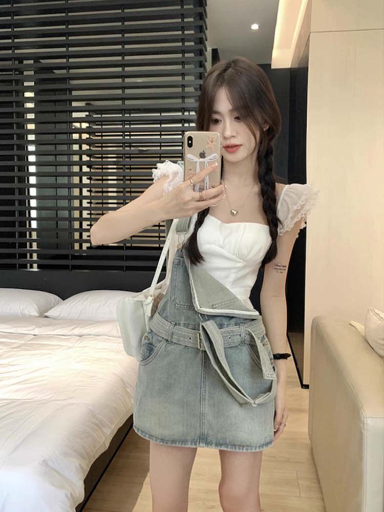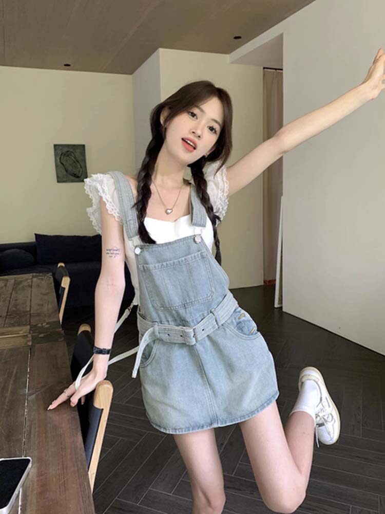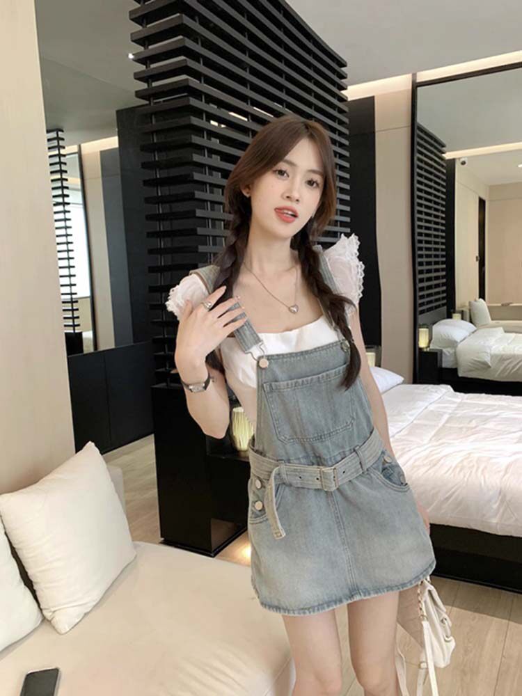 Милый джинсовый сарафан, юбка, летние штаны, приталенный корсет, мини-юбка, платье, с акцентом на бедрах