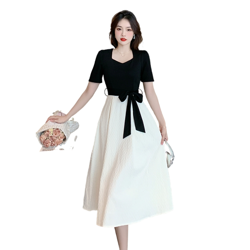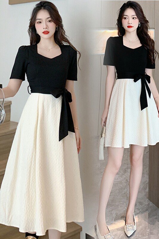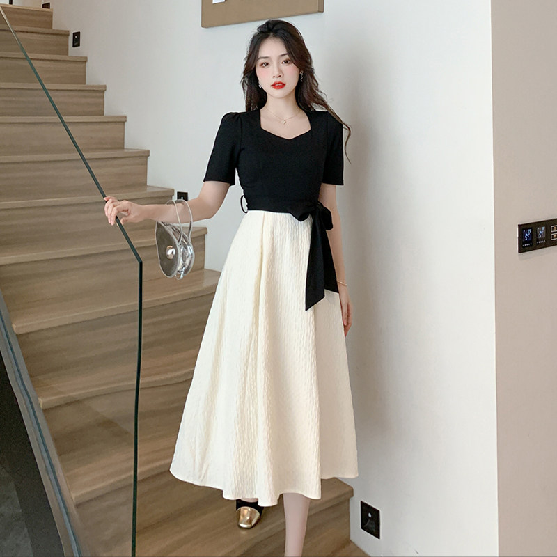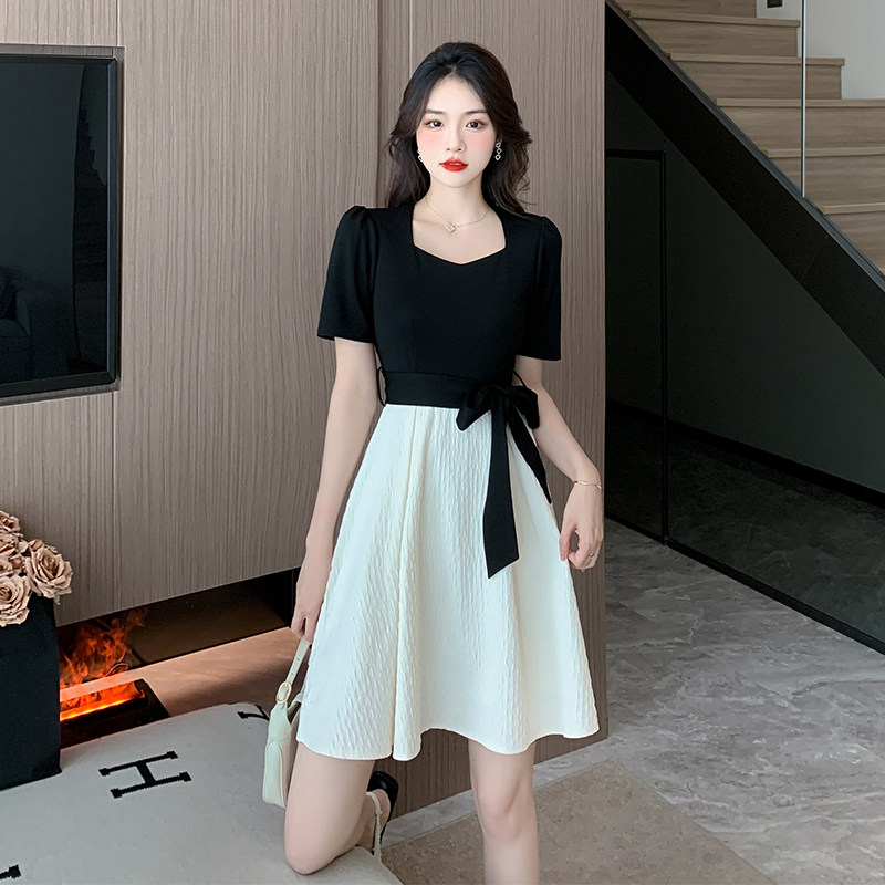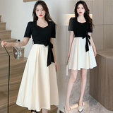 Комплект, приталенное летнее платье, короткий рукав, квадратный вырез