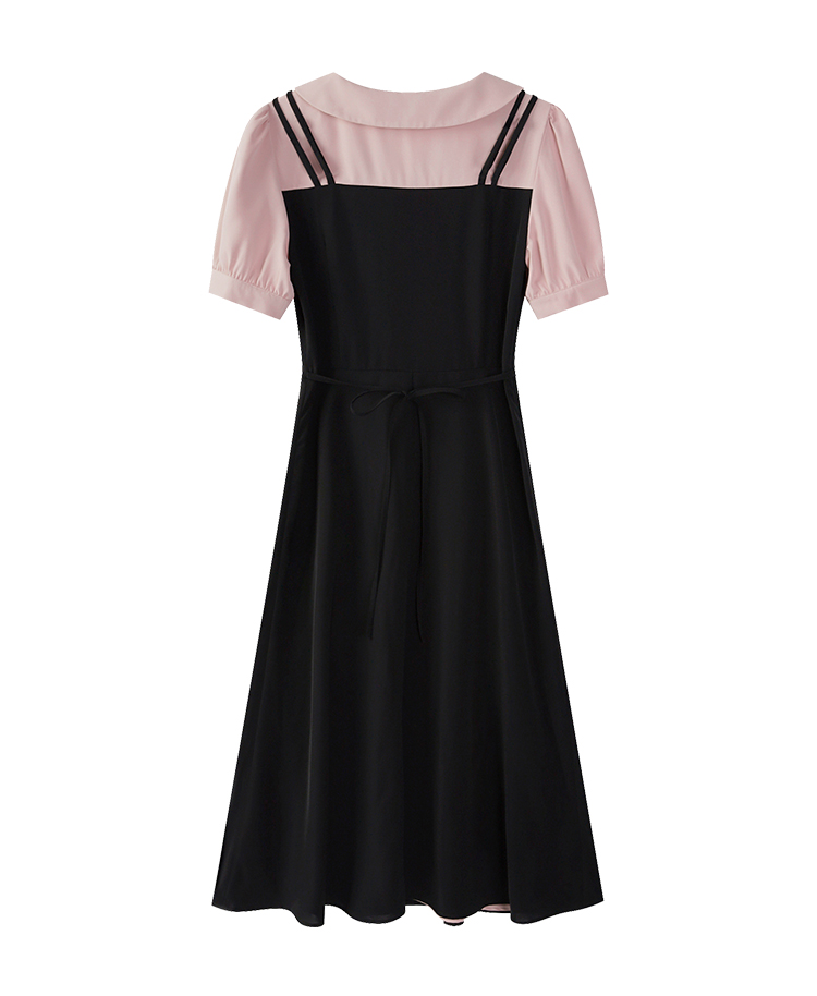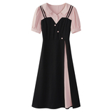 Летнее милое платье, длинная юбка, воротник поло, высокая талия, подходит для подростков, яркий броский стиль
