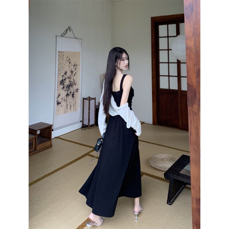 Черное приталенное платье, корсет, длинная юбка, французский стиль, изысканный стиль